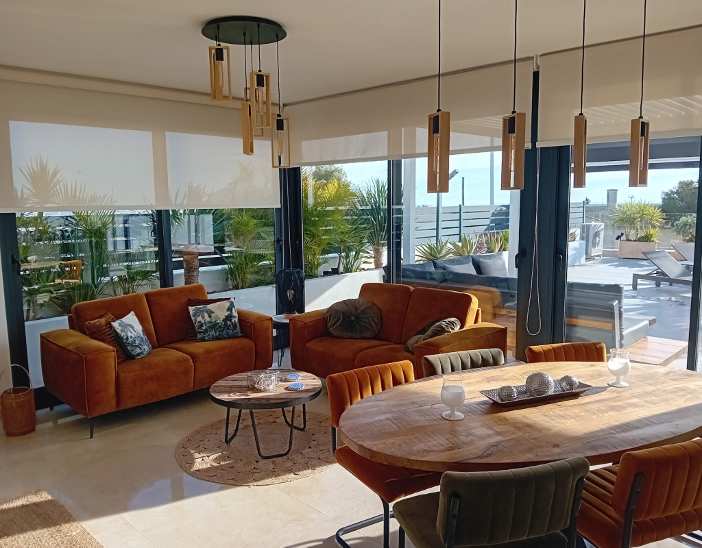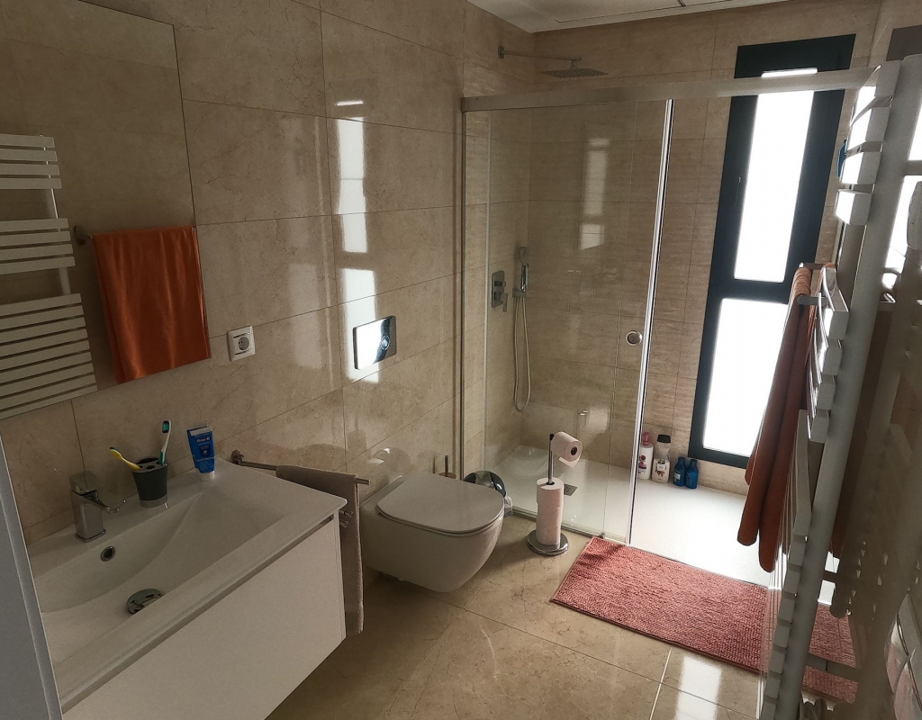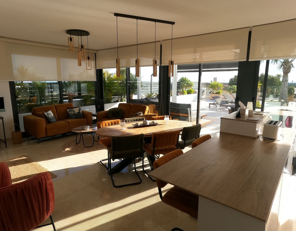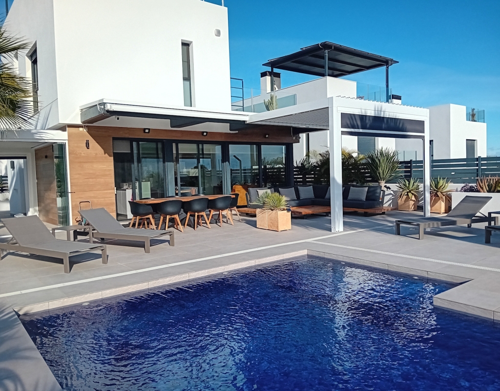 For sale: This stunning detached villa offers comfortable living in the sought-after area of Algorfa, within the prestigious La Finca Golf resort. The villa is a resale property and provides a generous internal space of 253.5 m². Inside, you will find three spacious bedrooms and three modern bathrooms, making it ideal for families or those who enjoy having guests. The villa features a bright and airy open-plan living area with large windows that overlook the pool. There is a central air conditioning system for year-round comfort. The basement offers flexible space, currently used a recreational room with a home cinema, a pool table, and a bar. This is the perfect entertaining zone. A door gives access to the double garage, and there is also a large utility room. Step outside to the private south-facing swimming pool with low maintenance gardens. From the spacious solarium you can enjoy breathtaking panoramic views of the mountains, countryside, and even the sea. Algorfa and La Finca Golf are known for their peaceful atmosphere, well-maintained surroundings, and accessibility to all amenities, including shops, restaurants, and leisure facilities. This superb villa is close to everything you need while providing a tranquil escape. This beautiful home is proudly advertised by Orange Casas. Contact us today to arrange a viewing. KEY FEATURES Private heated pool South facing Huge underbuild entertaining zone Double garage Prestigious location Walking to amenities Solar panels Alarm system with camera system Two beautiful bioclimatic toldos