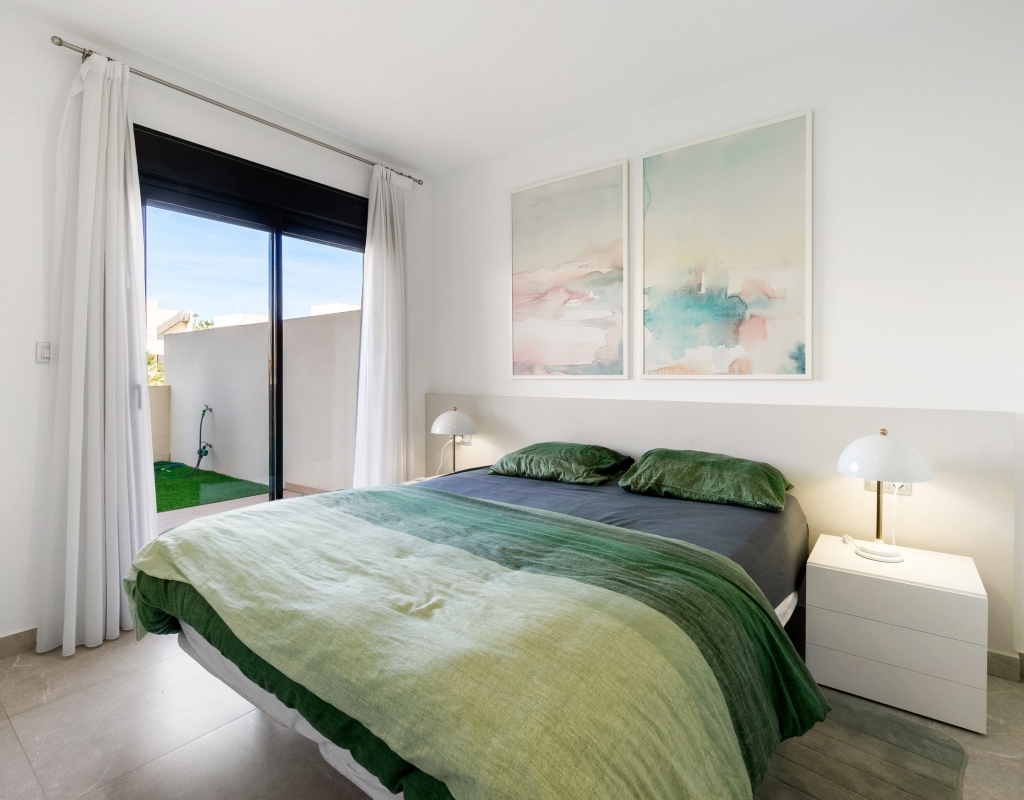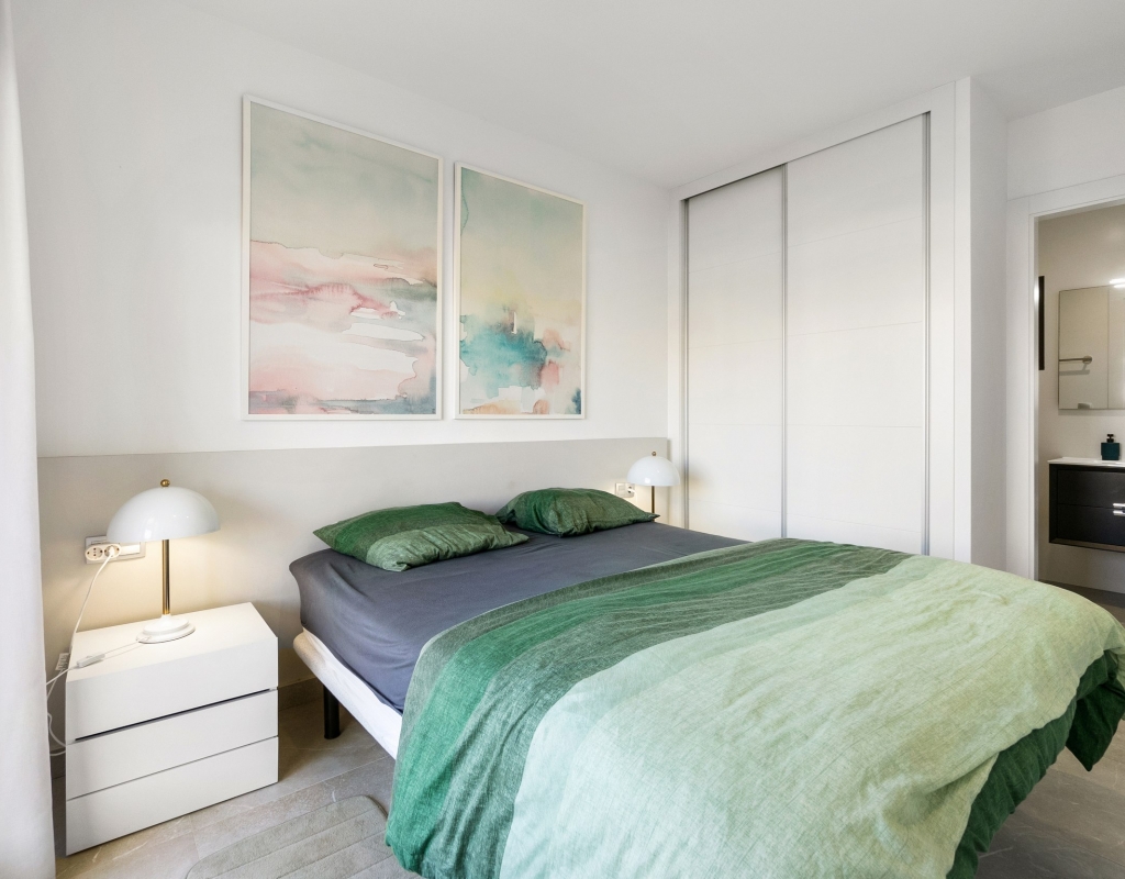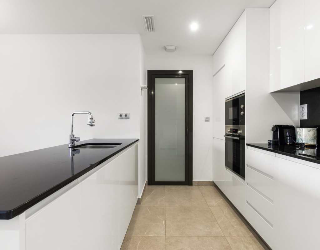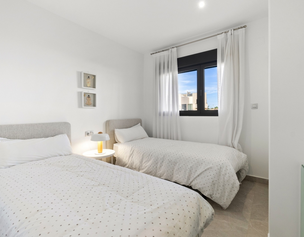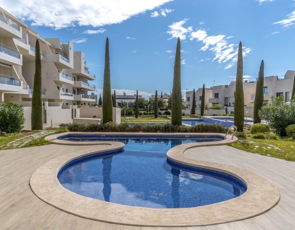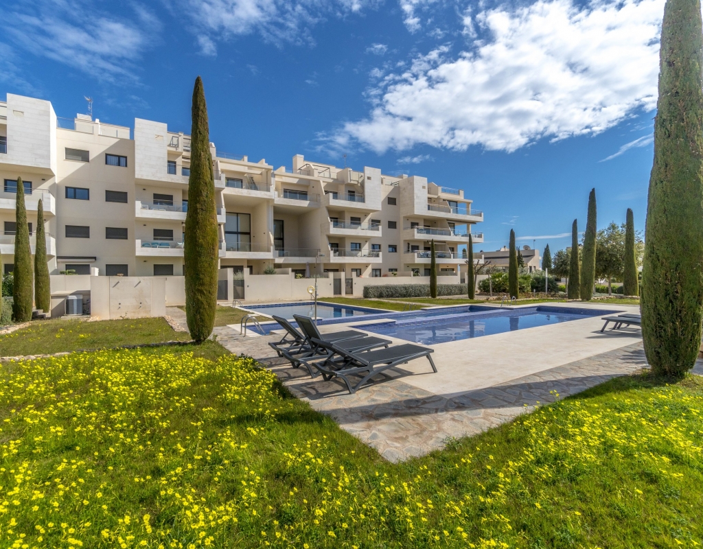 Modern apartment in Jardines de Montesolana, Orihuela Costa. This partment distributed in two bedrooms and two bathrooms. It has a spacious living-dining room with open plan kitchen and direct access to the large garden of 43 m2 with views to the communal areas of the residential with south orientation. It is located in the Jardines de Montesolana development which has a communal swimming pool and garden areas. This residential is close to La Zenia Boulevard shopping centre (Orihuela Costa). La Zenia is close to Cabo Roig, Campoamor and Playa Flamenca. It is a growing area, close to all amenities and the famous La Zenia Boulevard shopping centre. Only a few minutes from the N-332 and the Mediterranean motorway AP-7 towards Alicante and Cartagena. There are also around the golf courses of Villamartin, Las Ramblas, Campoamor and Las Colinas.