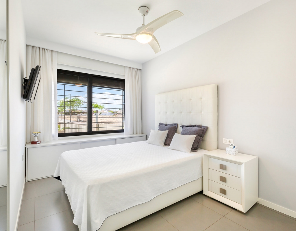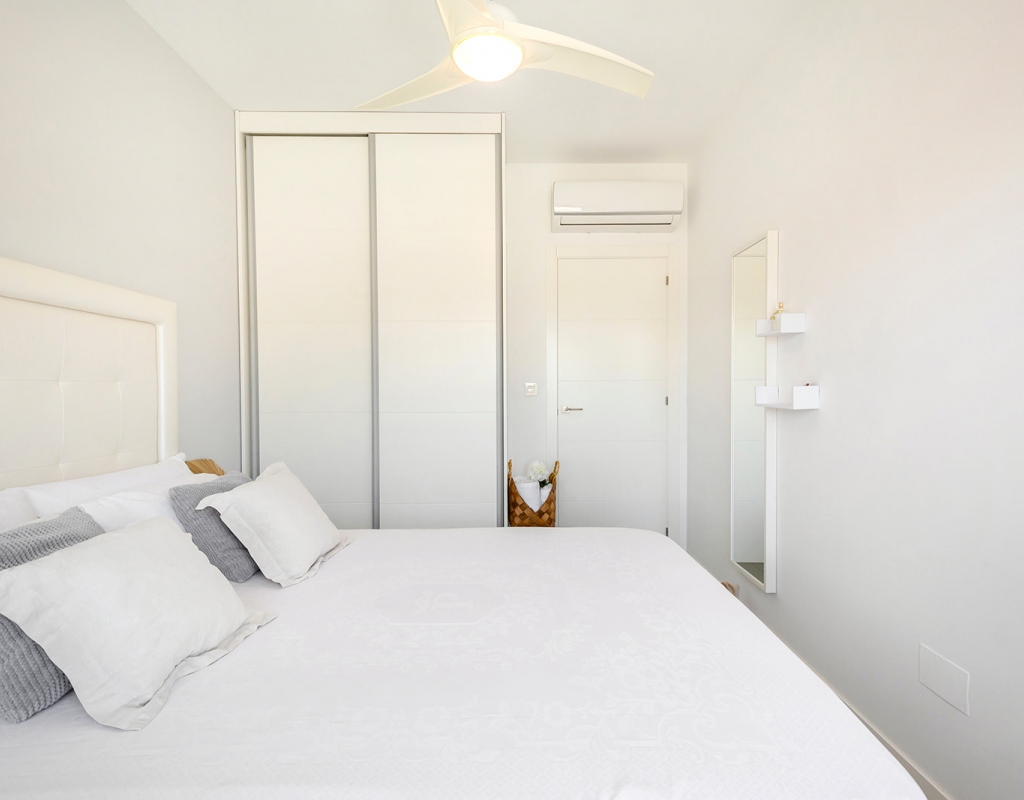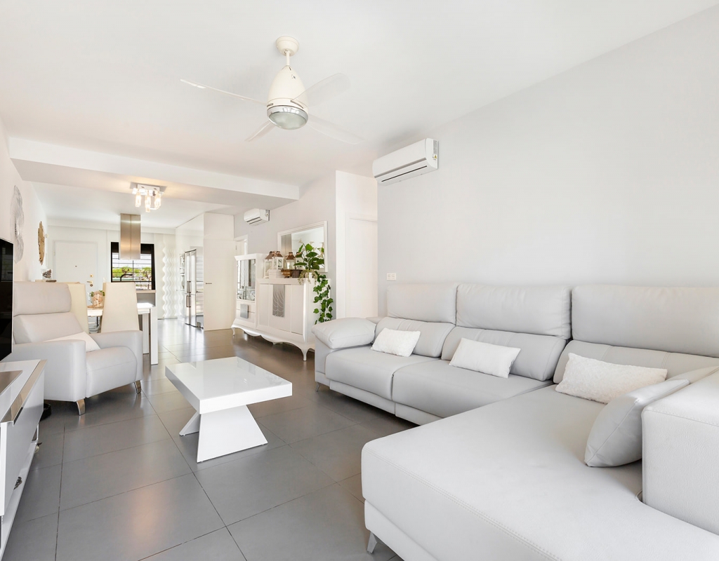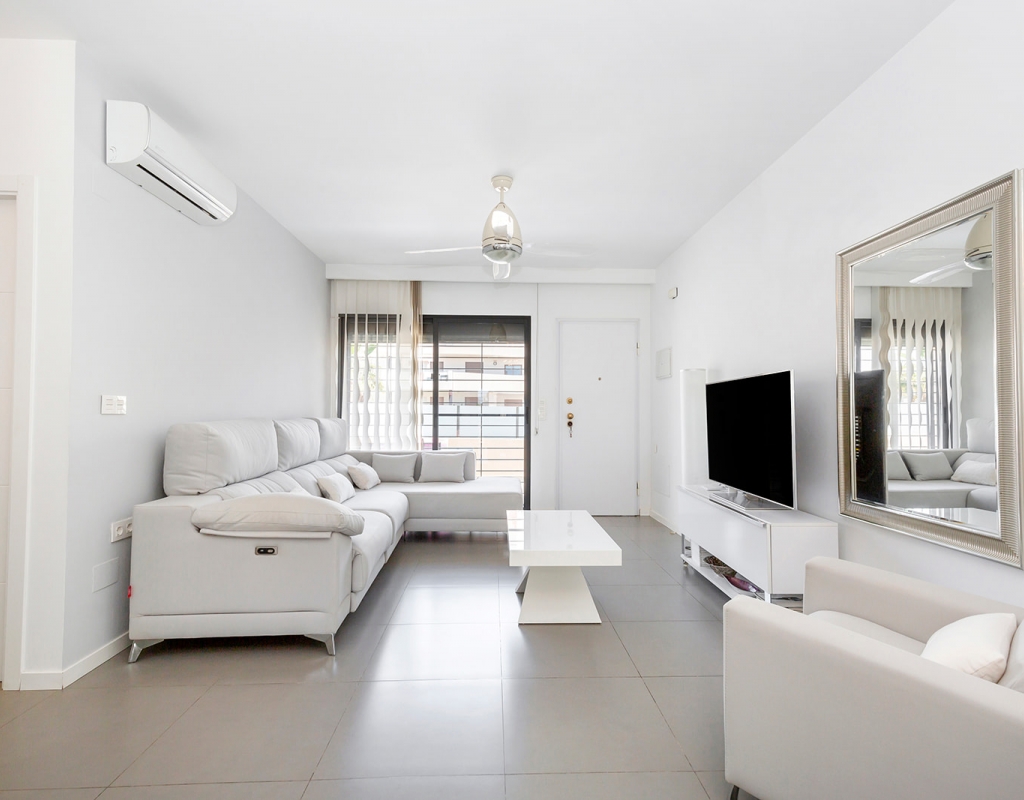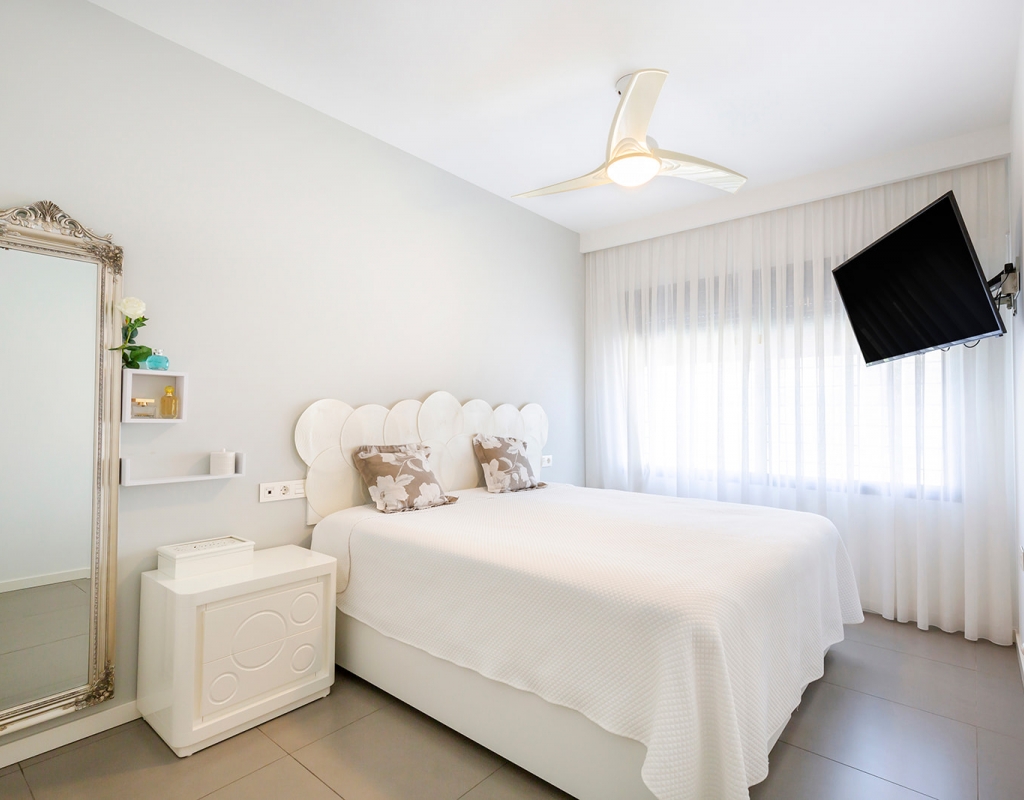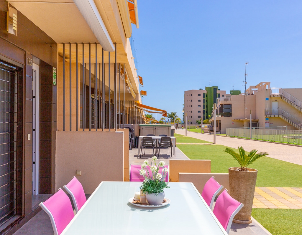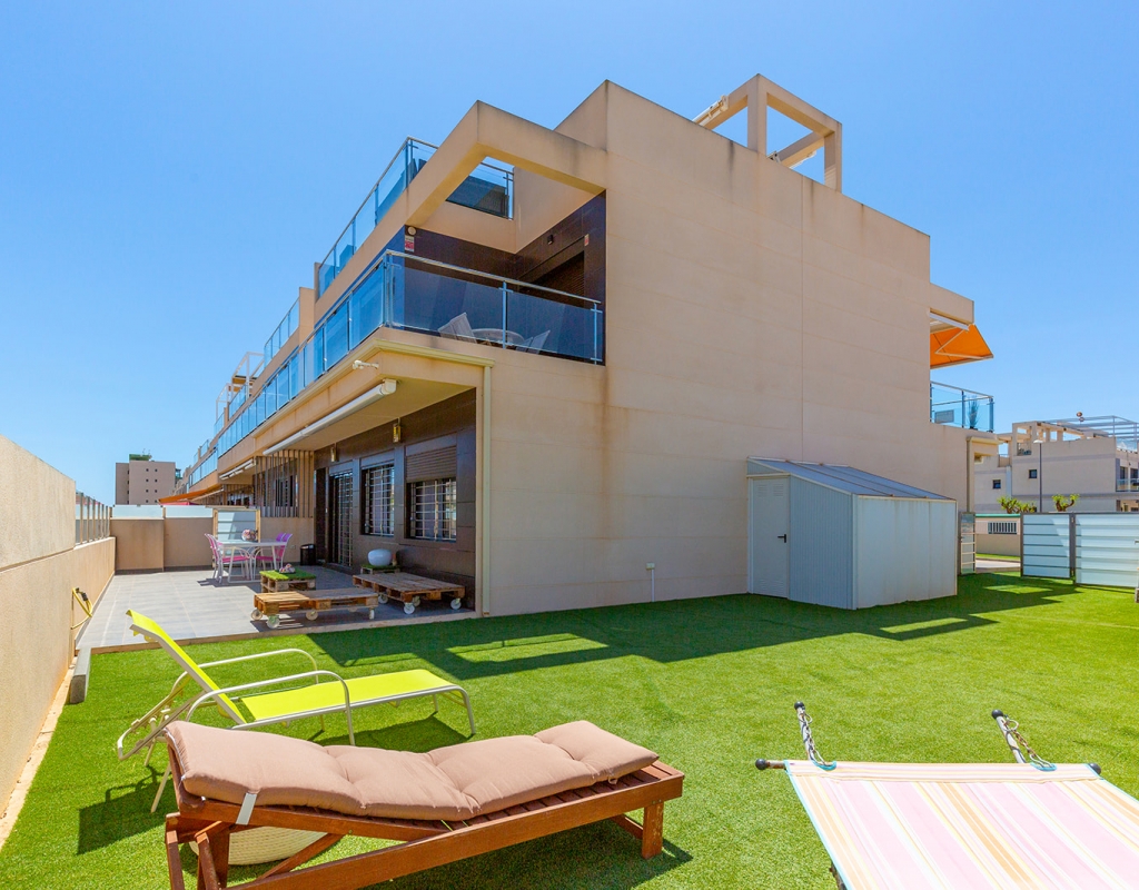 Spacious ground floor bungalow in Torre de la Horadada. This modern south facing property has 4 bedrooms, 3 bathrooms, a spacious living-dining room with open plan kitchen and direct access to the terrace and garden of 120m2. It is located in the complex where you can enjoy communal pool and garden areas. Torre de la Horadada is a prestigious area of the Costa Blanca, very close to Mil Palmeras, Campoamor, San Pedro del Pintar and Orihuela Costa. The famous salt lagoons of San Pedro del Pinatar and the Thalasia marine spa centre can be reached in only 10 minutes. Pilar De La Horadada, enjoys more than 2500 hours of sunshine a year and an average temperature of 18ºC, which makes it a privileged area. It has a wide range of services, green areas, promenades and a marina. Just 5 minutes from the shopping centres La Zenia Boulevard and Dos Mares. In addition to these magnificent weather conditions, there are sandy beaches such as Playa Jesuitas, Playa del Puerto and Playa de las Higuericas. Well communicated with the national road N-332 and the Mediterranean motorway AP-7. Close to major cities such as Murcia and Alicante.