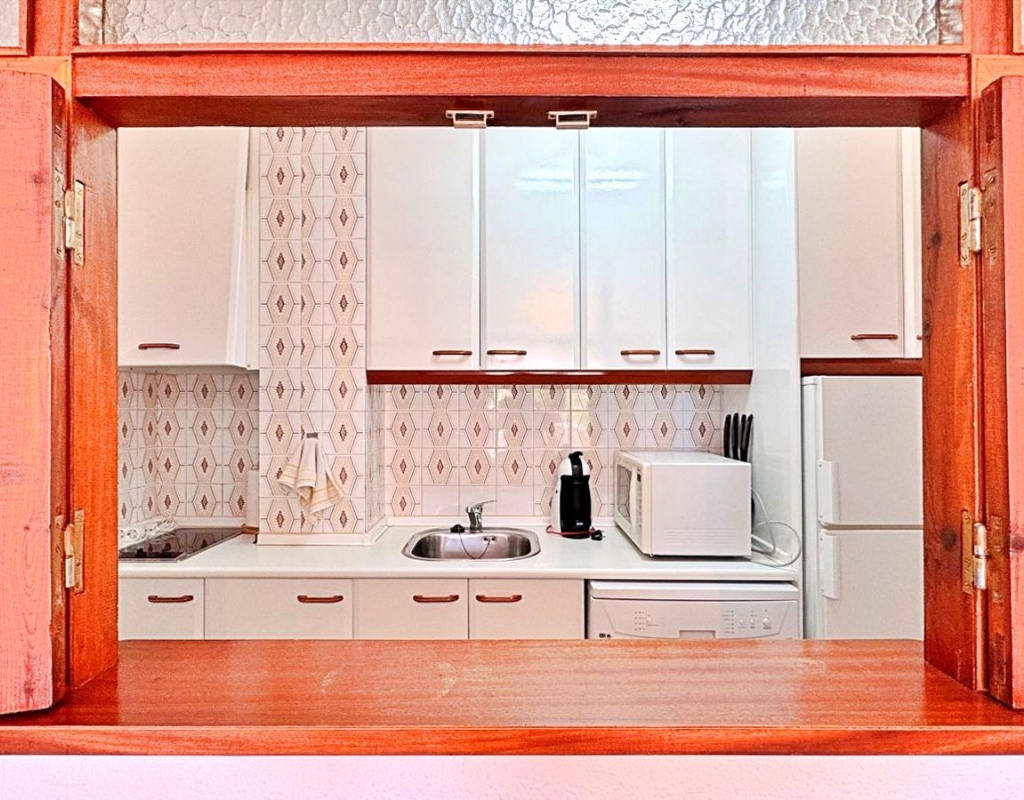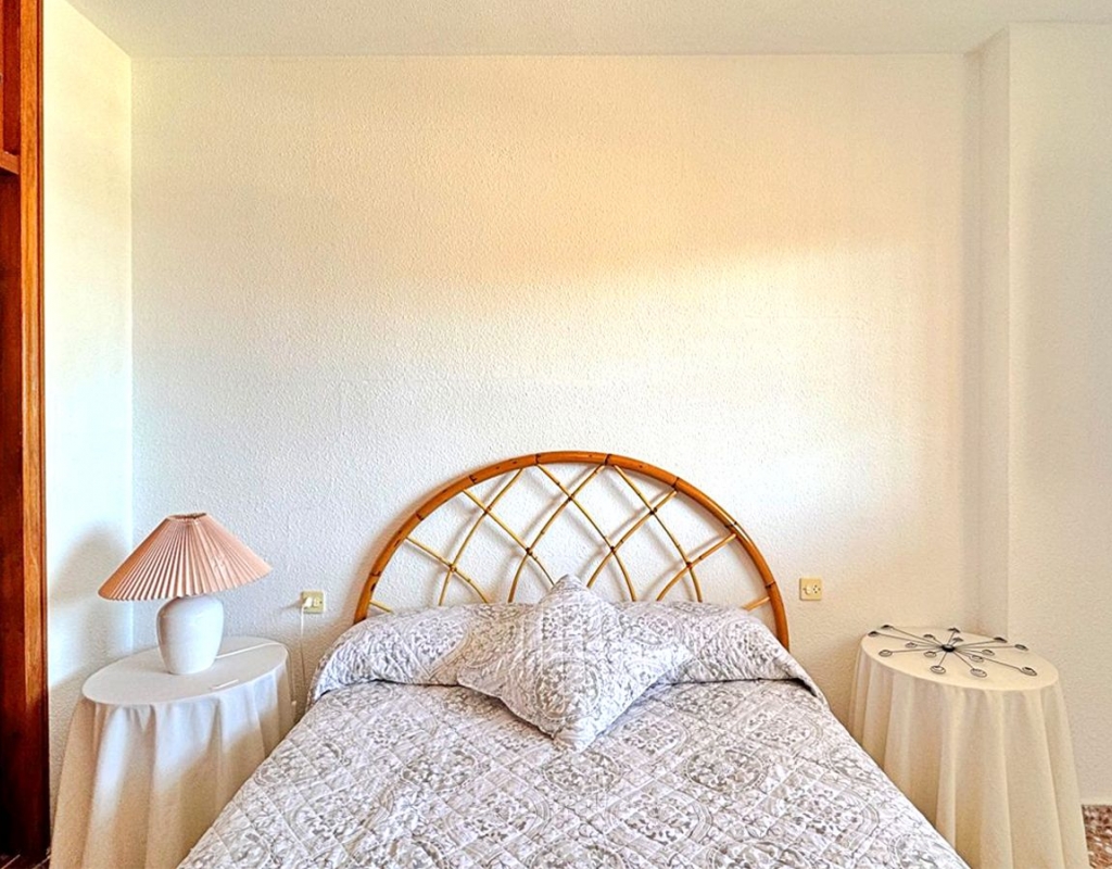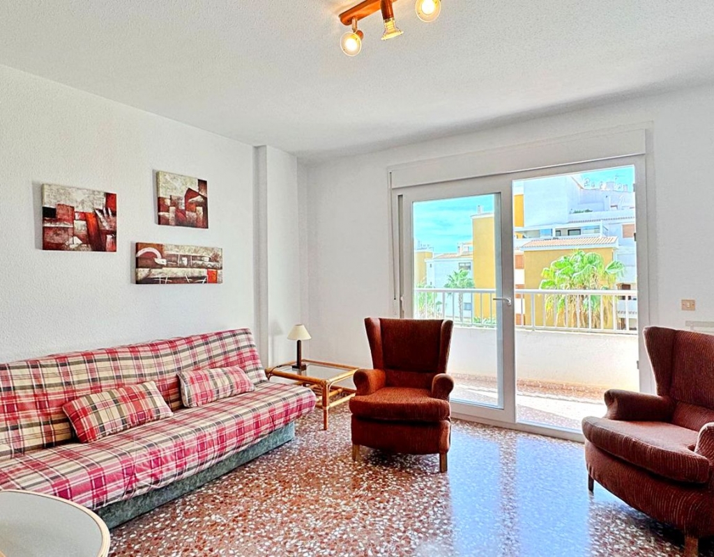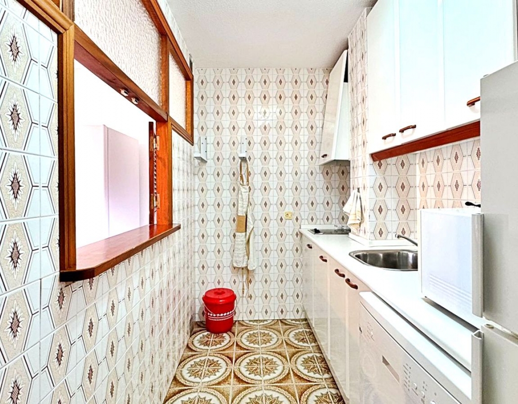 This cozy 4th-floor apartment with 1 bedroom and 1 bathroom is in its original condition but well maintained, ready to move into and enjoy. With a built area of approximately 50 m², it offers a bright atmosphere thanks to its orientation and its terrace with side sea views. The living-dining room is spacious and functional, with direct access to the terrace, an ideal place to relax outdoors while enjoying the Mediterranean breeze. The independent kitchen keeps its original design, well distributed and connected to the living area through a serving hatch, which adds comfort to daily life. The bedroom includes a built-in wardrobe and receives plenty of natural light, while the bathroom maintains its classic original style. Edificio Lyon, located in the sought-after area of Rocío del Mar, offers a community swimming pool and parking area, providing comfort and tranquility. The urbanization is surrounded by all necessary services: supermarkets, restaurants, public transport, and leisure facilities. Its location is excellent, just a few minutes’ walk from Rocío del Mar and Punta Prima beaches, making this apartment an ideal option as a permanent residence, holiday home, or rental investment.