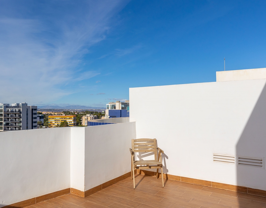 Located in the renowned area of Punta Prima, this penthouse is just a few steps from the beach and surrounded by year-round services: supermarkets, restaurants, cafés, public transport, and leisure areas. It is also close to shopping centres such as Zenia Boulevard, prestigious golf courses, and main connections to Torrevieja and Orihuela Costa.