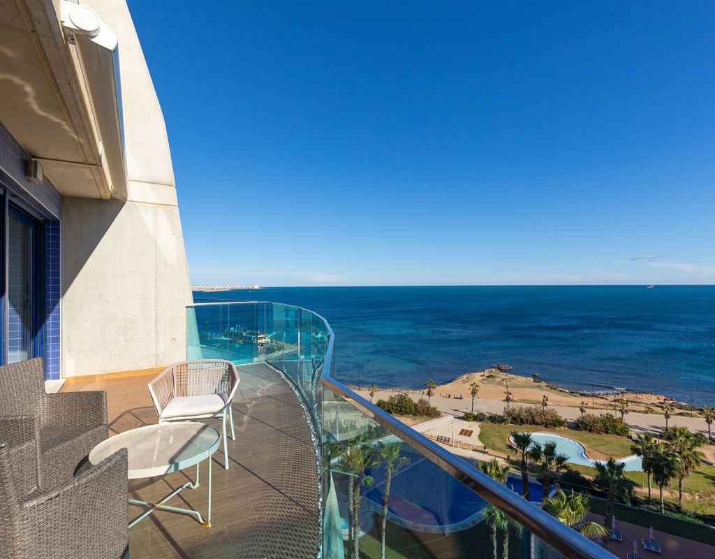 We present this stunning luxury penthouse located in the exclusive Sea Senses residential complex, one of the most sought-after developments in Punta Prima. With an unbeatable southeast orientation and panoramic views of the Mediterranean, this property offers a privileged seaside lifestyle.