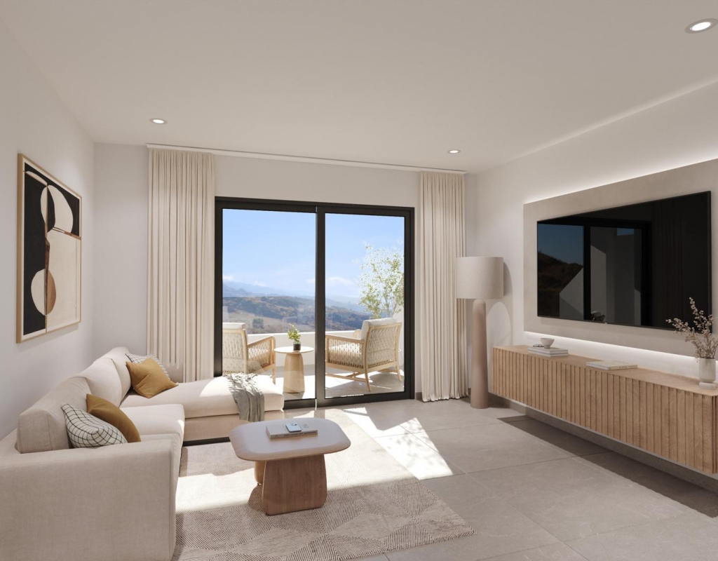 Imagine starting your day with a breathtaking view from your private terrace, a feature included in each unit, perfect for enjoying the Mediterranean climate. Whether you choose an apartment or a penthouse, you'll find spacious layouts designed to suit your lifestyle, offering two to three bedrooms and two bathrooms. Each home is crafted with high-quality porcelain stoneware flooring and comes equipped with a video intercom for added security.