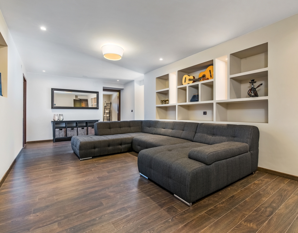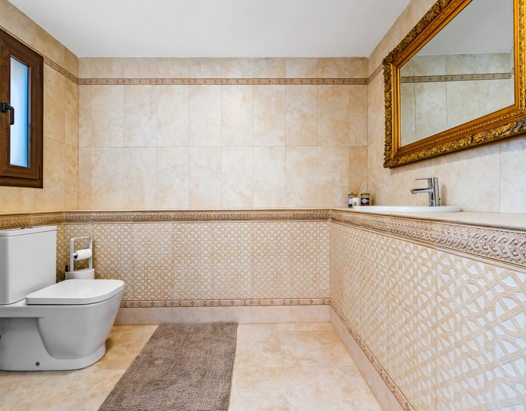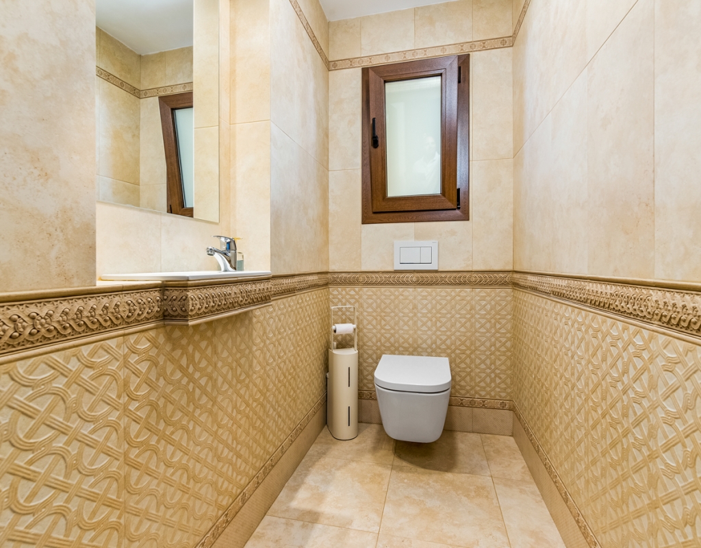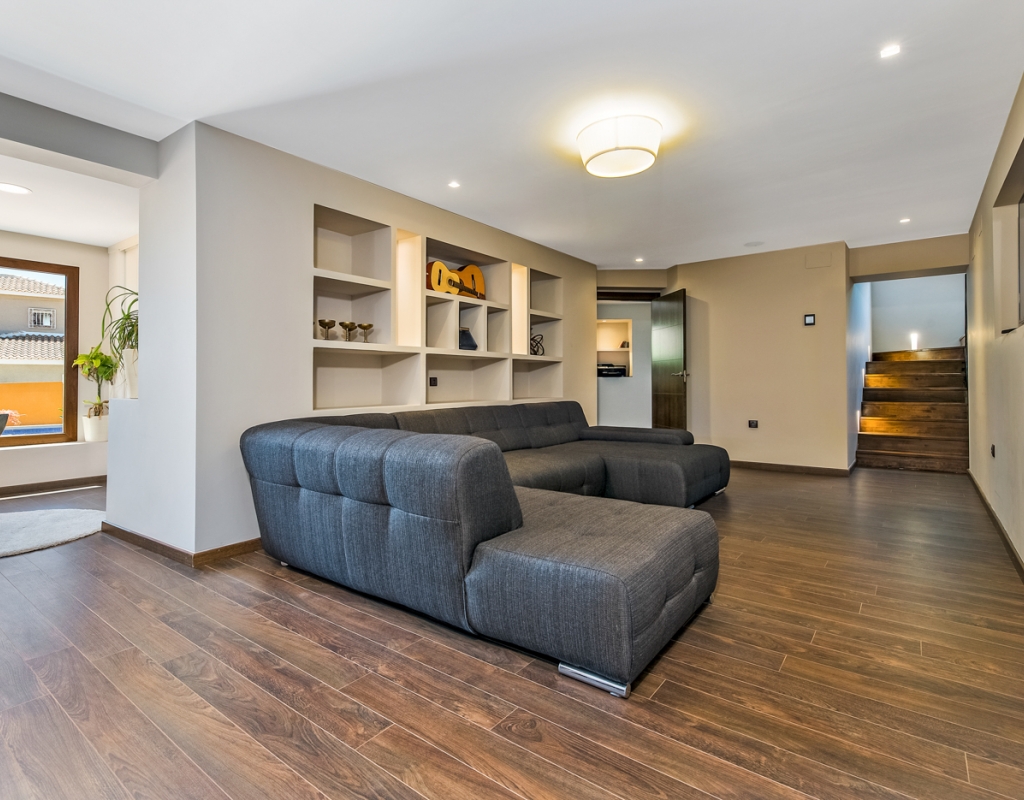 You can access the lower level through both internal stairs and an external entrance. Here you can find an entrance area, a TV room, a large double bedroom with an en-suite bathroom, a single bedroom and a guest toilet. On this level you can also find an amazing indoor heated pool.