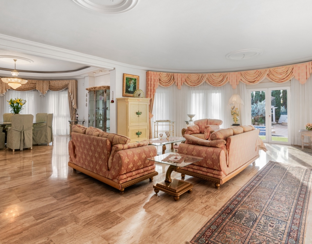 The property enjoys great privacy, thanks to its tall shrubbery, and is located in a quiet, well-connected area, very close to the prestigious Norwegian private school, making it an ideal option both as a permanent family residence and as a high-end investment.