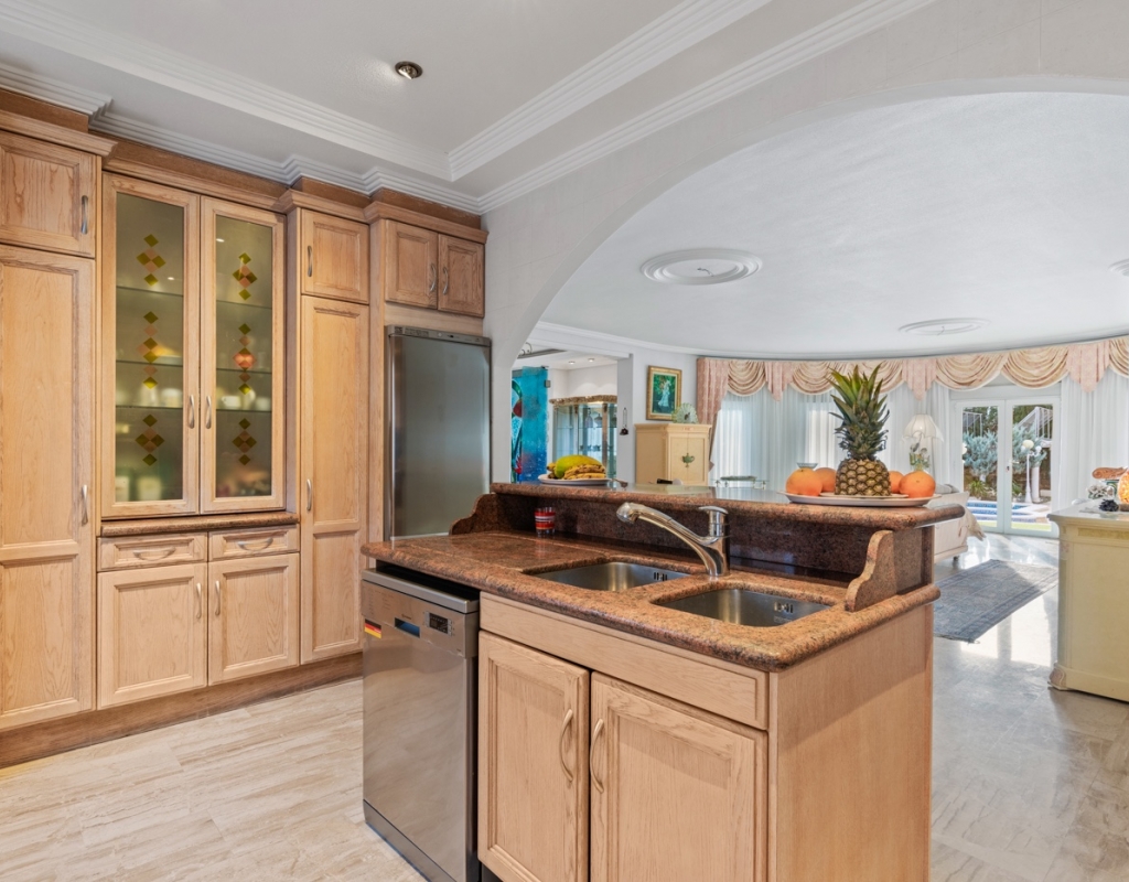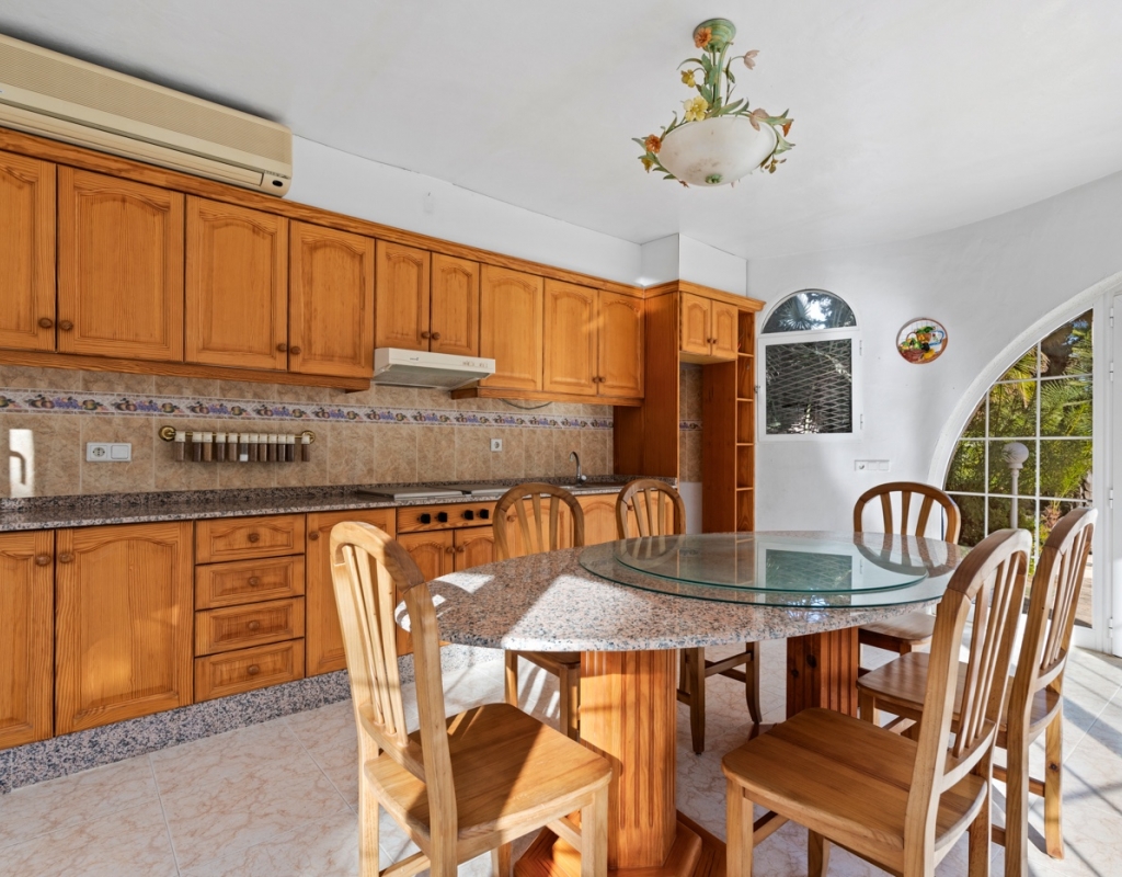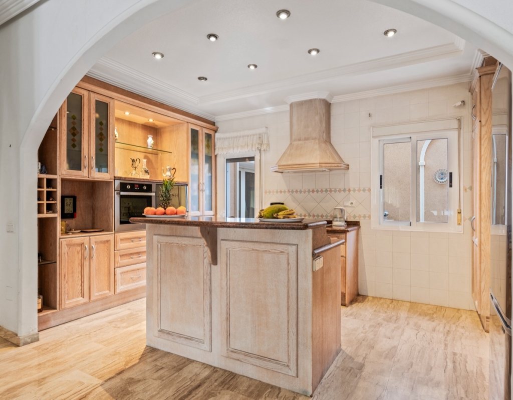 The exterior of the property is one of its greatest attractions: it features a fully equipped, enclosed outdoor kitchen, ready for year-round use, as well as a large swimming pool, ideal for family and social gatherings. The plot also includes a closed garage, additional parking space, and landscaped gardens that completely surround the house.