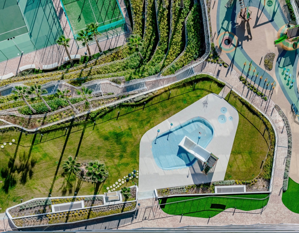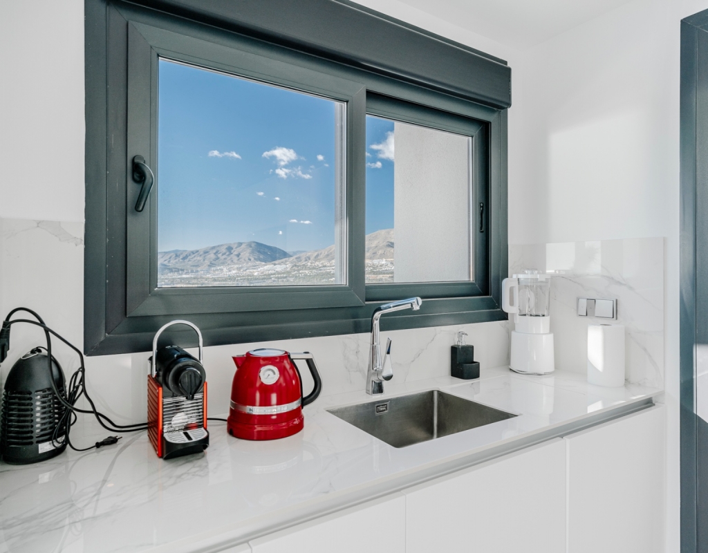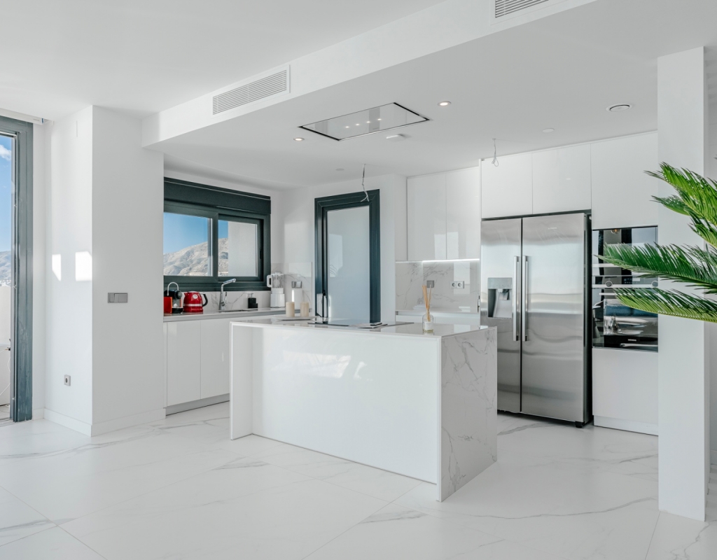 As part of the exclusive Sunset Cliffs residential complex, residents enjoy access to heated pools, a panoramic fitness center, sports courts, a cinema, and children’s facilities, providing a resort-style experience. The development also offers direct beach access and is just minutes from Benidorm’s historic center, combining luxury with convenience.