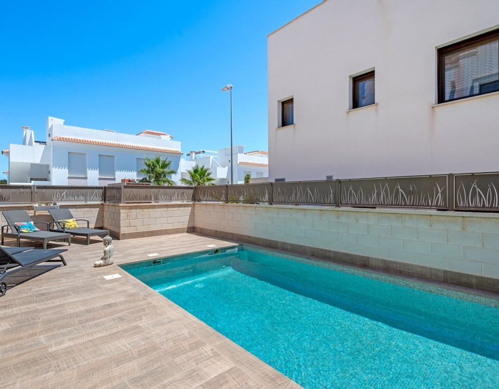 Located in a quiet residential area of Ciudad Quesada, this property, built in 2018, offers a functional layout and well-utilized indoor and outdoor spaces. It has a built area of 101 m² on a 184 m² plot, with three bedrooms, three bathrooms, a basement and a rooftop terrace.