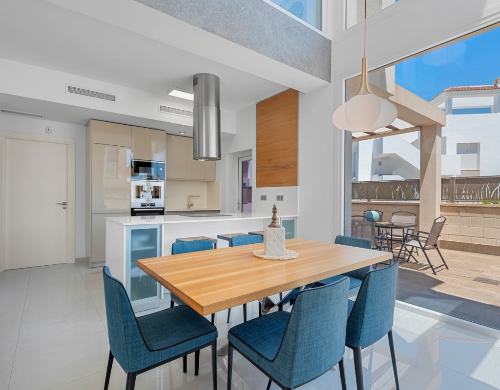 The private rooftop terrace includes a fully installed and functional outdoor kitchen with direct access from inside the house, making it a comfortable area for year-round use.