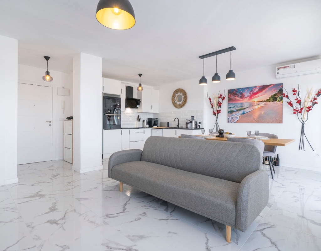 Discover this bright 2-bedroom, 2-bathroom apartment, designed to offer comfort, spaciousness, and an exceptional quality of life. Located in an exclusive gated community in Punta Prima, this home is perfect both as a permanent residence and as a vacation investment. Upon entering, you are welcomed by a spacious living-dining room with an open-plan kitchen, ideal for enjoying time with family or friends. The integration of the spaces and the excellent orientation allow for a constant stream of natural light throughout the day. From the cozy private balcony, you can enjoy unobstructed views of the sea, the perfect spot to relax at the end of the day. ✅ 2 double bedrooms with built-in wardrobes ✅ 2 full bathrooms ✅ Fully equipped modern kitchen ✅ Private parking space included ✅ Gated community with swimming pool ✅ Just minutes from all amenities: supermarkets, restaurants, public transportation, schools, and leisure areas ✅ Quiet and well-connected surroundings A property that combines style, functionality, and a prime location. Come visit and fall in love!