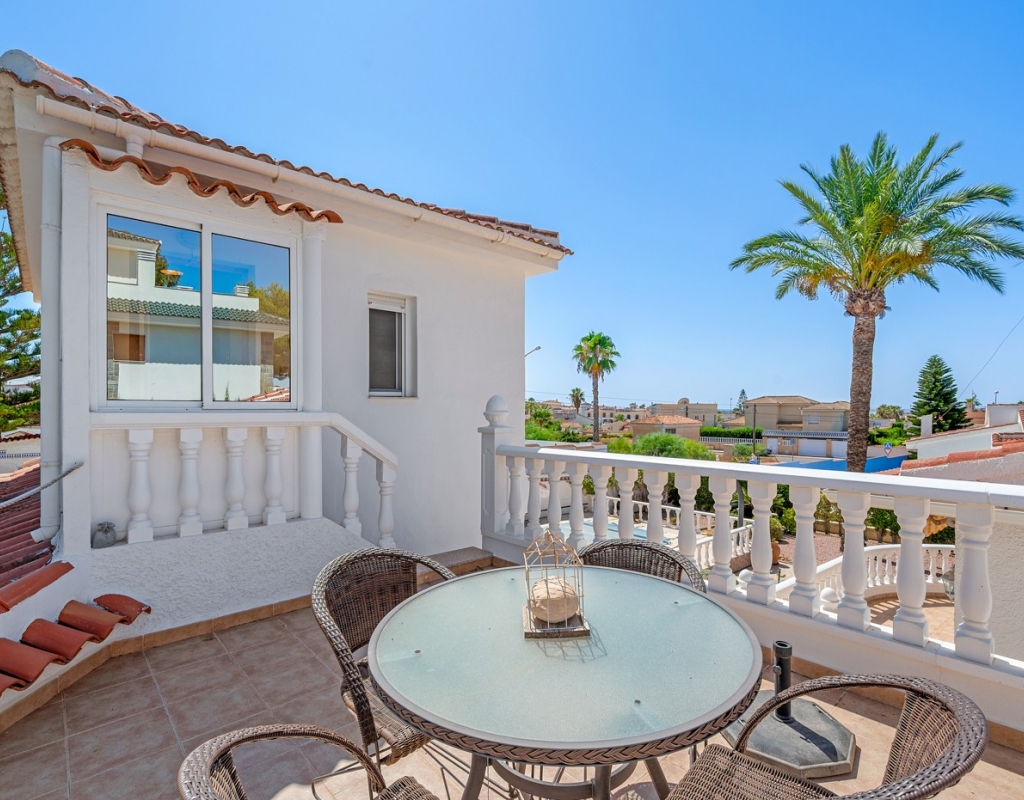 Set on a generous and fully gated plot, the property has well a maintained garden, providing plenty of outdoor space to enjoy the Mediterranean sunshine. The home overlooks a private swimming pool and features secure off-road parking as well as a garage. A large wraparound terrace at the front of the villa offers elevated views over the gardens and makes it perfect for relaxing or entertaining. Additionally, a beautifully glazed outdoor terrace provides a cosy year-round space to enjoy the peaceful surroundings.