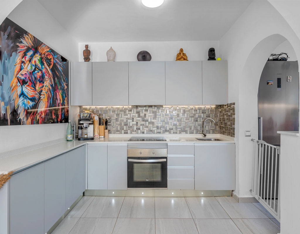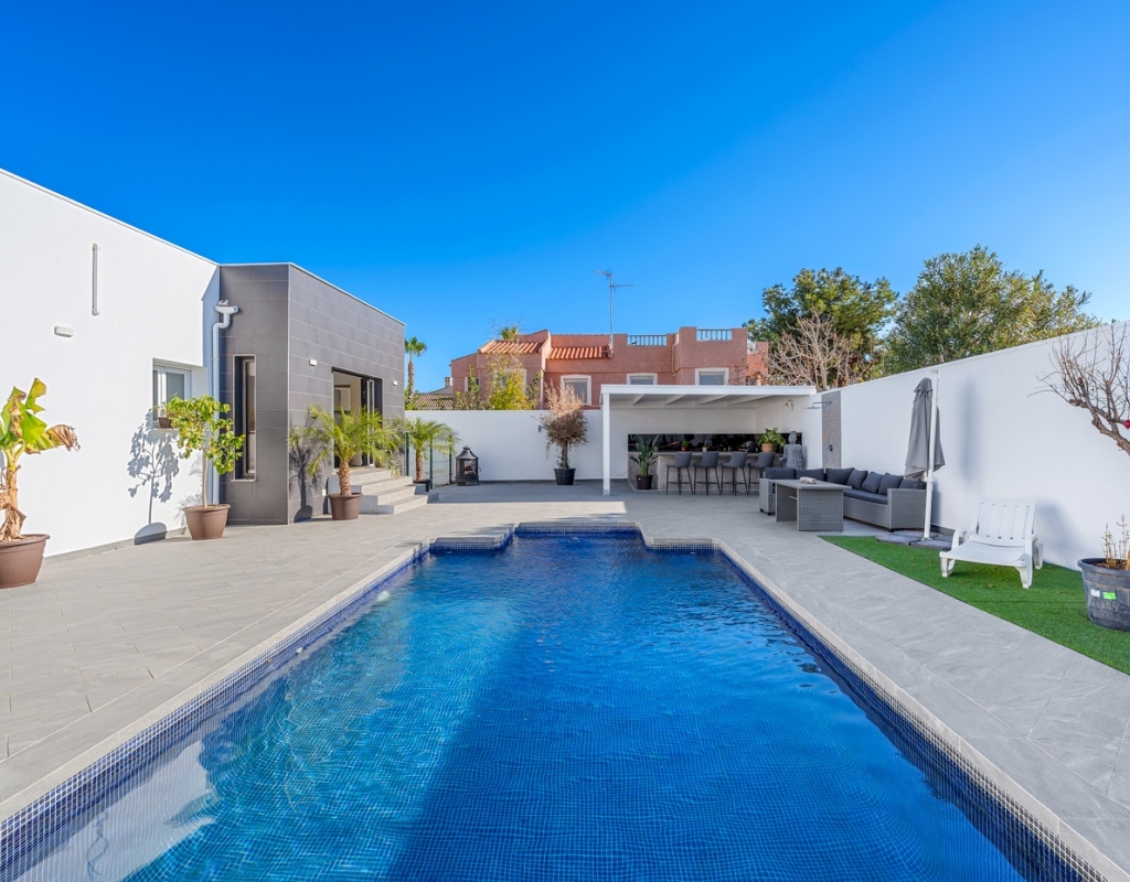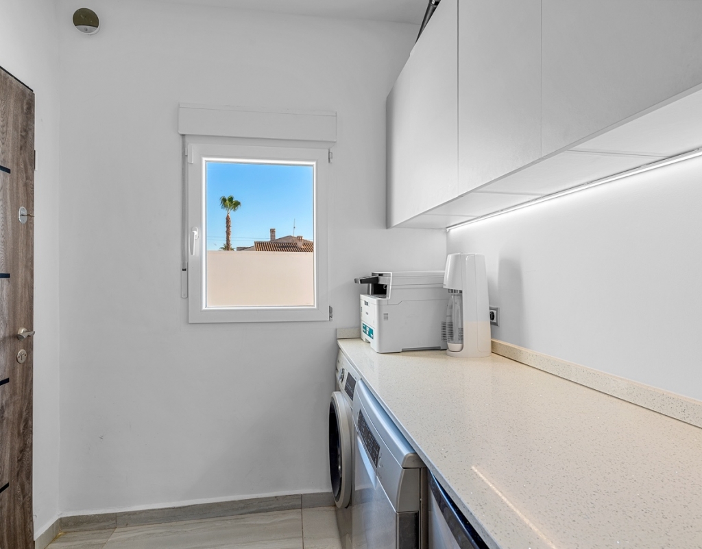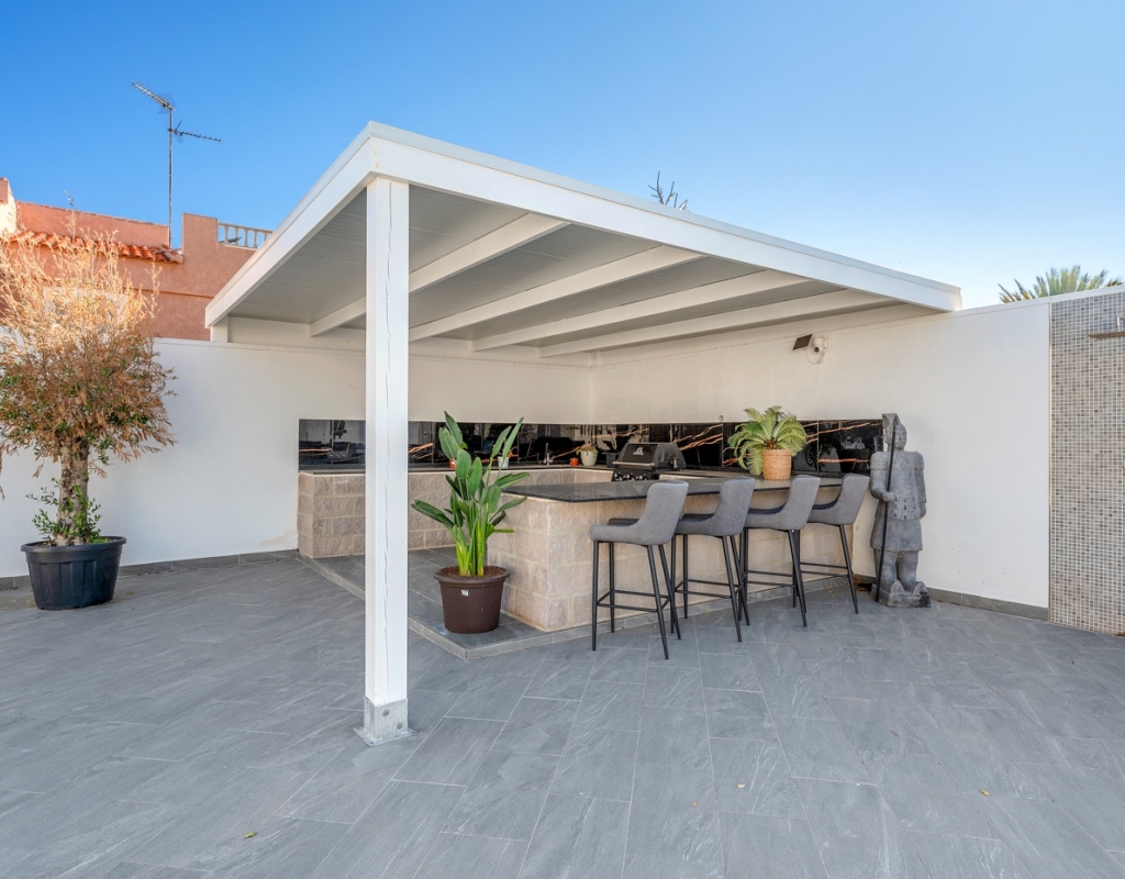The exterior is designed to make the most of the excellent Costa Blanca climate thanks to a private 8x4 meter swimming pool and a fully equipped outdoor kitchen, which becomes the perfect place for al fresco meals and gatherings.