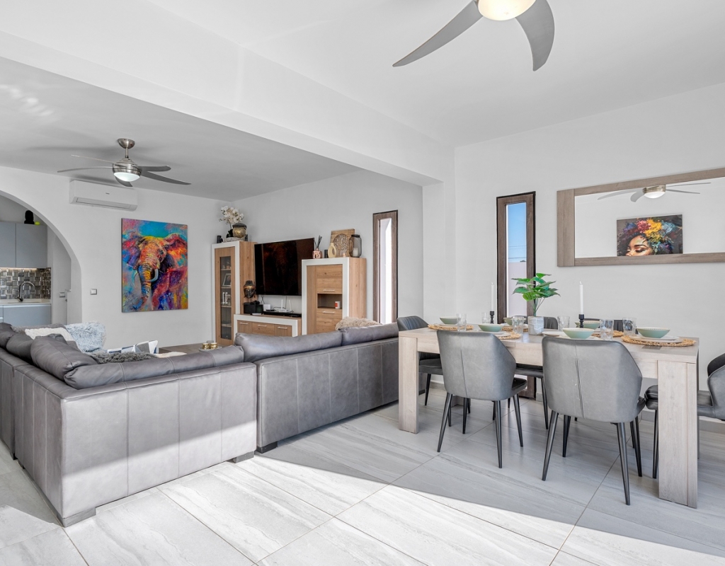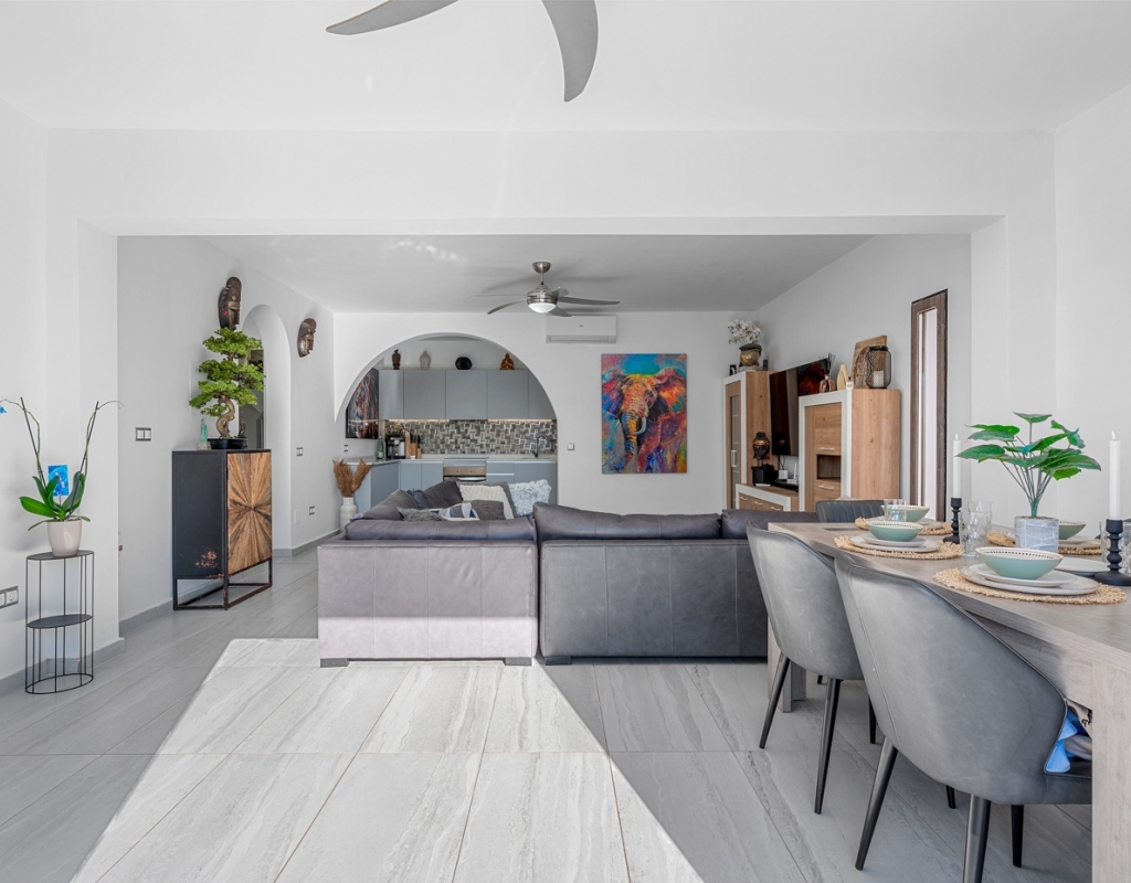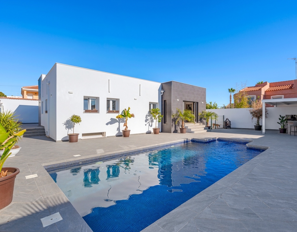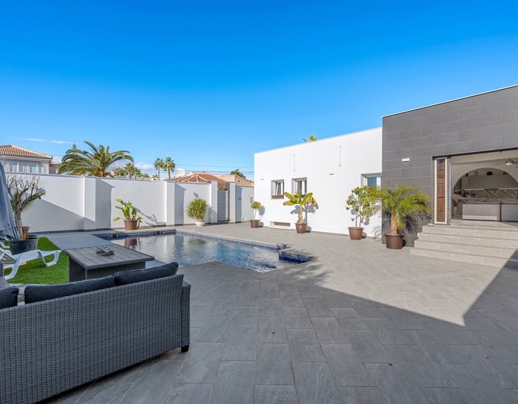The exterior is designed to make the most of the excellent Costa Blanca climate thanks to a private 8x4 meter swimming pool and a fully equipped outdoor kitchen, which becomes the perfect place for al fresco meals and gatherings.