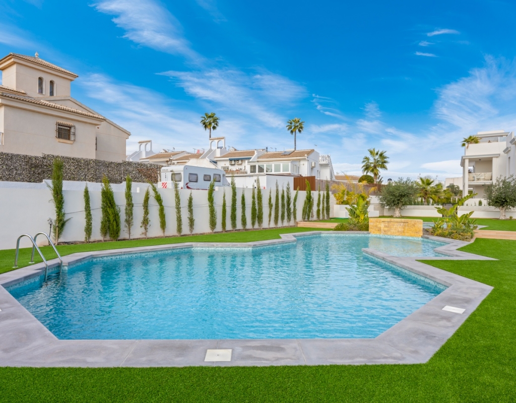The community offers excellent common areas, with two swimming pools: one in front of the house and another in the back, surrounded by ample space for sunbathing and relaxation.