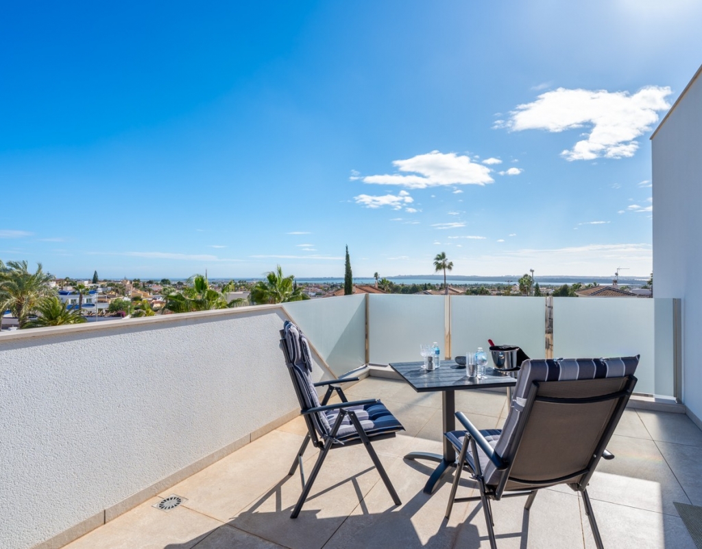 Discover the unparalleled charm of this exceptional detached contemporary villa, ideally located in one of Ciudad Quesada’s most sought-after residential areas. Elevated and secluded, the property offers a perfect balance of privacy, architectural refinement, and panoramic views across the Salt Lakes, Mediterranean Sea, and surrounding mountains, while remaining just moments from the town centre.