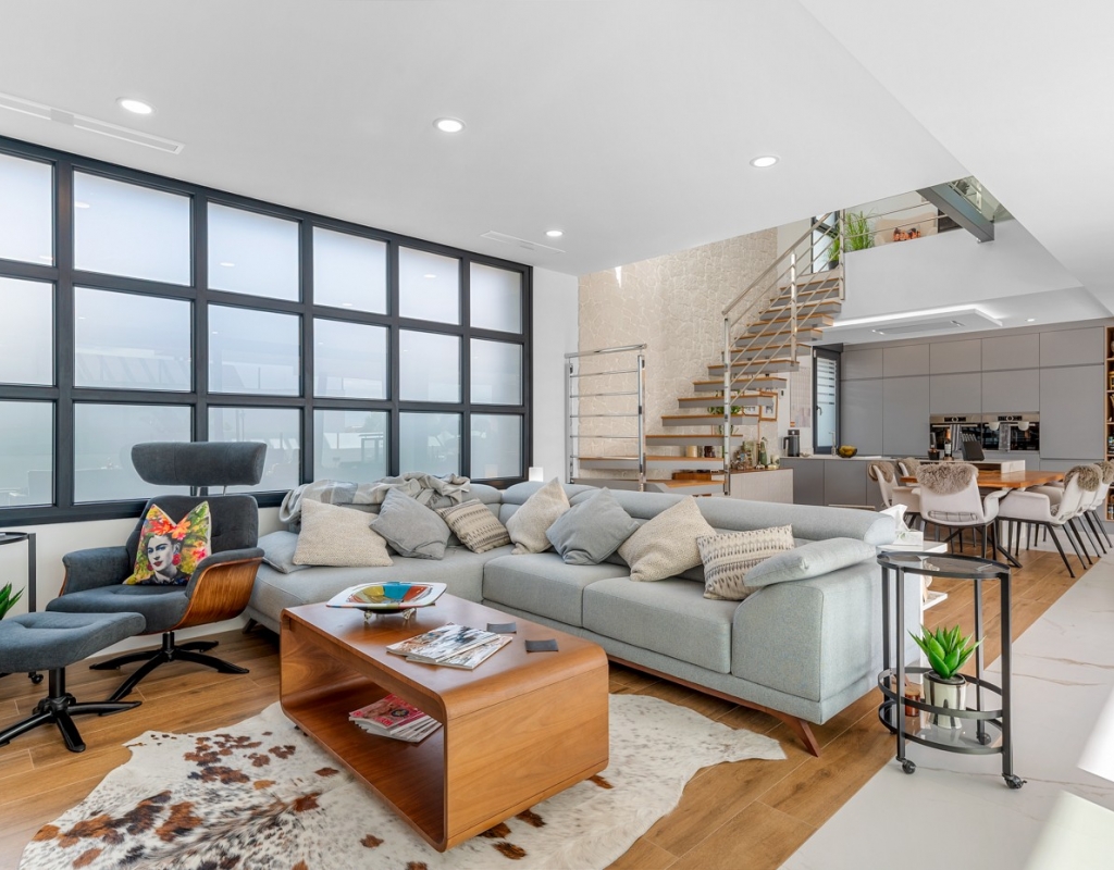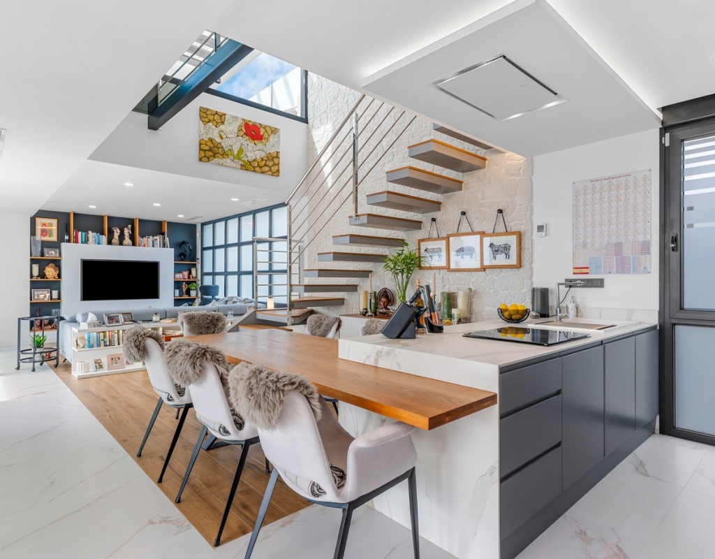 Every aspect of this villa reflects the refined taste of its owner, whose background in the fashion industry is evident in the careful selection of materials, textures, and finishes, resulting in a home of exceptional quality and cohesive design.