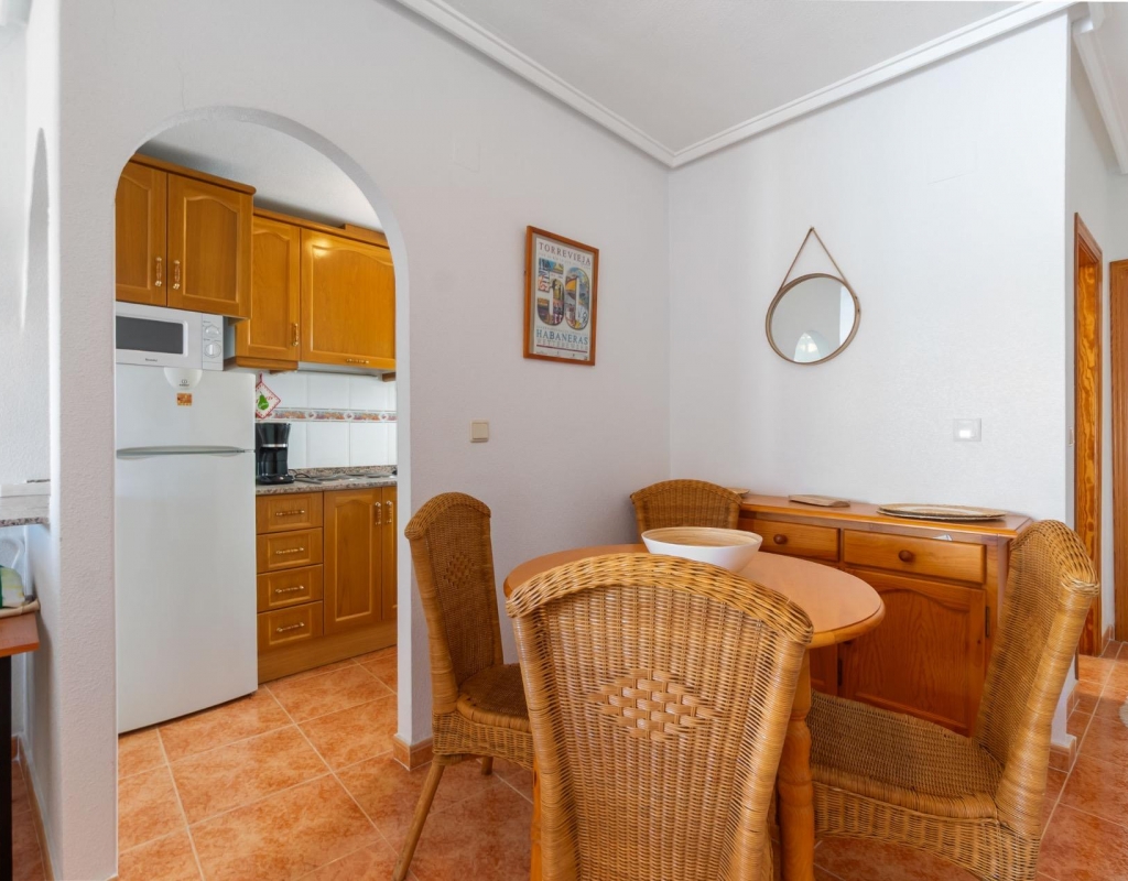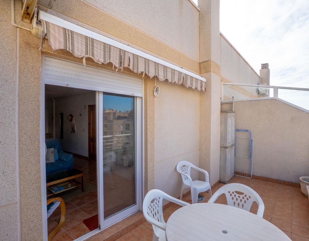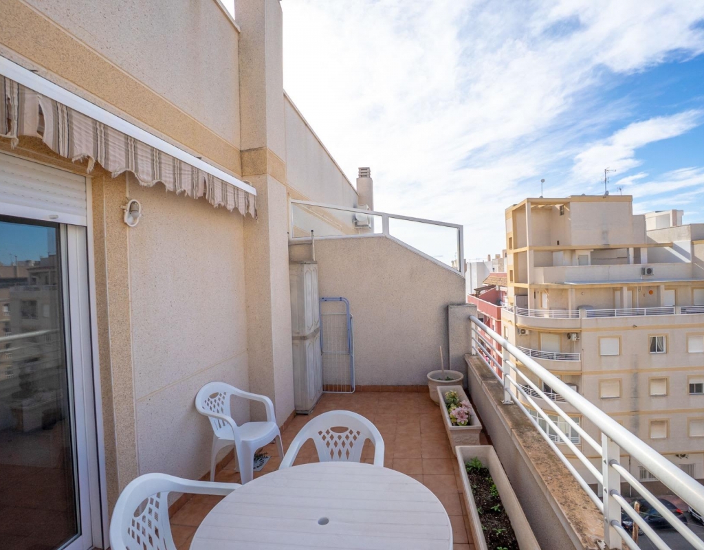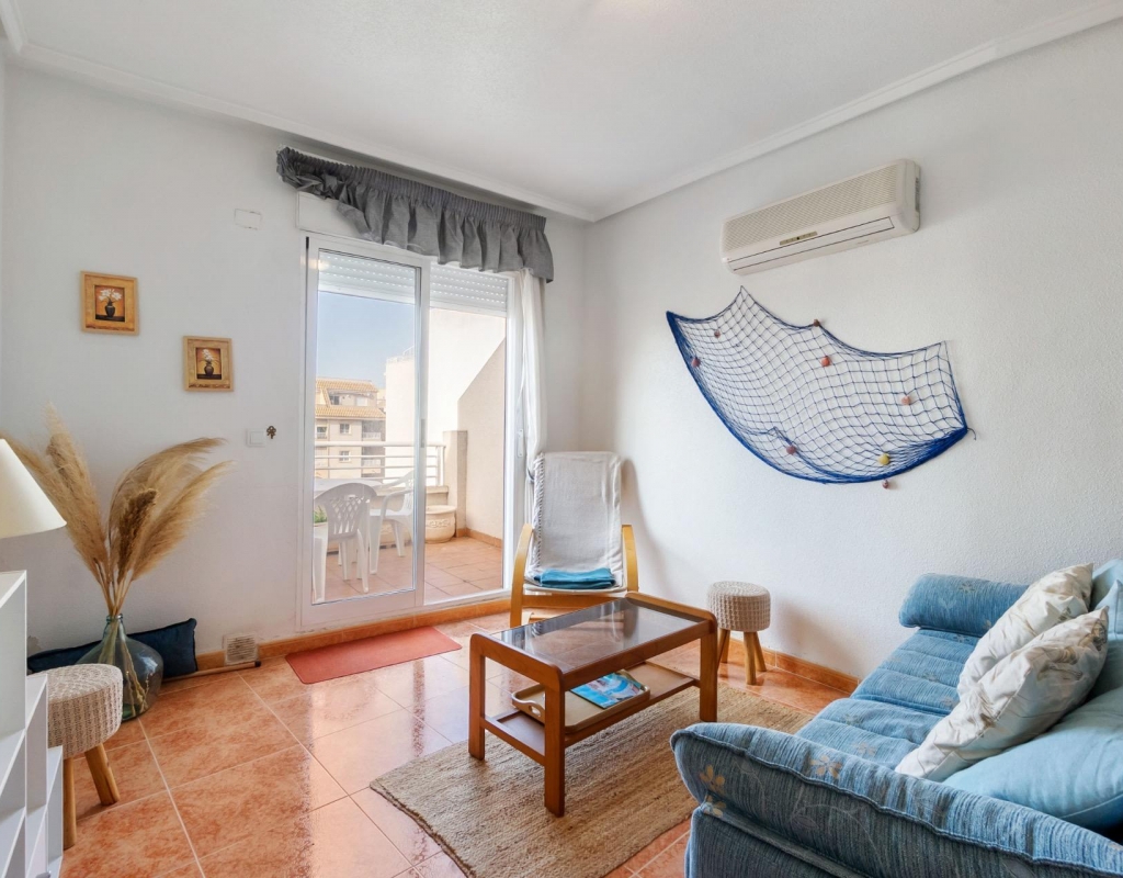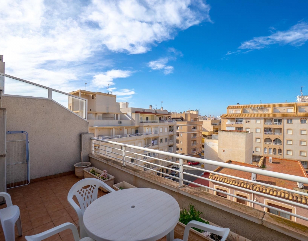 Top-floor apartment with large terrace and open views in Torrevieja~~This apartment is located on the fourth and top floor of a well-maintained building with a lift, offering privacy, natural light and a pleasant sense of openness.~~The property comprises one bedroom, one bathroom, a living room with an open-plan kitchen, and a spacious terrace of approximately 12 m2, ideal for enjoying the Mediterranean climate thanks to its open views.~~It is equipped with split air conditioning in both the living room and the bedroom, ensuring comfort throughout the year. The building is in good condition and offers a practical and comfortable residential environment.~~An attractive option as a permanent residence, holiday home or investment, particularly valued for its top-floor position and generous outdoor space.