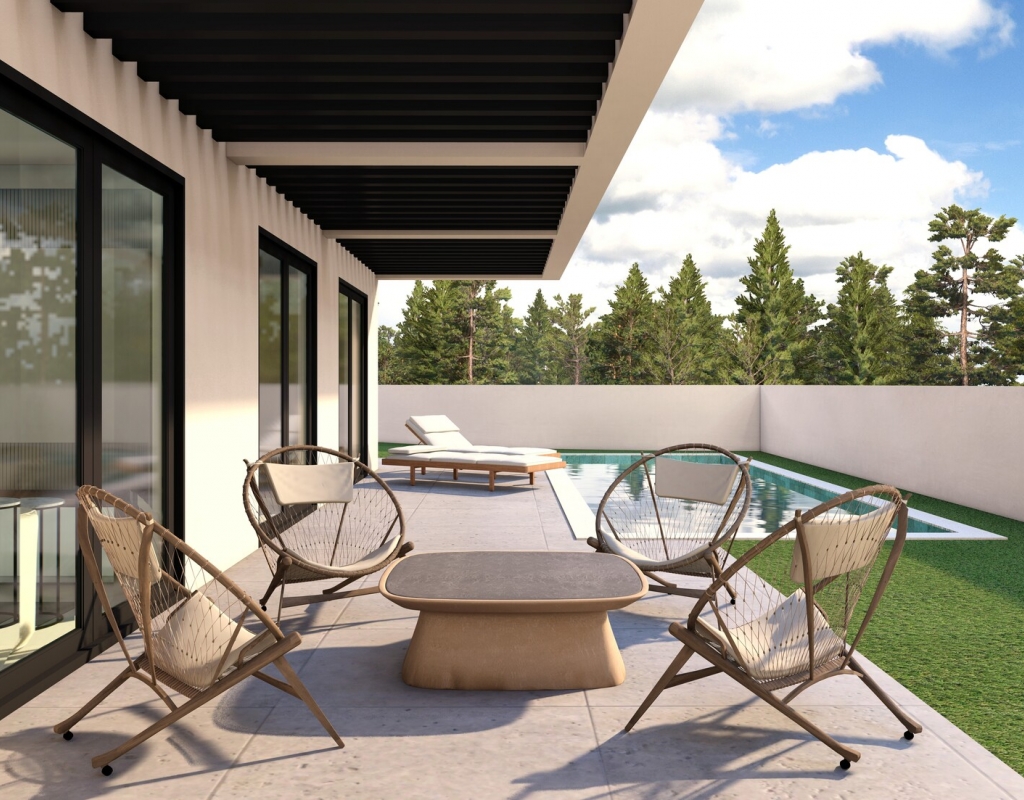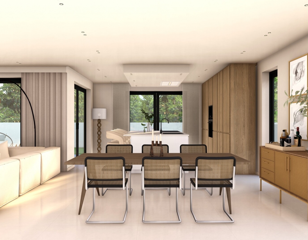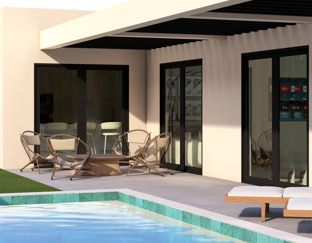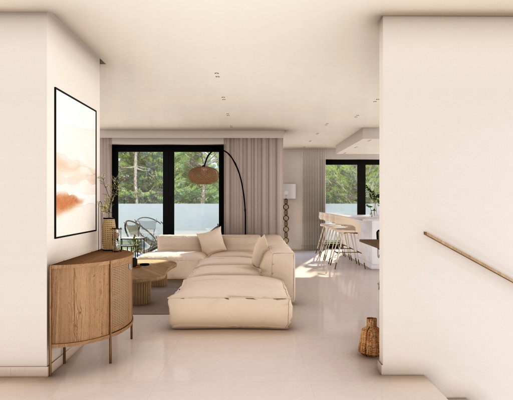 The homes feature an exterior design that perfectly integrates modern architecture with the natural surroundings of Finestrat. Each property has a private pool, ideal for enjoying the Mediterranean climate. Additionally, the solariums provide extra space to relax and enjoy the stunning sea views. The presence of a private garage ensures convenience and security for residents, allowing direct and easy access to each home.
