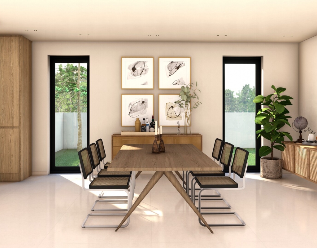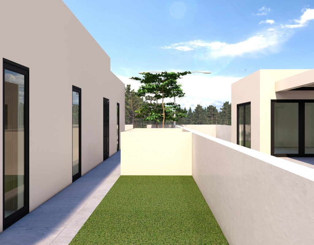 The interior of the homes is designed to offer maximum comfort and functionality. The kitchens are equipped with modern appliances, facilitating daily tasks. Built-in wardrobes provide ample storage space, keeping the spaces tidy and elegant. The pre-installation of air conditioning ensures that the indoor climate is always pleasant, while the video intercom adds an extra level of security and convenience. With 3 bathrooms available, each family member can enjoy their own private space.
