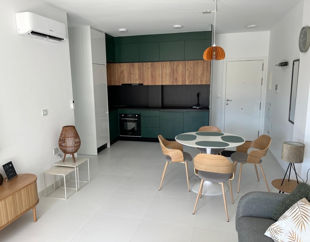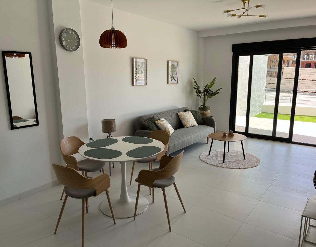 This modern 2 bedroom, 2 bathroom apartment is located in San Miguel de Salinas, in an excellent location close to all amenities and leisure areas. With a built area of 75 m², the house features a fully equipped open-plan kitchen, a bright living room and two bedrooms, and access to a private veranda and a private garden overlooking a covered terrace of 30 m² and a spacious garden of 40 m². Highlights: 2 built-in wardrobes Furnished Equipment included Air conditioning and pre-installation for air conditioning Secure door and intercom Located on the ground floor with easy access Ideal location: Only 15 minutes from the beach 40 minutes from the airport 10 minutes from the golf course 10 minutes from recreational areas and amenities Perfect for both permanent living and holidays. Move-in ready!