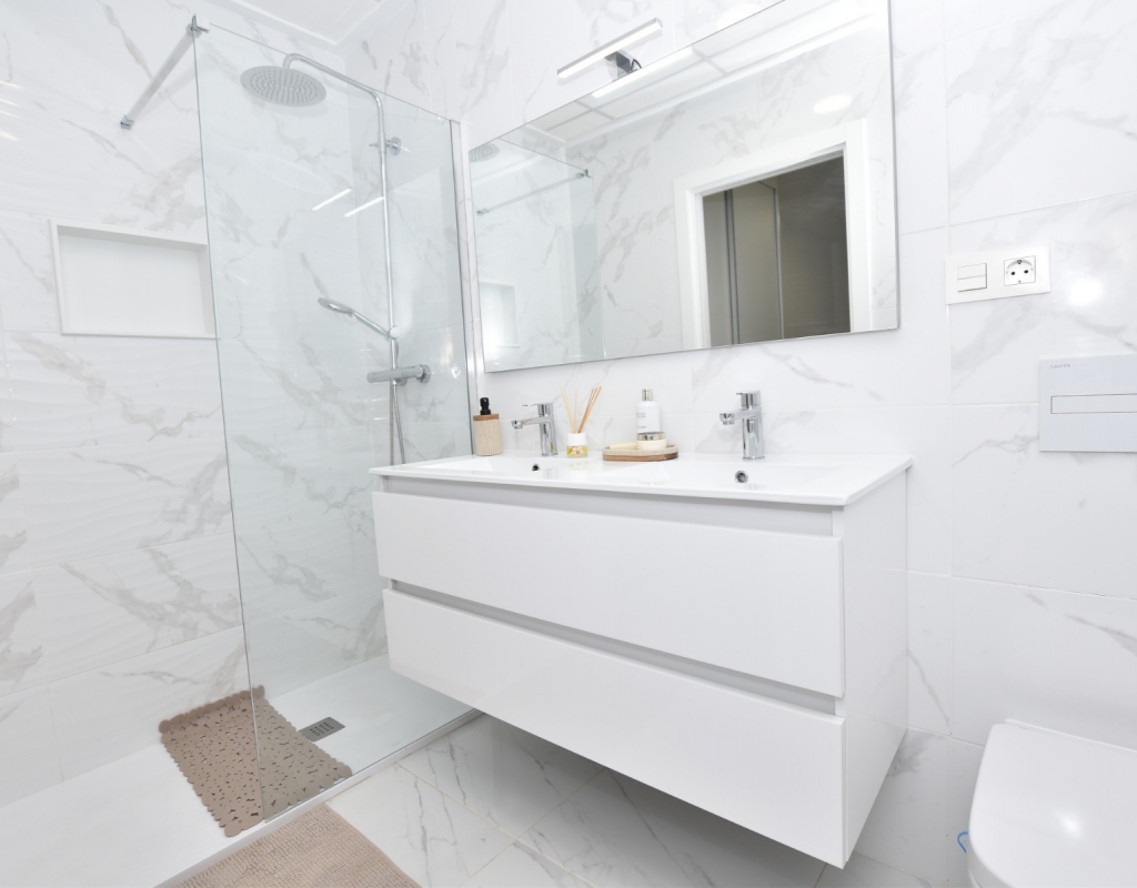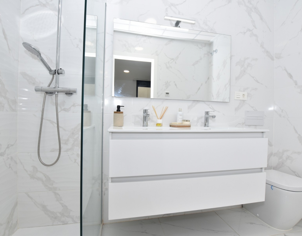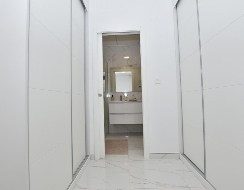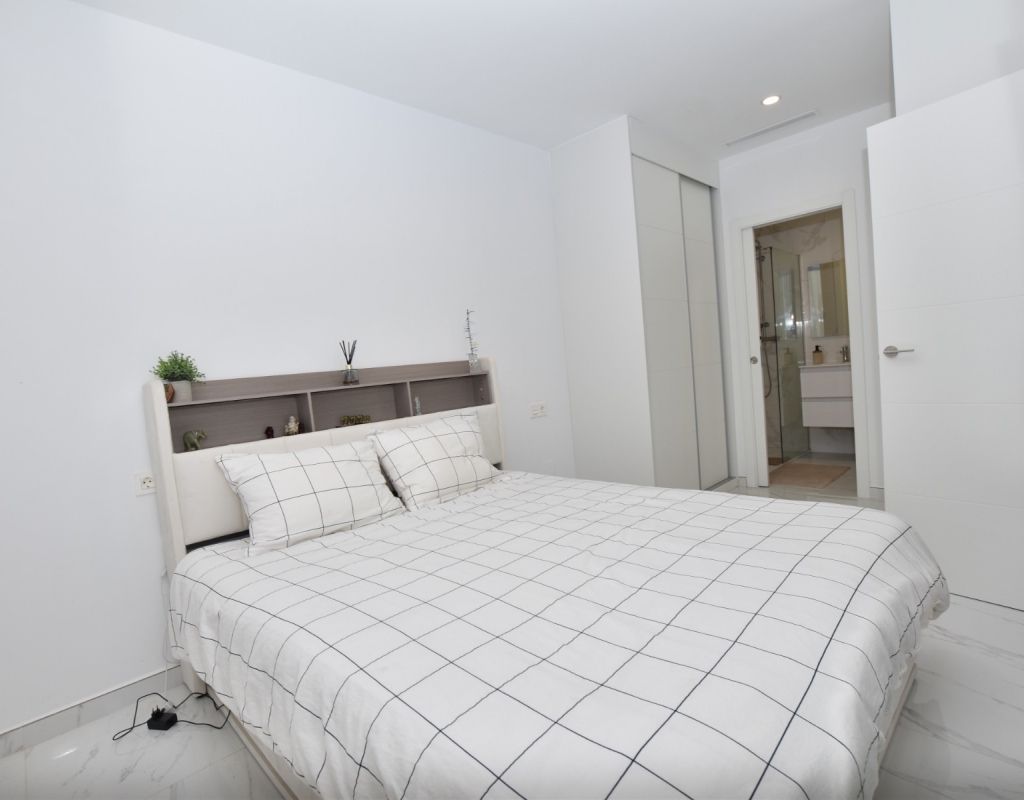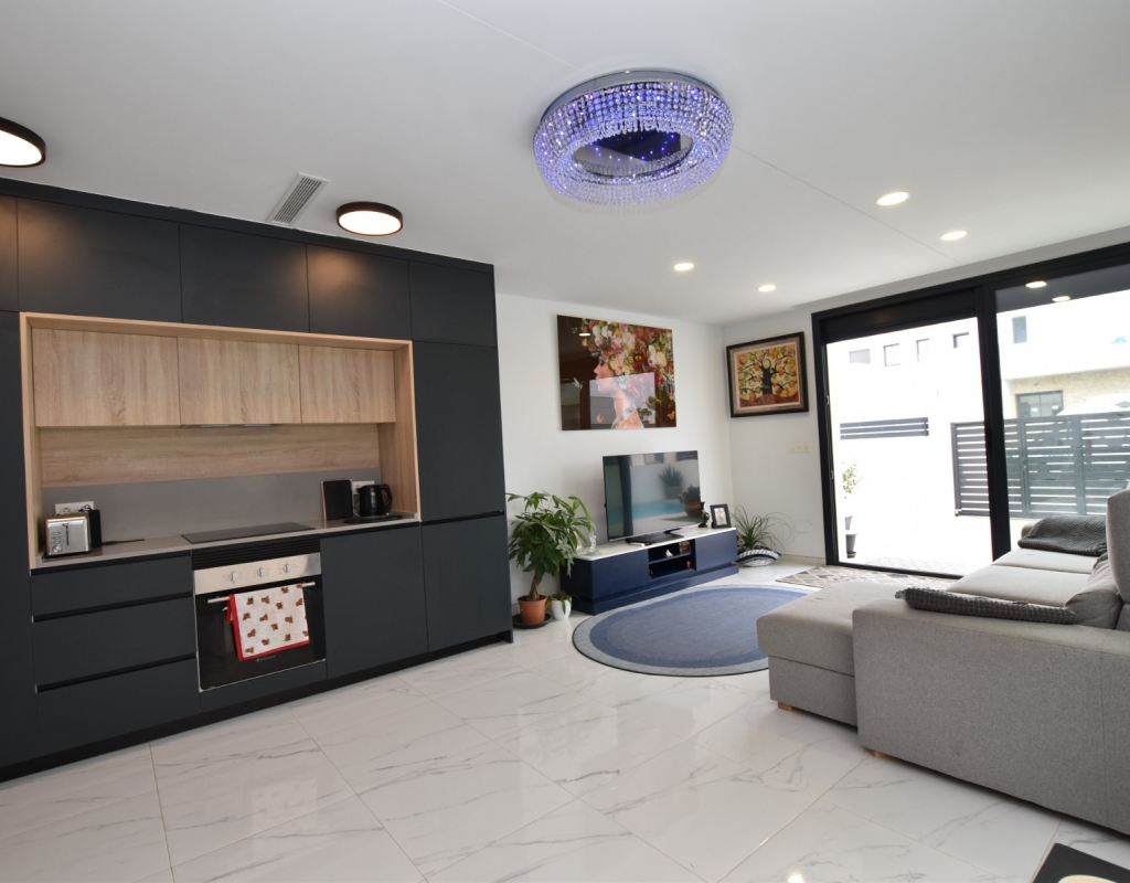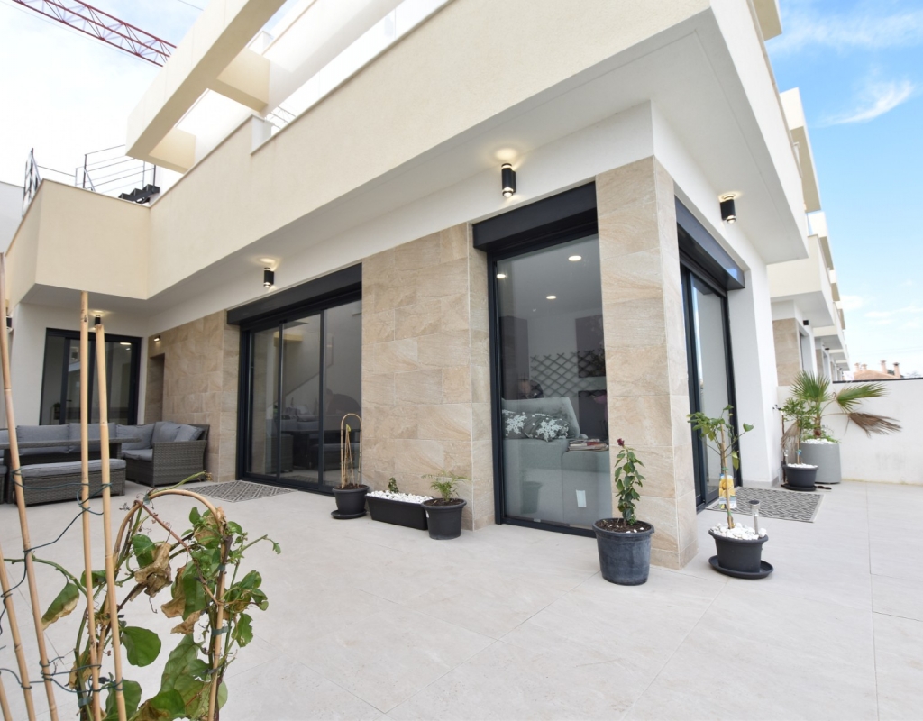 This modern detached villa, completed in 2025, is located in the well-established residential area of La Herrada, Los Montesinos. The property offers contemporary design, comfort, and a highly desirable location on the Costa Blanca. Upon arrival, the villa impresses with its clean architectural lines, private swimming pool, and off-road parking, providing both privacy and convenience. Inside, the home features a bright and spacious open-plan living area combining lounge, dining space, and kitchen, creating an inviting environment suitable for both everyday living and entertaining. A guest cloakroom is also located on this level. The master bedroom is situated on the ground floor and benefits from walk-through wardrobes and an en-suite shower room, making this layout ideal for those seeking main living accommodation on one level. Upstairs, there are two double bedrooms, both with built-in wardrobes and excellent natural light, along with a modern family bathroom. A generous terrace is accessible from this floor, offering additional outdoor space. From the terrace, external stairs lead up to the private rooftop solarium. This area provides open views across the surrounding countryside and both salt lakes, offering an ideal setting for sunbathing, relaxing, or outdoor dining. The villa is sold with most of the furniture included and is fully air conditioned throughout, allowing immediate enjoyment. The location is particularly convenient, with a local supermarket, bars, and restaurants within a five-minute walk. The beaches of Guardamar del Segura and Torrevieja are approximately fifteen minutes away by car, while Vistabella Golf is just a ten-minute drive.