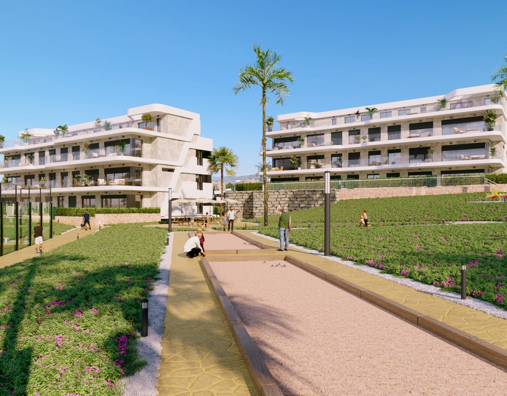 The spacious layouts include two or three bedrooms and two bathrooms, providing plenty of space for relaxation and privacy. A terrace offers additional outdoor space where you can unwind and enjoy the views. While there is no private pool or garage included, the community amenities more than compensate, providing a lifestyle that blends leisure with convenience.