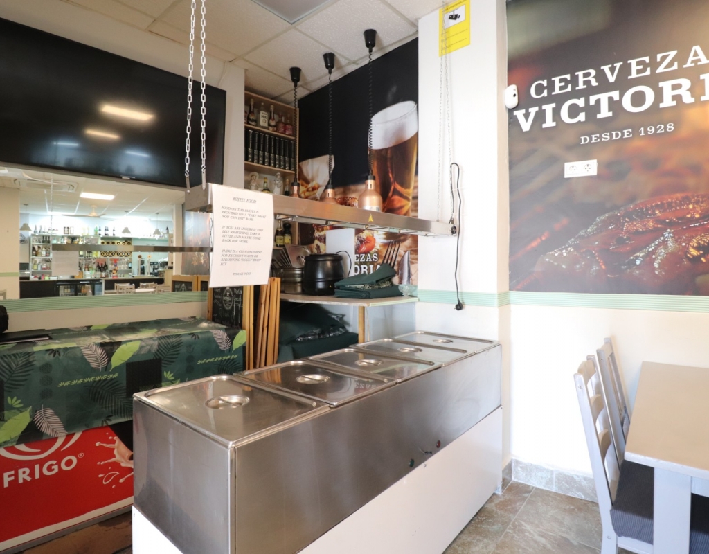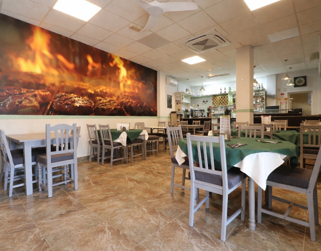 This Bar/Restaurant, in the heart of Catral, occupies a lovely location opposite a green area with mature trees, just set back off the main road and a few minutes drive into the heart of the town. This is a good established business with returning clientele. There is a spacious covered in terrace offering 35 covers. The inside of some 98m2 is tastefully decorated with 32 covers, benefitting from a bar and self service area with air conditioning having been newly installed in 2025. There are 2 toilets and the kitchen is well equipped with a store and work area. Fantastic business already well established.