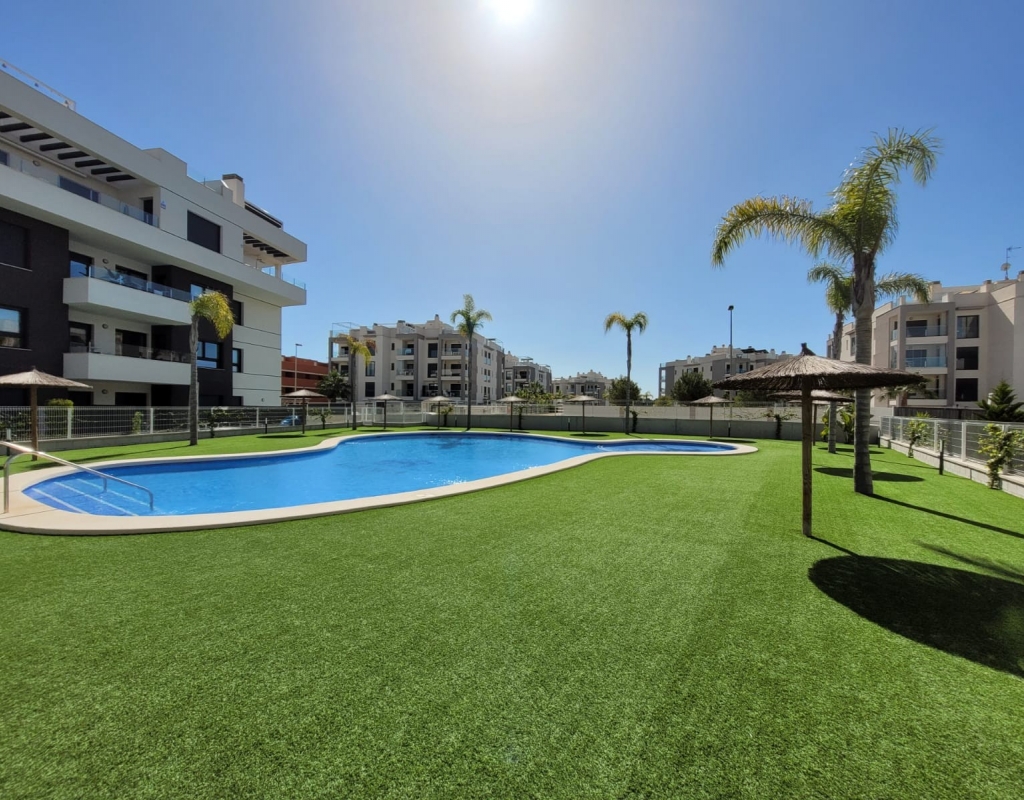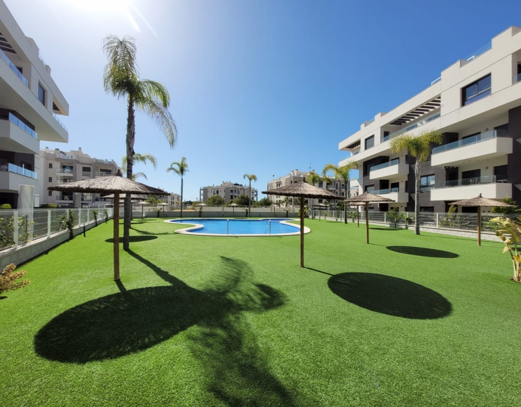 What we offer here is comfortable and well-equipped accommodation, ideal for a relaxing holiday or permanent residence. This property offers all the amenities you need for a pleasant holiday. With two toilets and a well-equipped kitchen, equipped with a fridge/freezer, microwave, oven, dishwasher, and coffee maker, preparing meals becomes a pleasure. The kitchen is perfect for both simple snacks and elaborate dinners. The property is sold fully furnished. The balcony offers a great place to relax and enjoy the fresh air, while you have access to a shared swimming pool where you can cool off and soak up the sun. The complex also features a communal garden and an elevator, making this second-floor apartment easily accessible for everyone. Located just 5 km from the beach, this property offers an excellent base for exploring the surrounding natural beauty. The proximity of various amenities makes it even easier to meet all your needs. The apartment is just a few hundred meters from a large, beautiful nature reserve where you can also enjoy wonderful walks. You'll also find a beautiful golf course nearby in Villamartin, and the large Zenia Boulevard shopping center is just a 5-minute drive away. The west-facing position allows you to enjoy beautiful sunsets, perfect for a romantic evening or simply relaxing after a busy day. Contact us for more information!