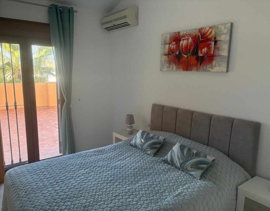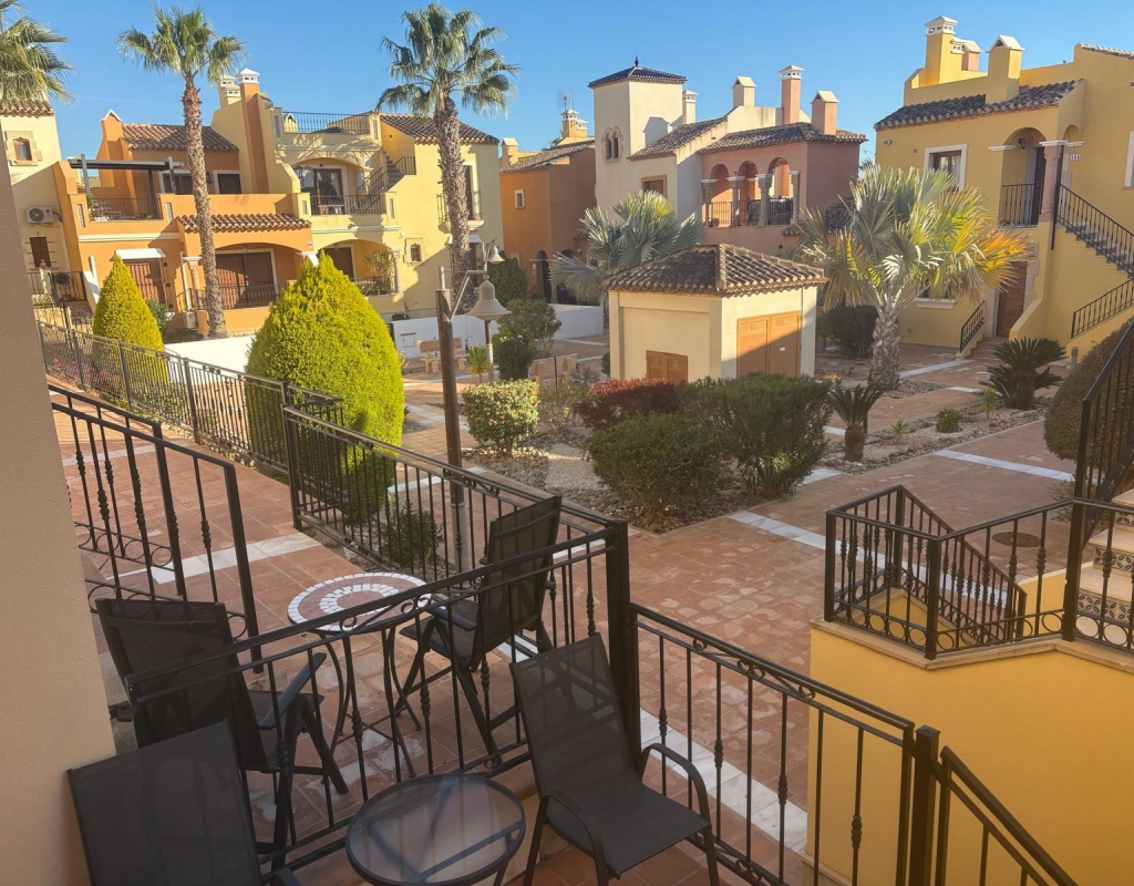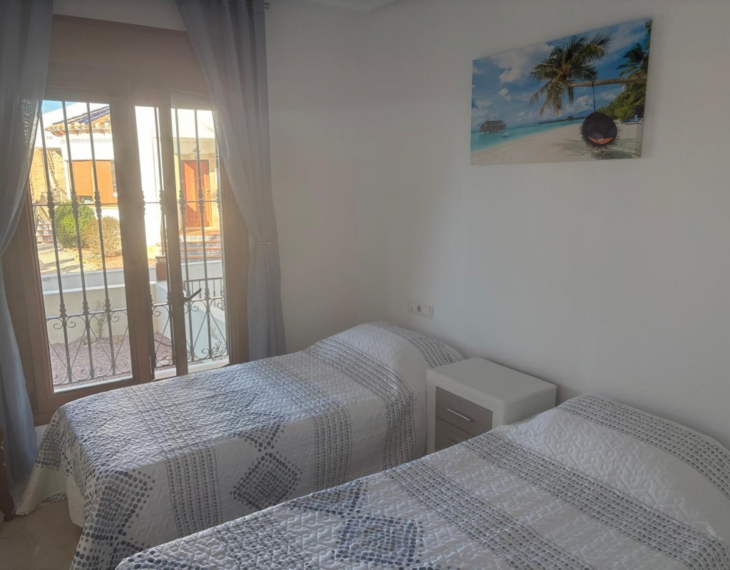 For sale is a charming resale townhouse set within the sought-after La Finca Golf, in the peaceful area of Algorfa. This property offers a versatile, and comfortable living space and is ideal for both holidays and year-round living. Inside, you will find three spacious bedrooms, two of which are located on the ground floor, a family bathroom and an en-suite shower room.