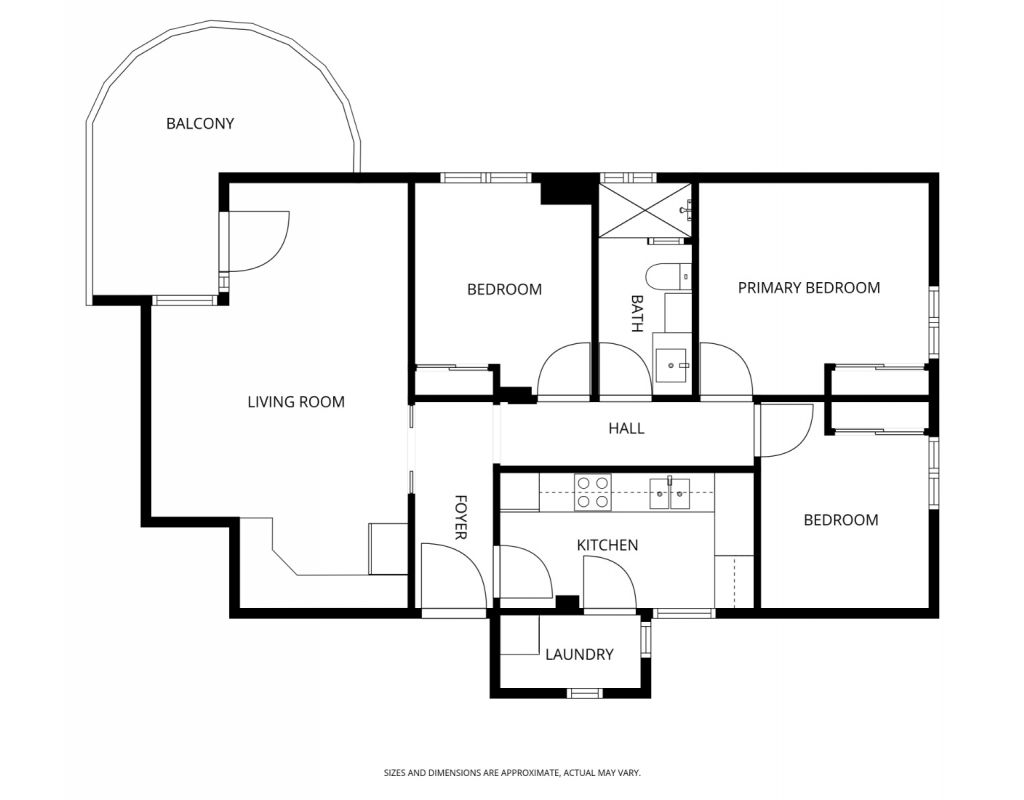 3 bright bedroomsIndependent kitchen with laundry areaFull bathroomLiving‑dining room with direct access to the balcony
