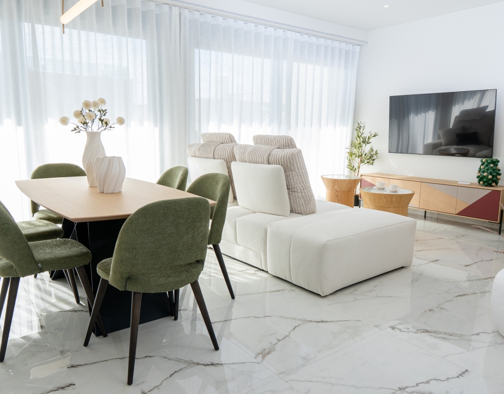 Each property boasts three spacious bedrooms and three well-appointed bathrooms, ensuring ample space for families or guests. The interiors are adorned with high-quality porcelain stoneware flooring, providing a sleek and contemporary aesthetic. The built-in wardrobes offer convenient storage solutions, enhancing the living experience.