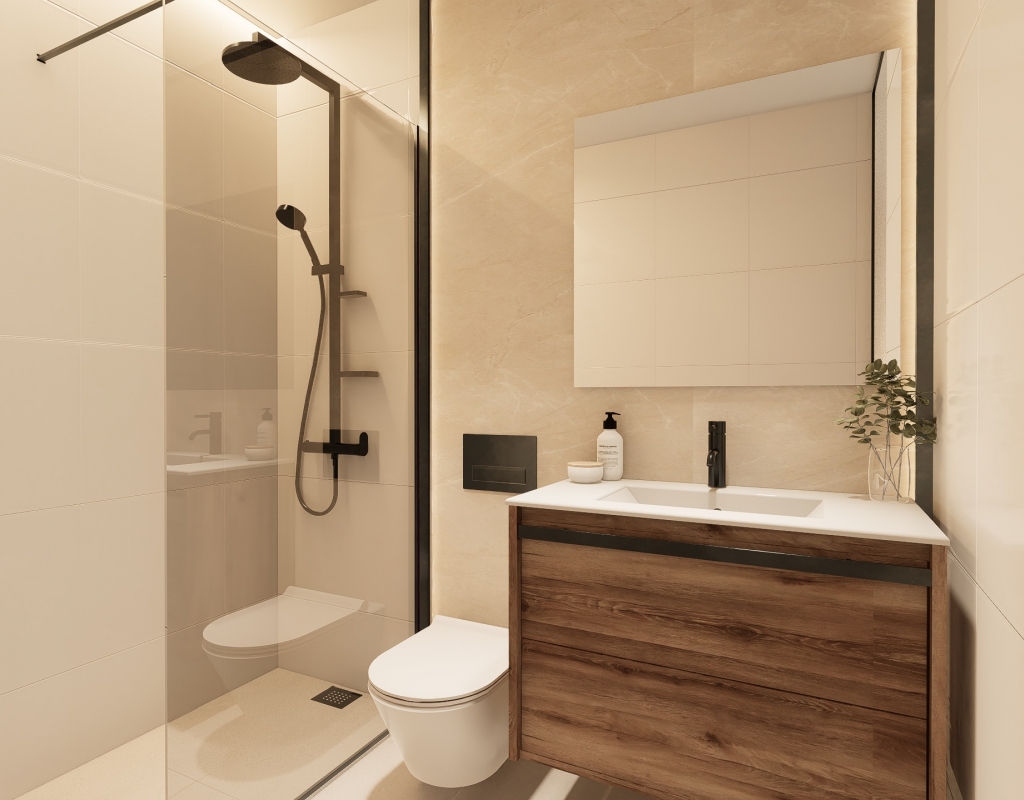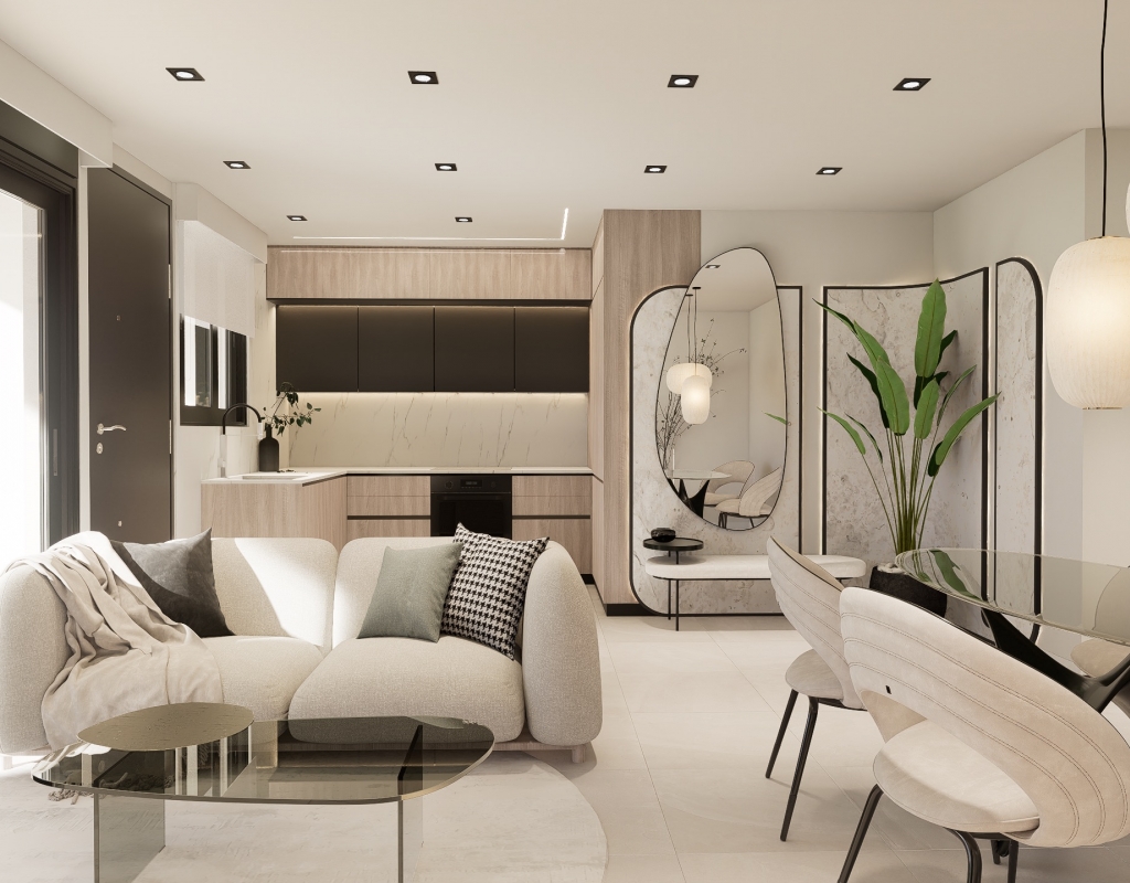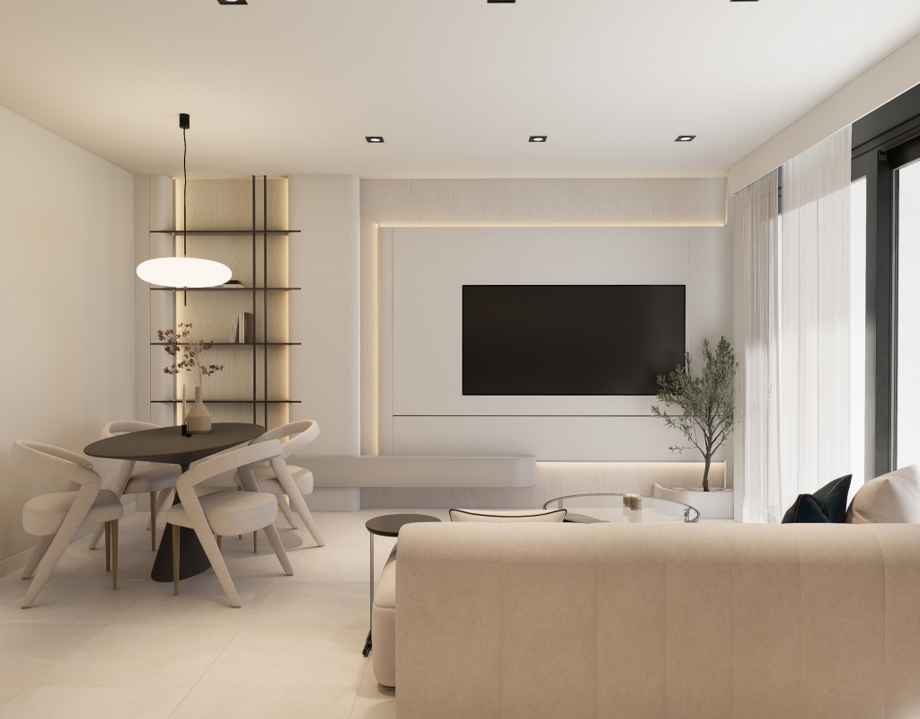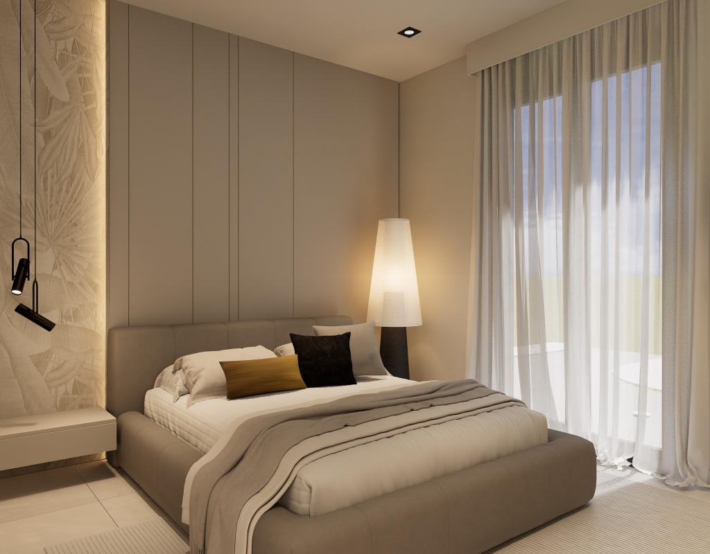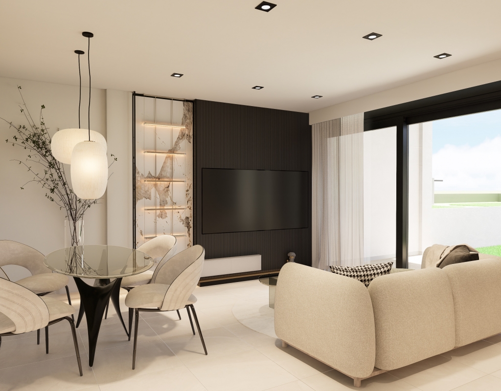 The exteriors of these bungalows are designed to maximize enjoyment of the Mediterranean climate. Each home features a private garden, ideal for creating a personal green space or enjoying outdoor family moments. Additionally, the terraces offer a perfect place to relax, sunbathe, or enjoy outdoor dining. The proximity to the sea, just 1.7 km away, adds an extra allure, allowing residents to enjoy coastal walks and water activities at any time.