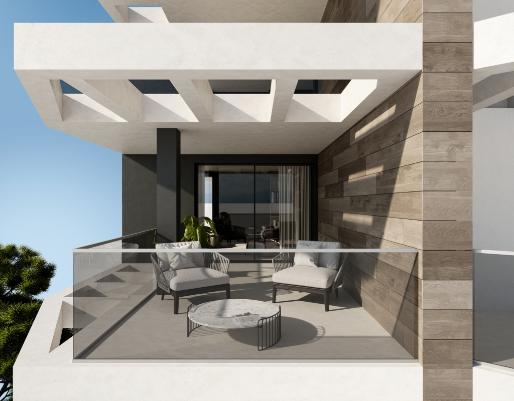The exteriors of this residential complex in Calpe are designed to maximize enjoyment of the natural surroundings and sea views. Each apartment and penthouse features a private terrace, ideal for relaxing and enjoying the Mediterranean climate. The terraces are prepared for pergola installation, offering additional shade and comfort. The proximity to the sea, just 200 meters, allows for morning or evening walks along the beach. Additionally, the homes are equipped with charging points for electric cars, reflecting a commitment to sustainability and the environment. The ceramic and porcelain stoneware floors on the terraces ensure durability and an elegant finish, complementing the modern design of the properties.