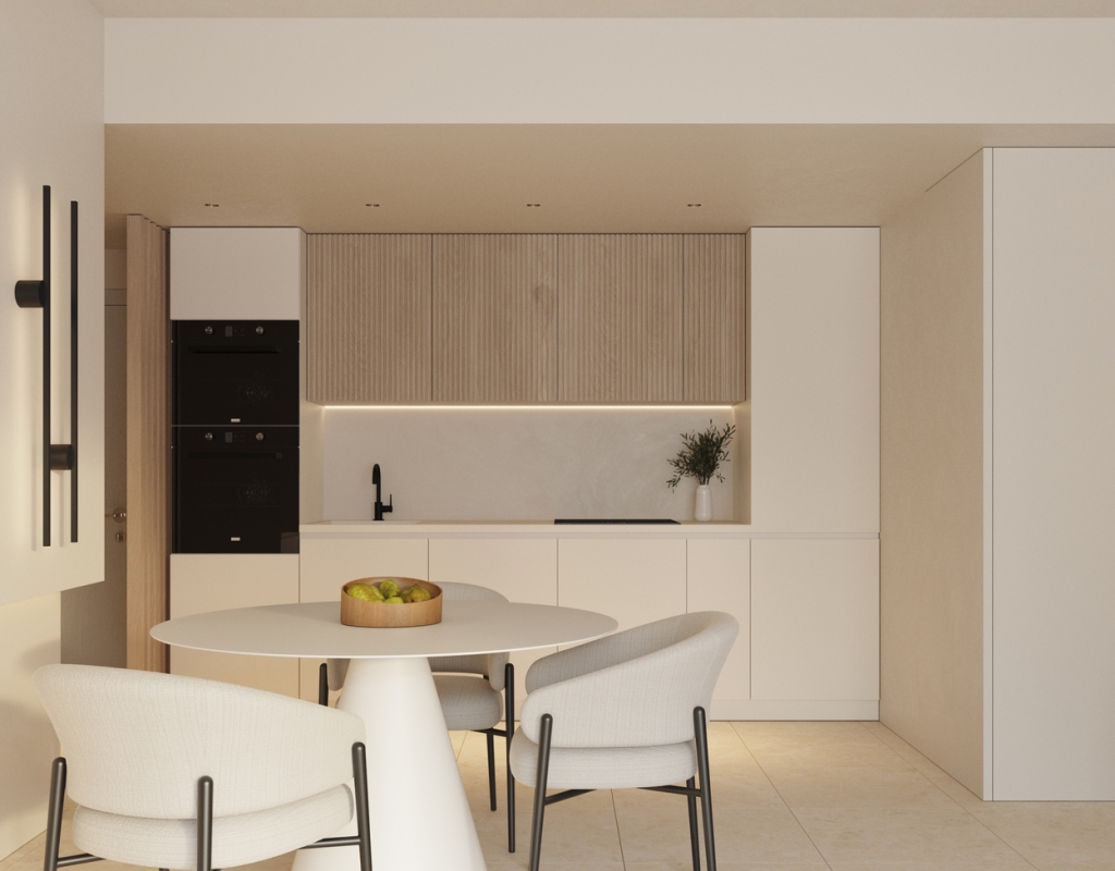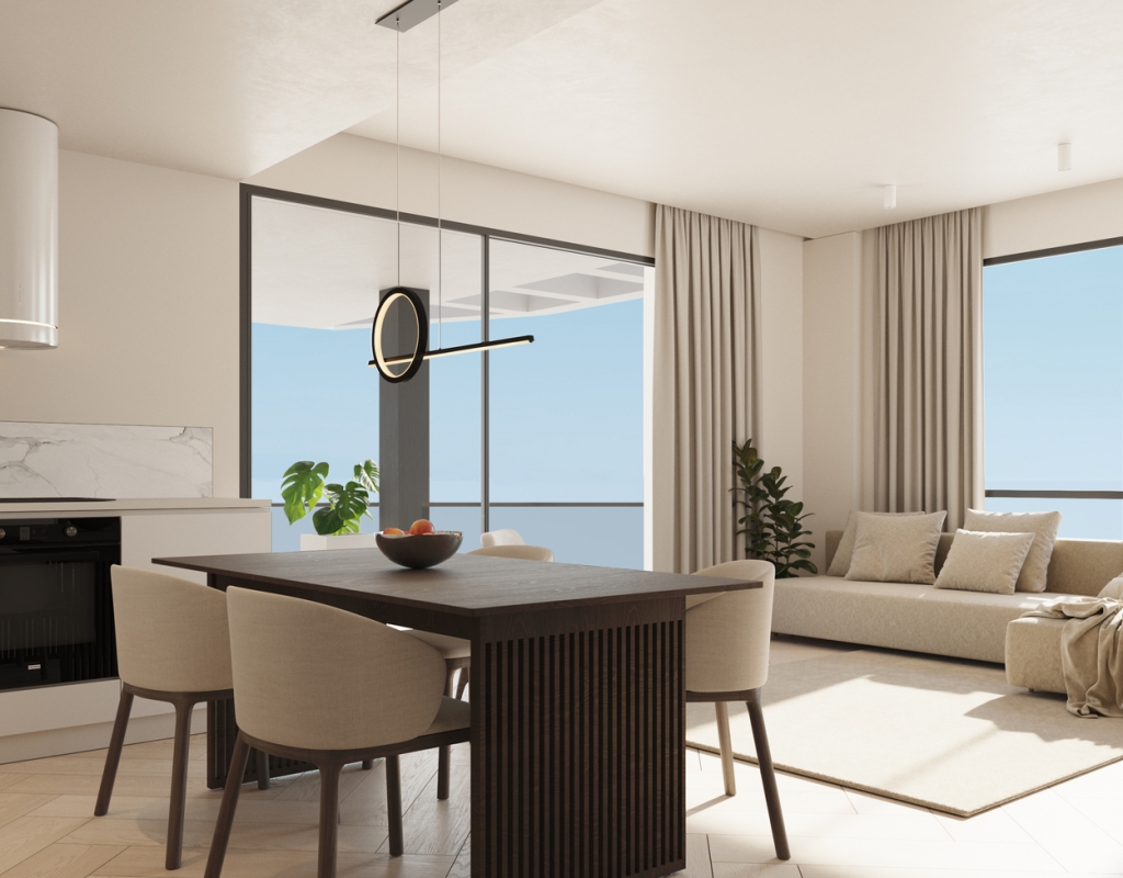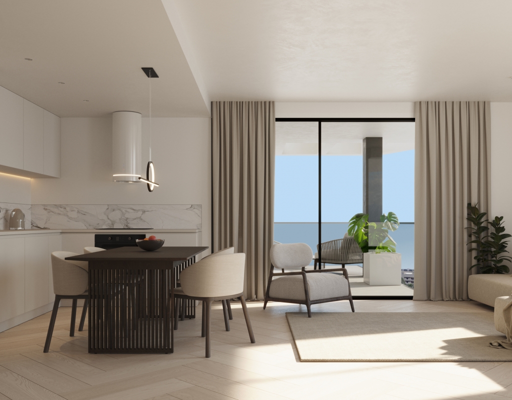 The interior of the homes in this residential complex in Calpe is designed to offer maximum comfort and functionality. The apartments and penthouses are available in 2 and 3-bedroom configurations, all with 2 bathrooms, providing adequate space for families or couples. The homes feature air conditioning to maintain a pleasant temperature throughout the year. Integrated home automation allows efficient control of home functions, enhancing comfort and security. High-quality appliances are included, ensuring each kitchen is ready for use from day one. Built-in wardrobes offer practical and efficient storage, while electric shutters and a video intercom add an additional level of security and comfort.