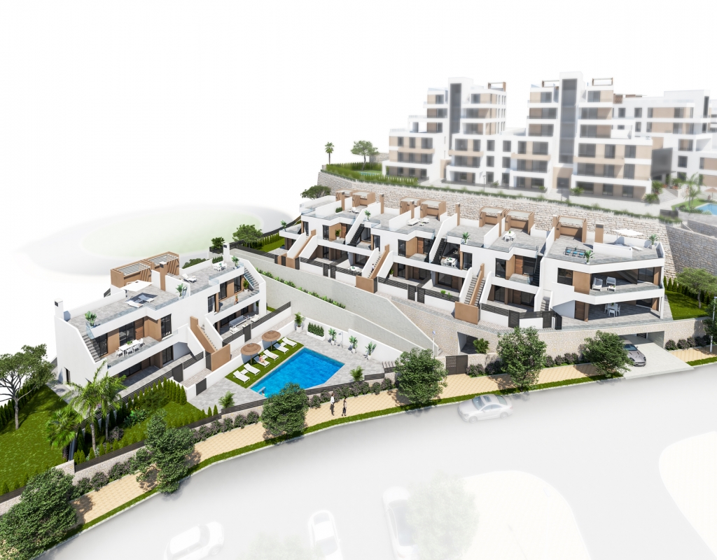 The bungalows feature outdoor spaces designed to maximize enjoyment of the Mediterranean climate. Each unit includes a private garden, ideal for creating a personal outdoor oasis. Additionally, the terraces provide extra space for relaxation or entertaining guests. For those seeking panoramic views, the solarium is a perfect spot to enjoy the surroundings. The inclusion of a garage ensures that parking is never an issue, offering convenience and security.