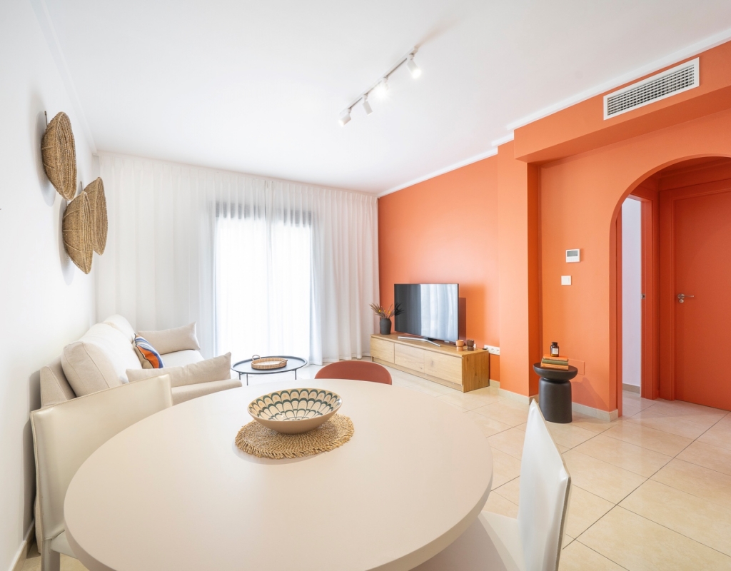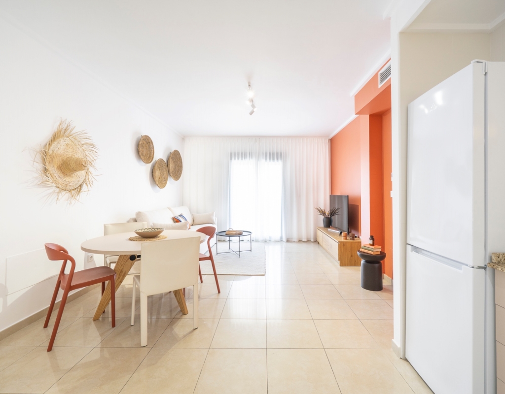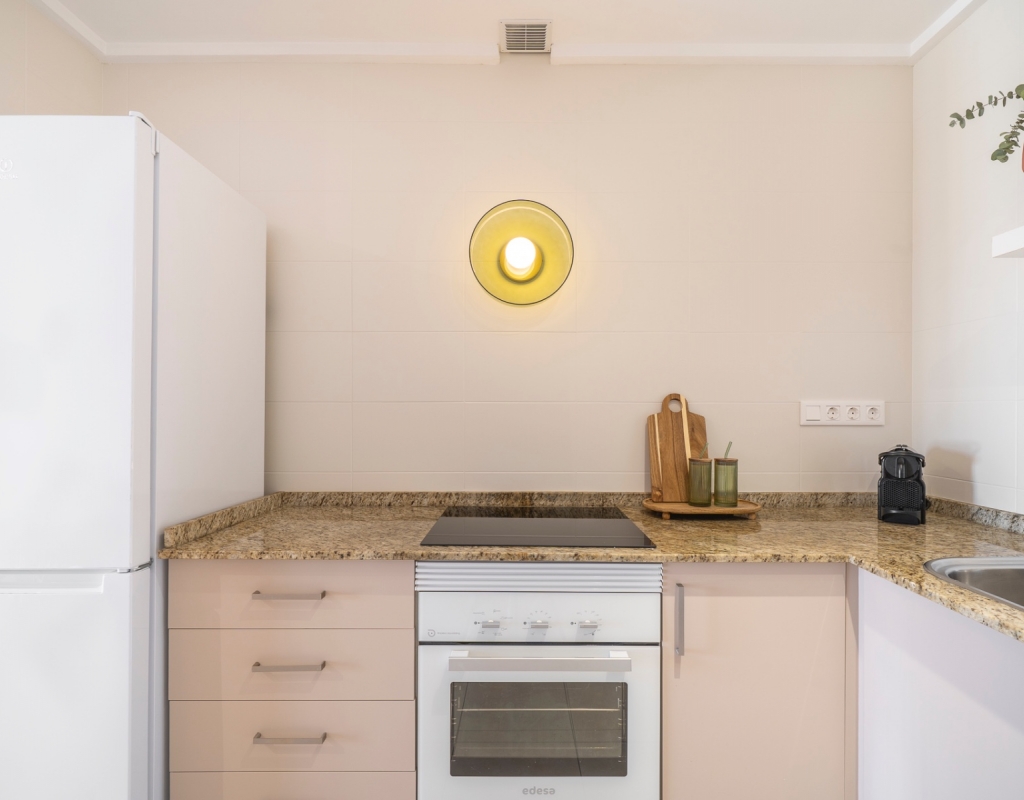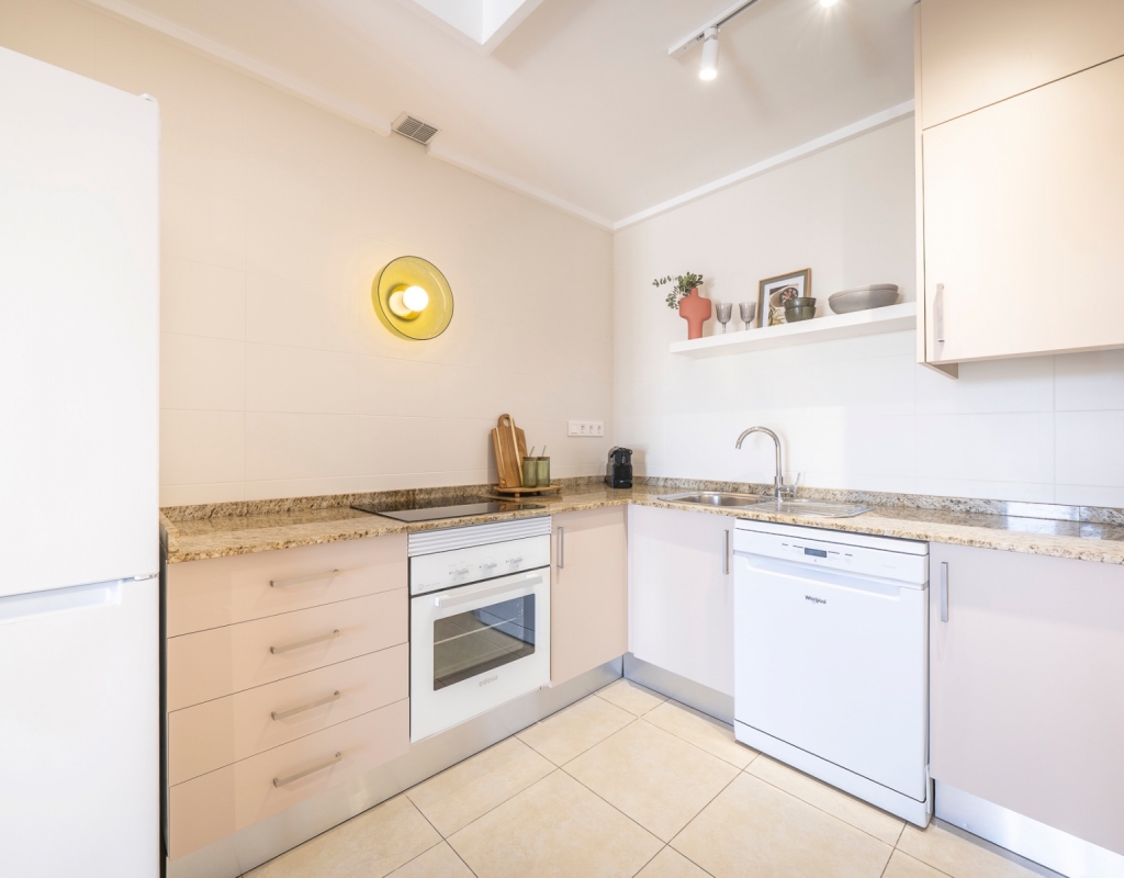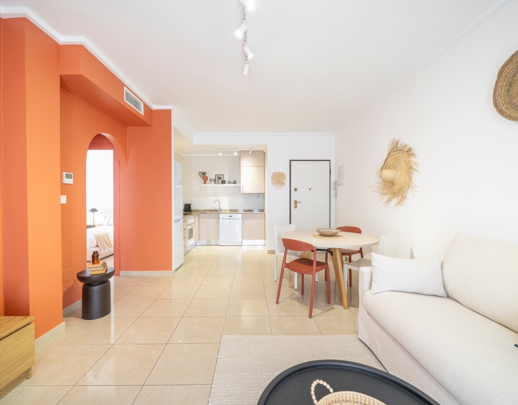 Charming top floor apartment located in the popular Albamar residential complex. The property has a built area of 79.27 m² and consists of two double bedrooms with fitted wardrobes and one family bathroom with shower. It also features a bright open-plan living and dining area with kitchen. From the living room there is direct access to a spacious west-facing balcony, perfect for enjoying the afternoon sun.