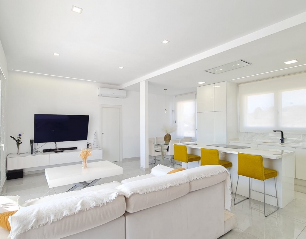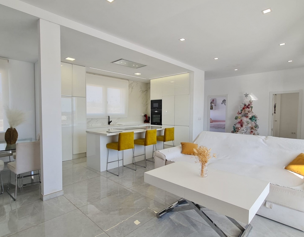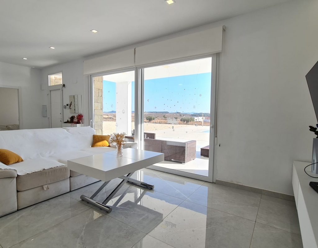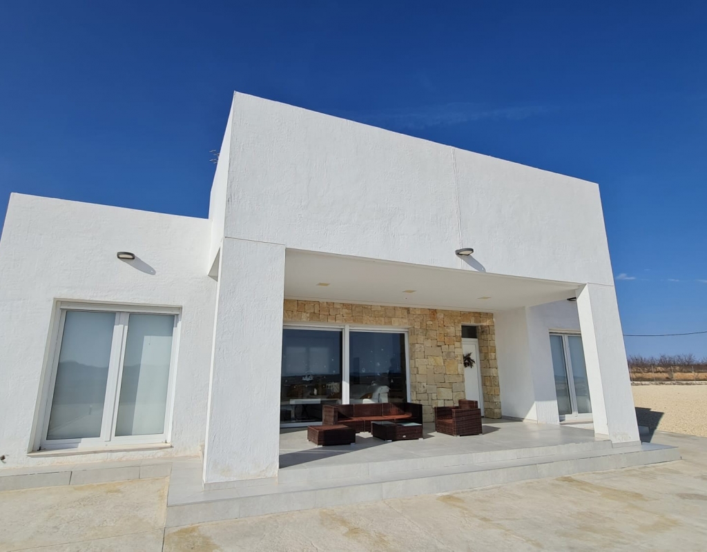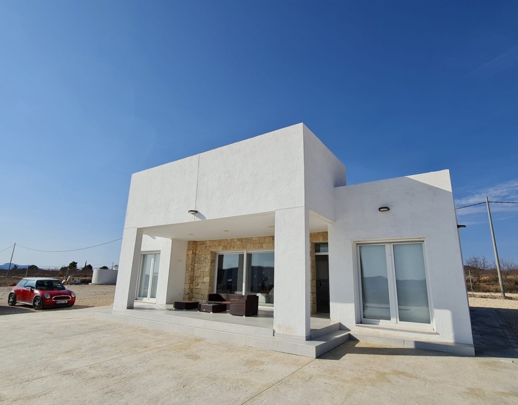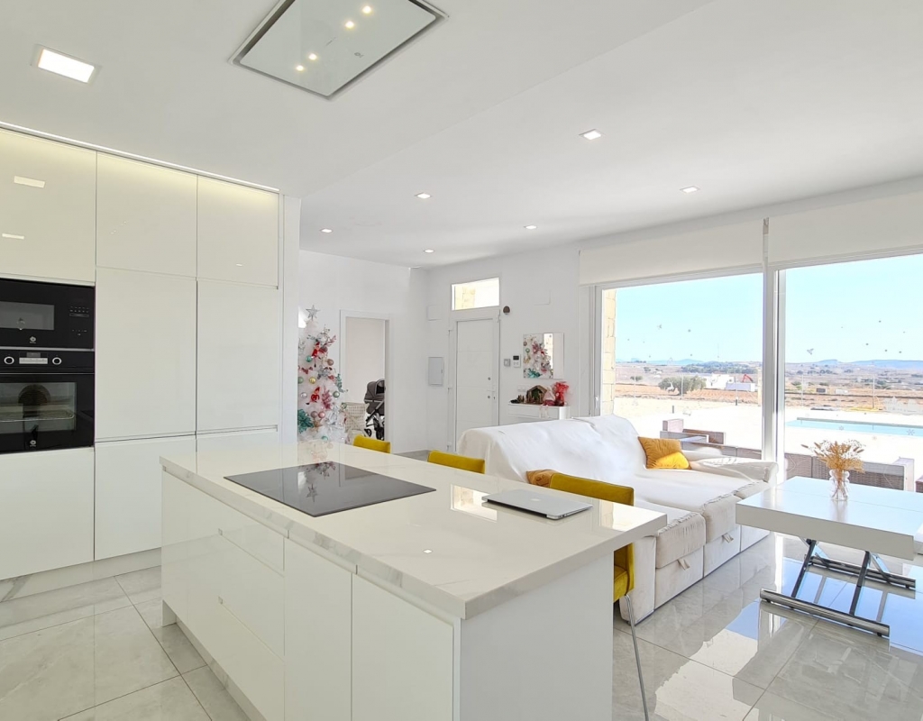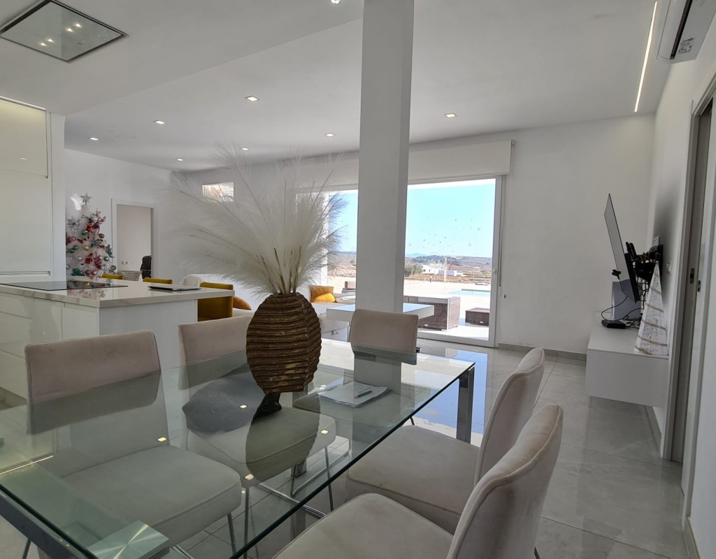 This beautifully designed home offers a perfect blend of modern style and practical living. Located in a peaceful area just 4 minutes to the vibrant town of Pinoso, it provides easy access to all local amenities while enjoying stunning views of surrounding vineyards and orchards.With an open and bright structure, the home features a spacious open-plan living room and kitchen, ideal for sharing special moments. The kitchen, equipped with a modern breakfast bar, seamlessly integrates with the living room, creating a fluid and welcoming atmosphere. Large windows allow natural light to flood every corner of the house, providing a sense of spaciousness and well-being.The property offers three comfortable bedrooms with fitted wardrobes, one of them with an open dressing room integrated into the bedroom and two modern bathrooms (one is ensuite), perfect for the whole family or to host friends and loved ones. Outdoor living is just as impressive, with a large covered porch and a spacious patio surrounding a private swimming pool inviting you to relax and enjoy the weather. The fully fenced property, equipped with electric gates, ensures security and privacy while still being part of a friendly neighborhood.If you're looking for a retreat from the hustle and bustle without being too far from the town's amenities, this is the perfect house. A unique gem that could be yours!Contact us today to learn more or schedule a viewing! The property is vacant and offers immediate access. The seller is in the process of registering the property and swimming pool in the Land Registry, and the latest update is that this should be done by the end of April 2026. We have a large portfolio of properties in the Costa Blanca and Costa Calida areas, specialising in country properties, villas, fincas, building plots and design and build options in the Alicante and Murcia regions with a particular emphasis on Elda, Monovar, Pinoso, Sax, Villena, Aspe, Fortuna, Albacete and many more surrounding areas. We have been established since 2004 and have decades of experience between the team which we bring to bear to help you find and secure your new dream home. We help you every step of the way to make sure your purchase in Spain is safe and hassle free. We are not here to sell you a property, we are here to help you realise your dream and find what is right for you. With us you are in the safest hands. Contact us now to have a no obligation chat about how you too can realise your dreams.