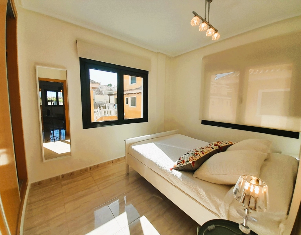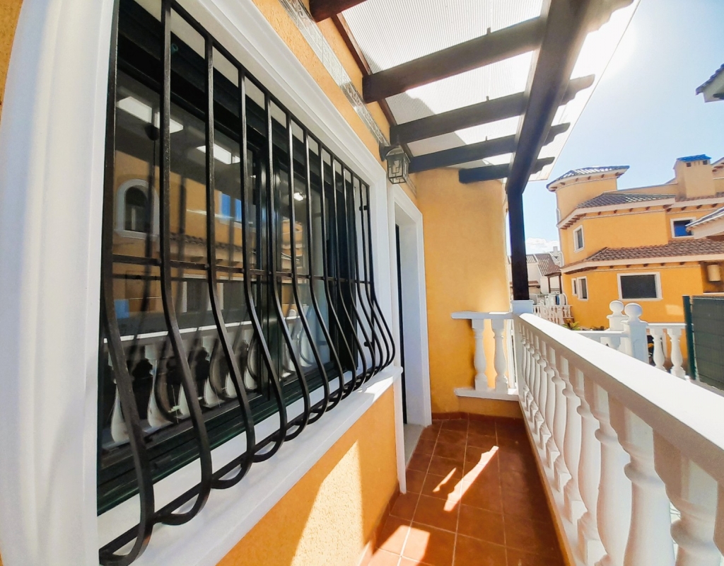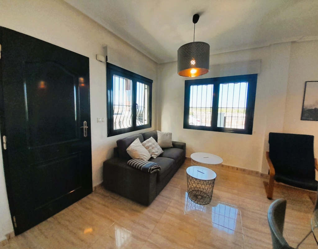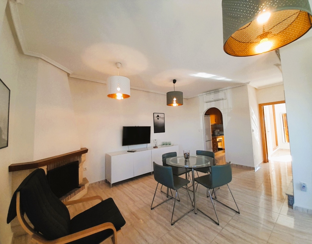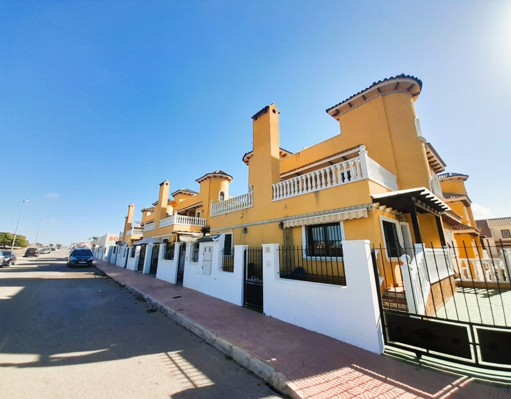 Discover this charming semi-detached villa in Ciudad Quesada, a jewel distributed over two floors plus basement with separate entrance. The property has a large and bright living room, adorned with a French fireplace in use, ideal for those moments of relaxation. The kitchen is independent and has direct access to a utility room, facilitating daily tasks. On the ground floor, you will find a shower room and the master bedroom, offering comfort and functionality. On the first floor, there is a children's bedroom with a full bathroom, providing privacy and space for the little ones. The basement, designed as a flat, includes a kitchen-living-dining room, sleeping area and toilet with shower, perfect for guests or as additional space for the family. The outdoor area is not far behind: a cosy porch, a front plot with parking space and a spacious backyard await you. Furthermore, the property is connected to a communal corridor that leads to the swimming pool of the urbanisation, ideal to enjoy the good weather. This villa offers the possibility of accessing the basement from inside the house or from the back garden, providing flexibility and comfort. With 190 m² built, fitted wardrobes and an excellent state of conservation, this property is a perfect option for those looking for quality of life. Facing east and west, it enjoys natural light all day long. It is sold furnished, with the elements that you can see in the photographs.Don't miss the opportunity to view this wonderful semi-detached villa in Ciudad Quesada. We are available to answer enquiries and arrange viewings, contact us today and make this house your new home!