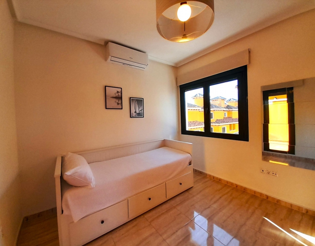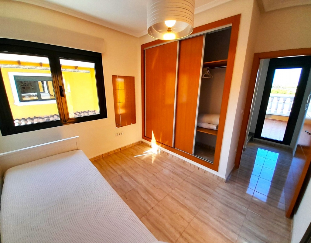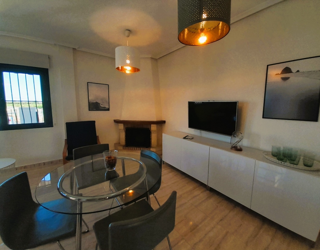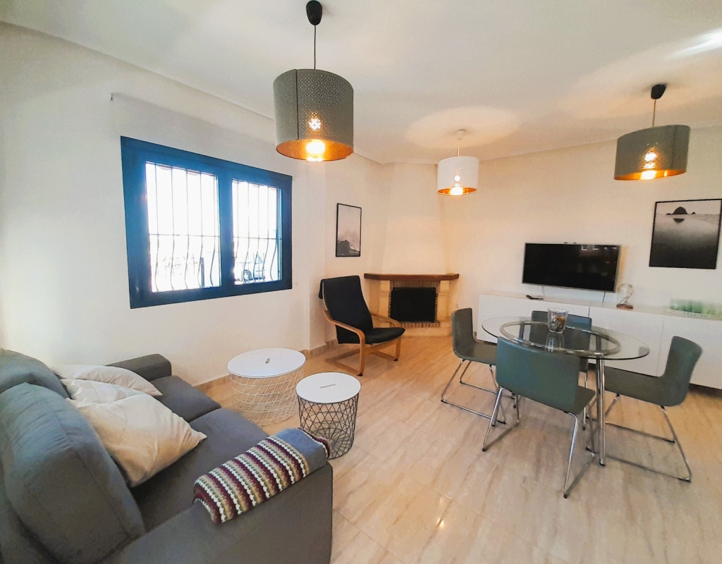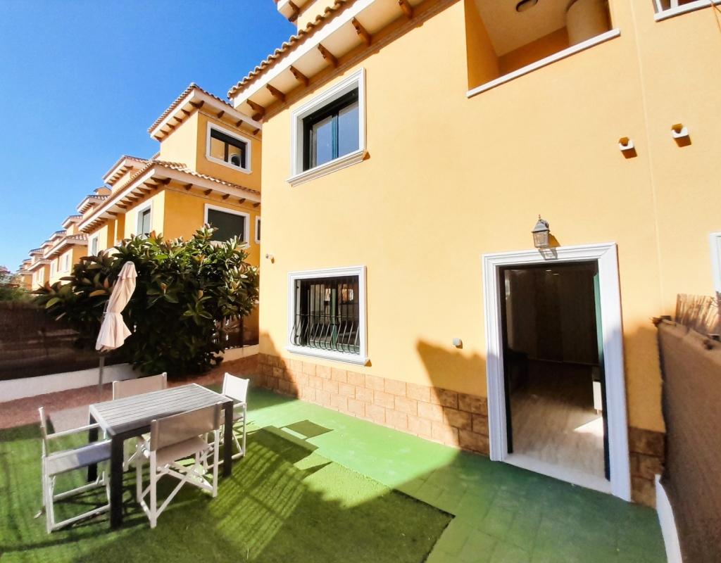 Discover this charming semi-detached villa in Ciudad Quesada, a jewel distributed over two floors plus basement with separate entrance. The property has a large and bright living room, adorned with a French fireplace in use, ideal for those moments of relaxation. The kitchen is independent and has direct access to a utility room, facilitating daily tasks. On the ground floor, you will find a shower room and the master bedroom, offering comfort and functionality. On the first floor, there is a children's bedroom with a full bathroom, providing privacy and space for the little ones. The basement, designed as a flat, includes a kitchen-living-dining room, sleeping area and toilet with shower, perfect for guests or as additional space for the family. The outdoor area is not far behind: a cosy porch, a front plot with parking space and a spacious backyard await you. Furthermore, the property is connected to a communal corridor that leads to the swimming pool of the urbanisation, ideal to enjoy the good weather. This villa offers the possibility of accessing the basement from inside the house or from the back garden, providing flexibility and comfort. With 190 m² built, fitted wardrobes and an excellent state of conservation, this property is a perfect option for those looking for quality of life. Facing east and west, it enjoys natural light all day long. It is sold furnished, with the elements that you can see in the photographs.Don't miss the opportunity to view this wonderful semi-detached villa in Ciudad Quesada. We are available to answer enquiries and arrange viewings, contact us today and make this house your new home!
