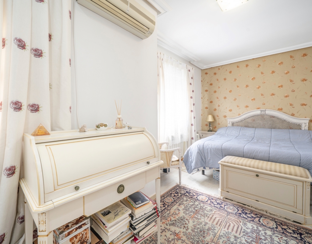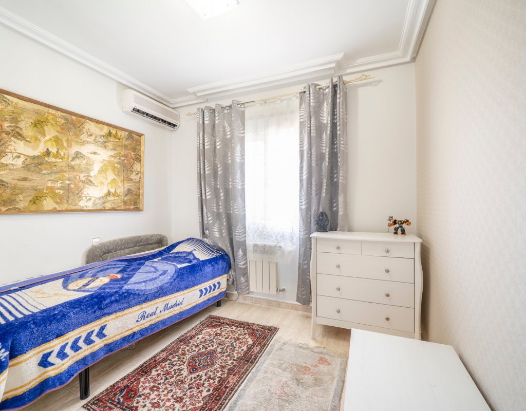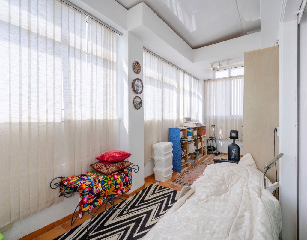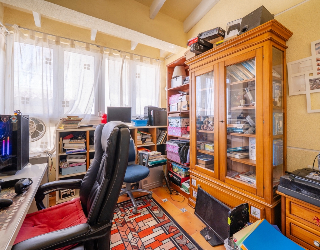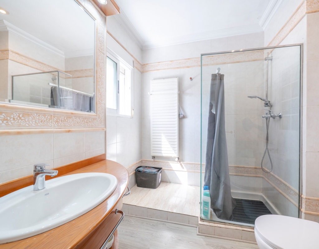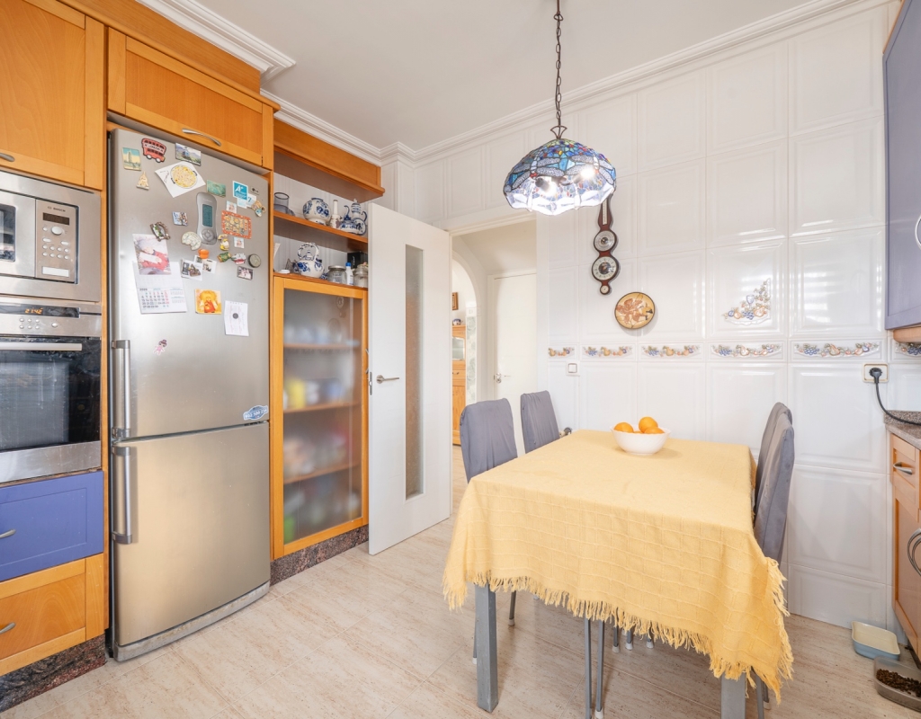 It features four bedrooms, two full bathrooms and an additional guest toilet, offering a practical layout. The kitchen is independent, providing a separate and functional space. Its southeast orientation ensures plenty of natural light throughout the day.