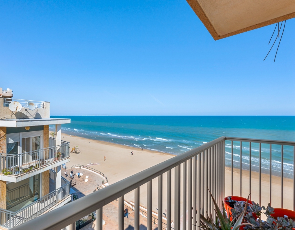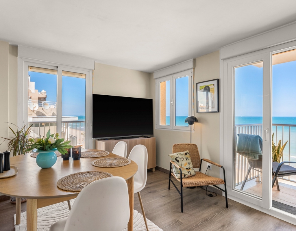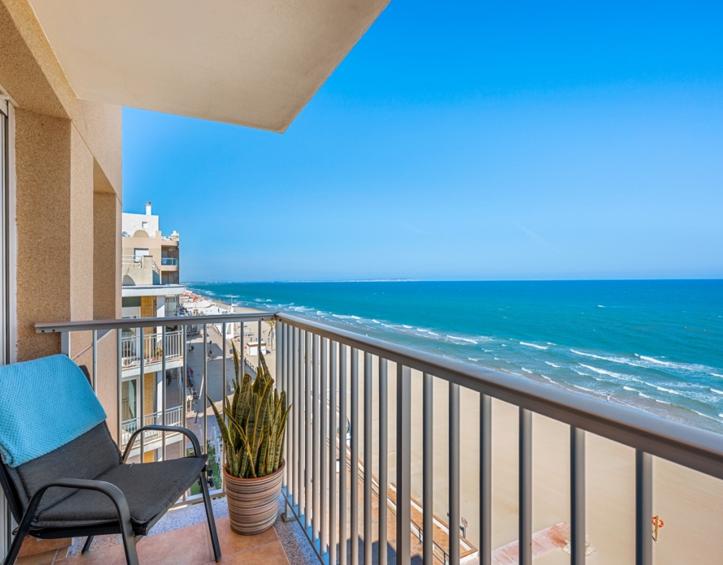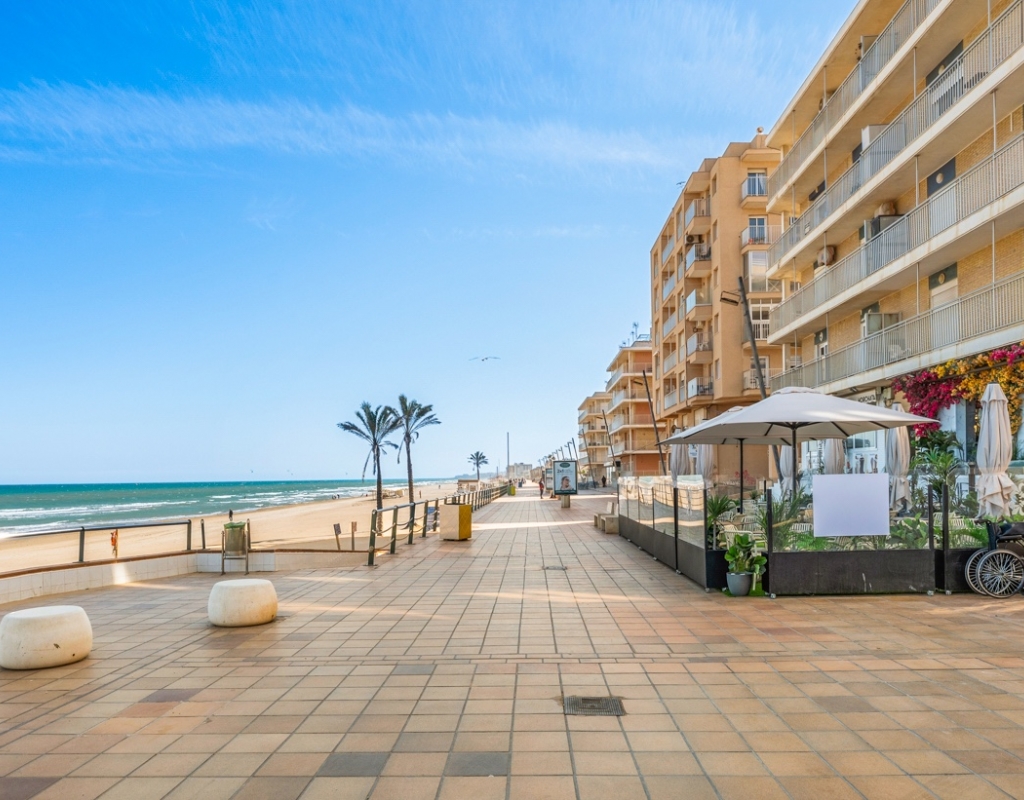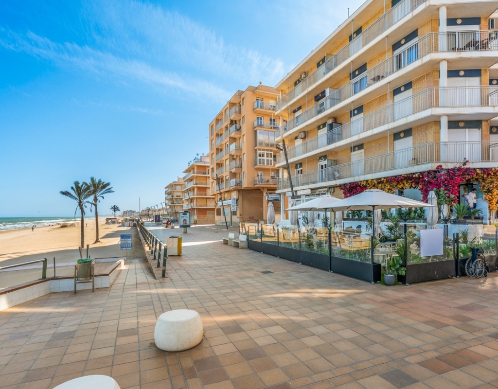 Dreaming of waking up to the sound of the waves and having the beach right on your doorstep? This stylish, fully renovated apartment is located frontline in Guardamar, with both the beach and the popular promenade just outside. Here you get a rare combination of location, quality, and views – perfect for those seeking a hassle-free home in the sun. Frontline to the sea with unobstructed viewsBalcony from the living room with panoramic horizon viewsFully renovated apartment – modern and very well maintainedSold furnished and ready to move inWell-equipped kitchen with several recent installationsSpacious bedrooms with ample wardrobe spaceWell-managed community with a large shared rooftop terrace The apartment has been thoroughly upgraded in recent years and presents as modern, bright, and welcoming – ready to move straight in. The living room features an open-plan layout connected to the kitchen and offers direct access to the balcony – perfect for enjoying your morning coffee overlooking the Mediterranean. The kitchen is practical and well-equipped, with several installations that appear as new, combining functionality with style. The property offers two good-sized bedrooms, both with generous storage, as well as a stylish bathroom. The community is well run and offers a spacious shared rooftop terrace – ideal for sunbathing, social gatherings, or simply enjoying the view. The frontline location provides immediate access to the beach and promenade, with restaurants, cafés, and amenities within walking distance. Located in attractive Guardamar, known for its long sandy beaches and pleasant atmosphere – offering the perfect balance of tranquility, nature, and convenience. A rare opportunity to secure a move-in-ready, fully renovated frontline apartment with a location and views few can match.