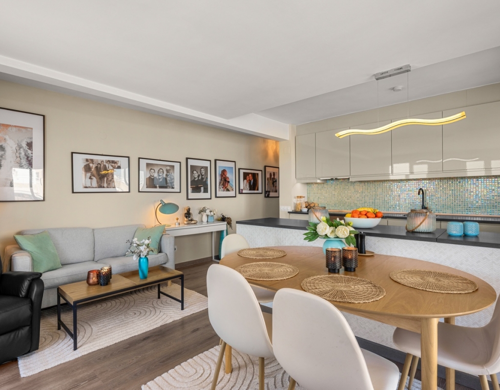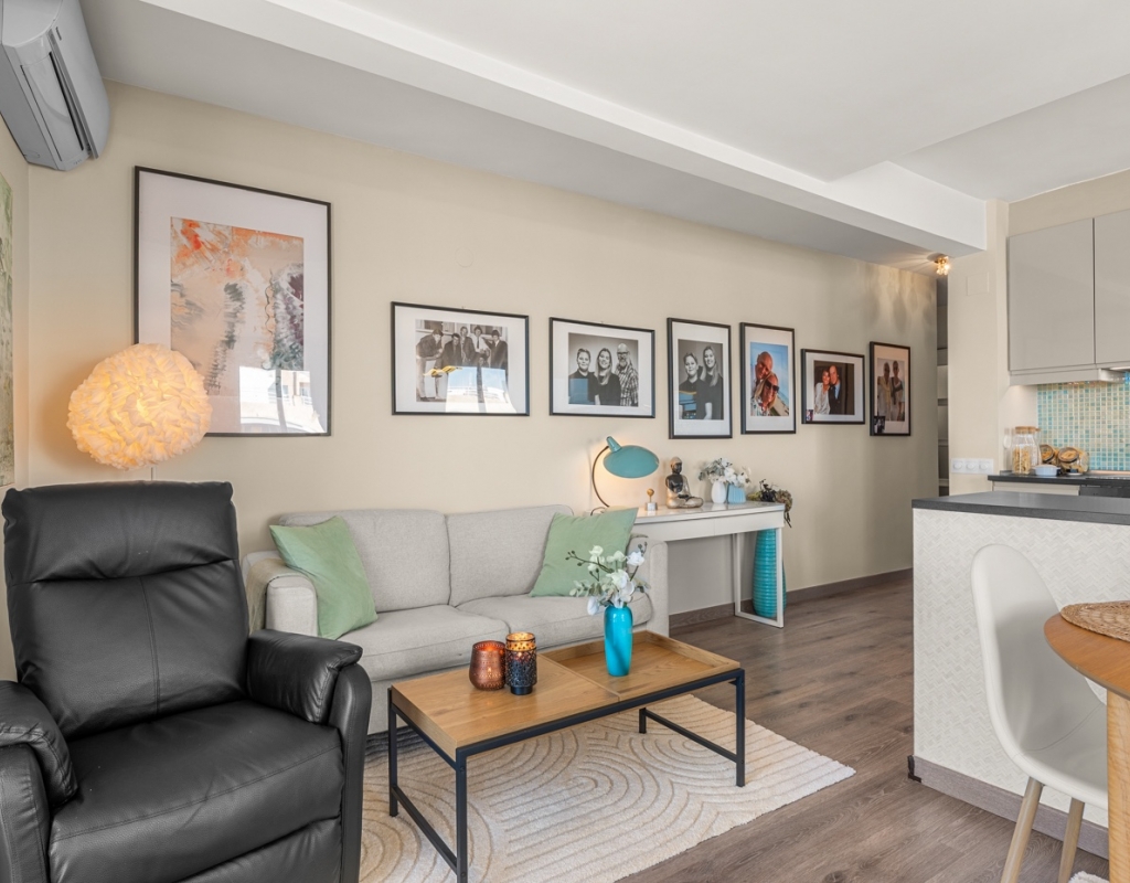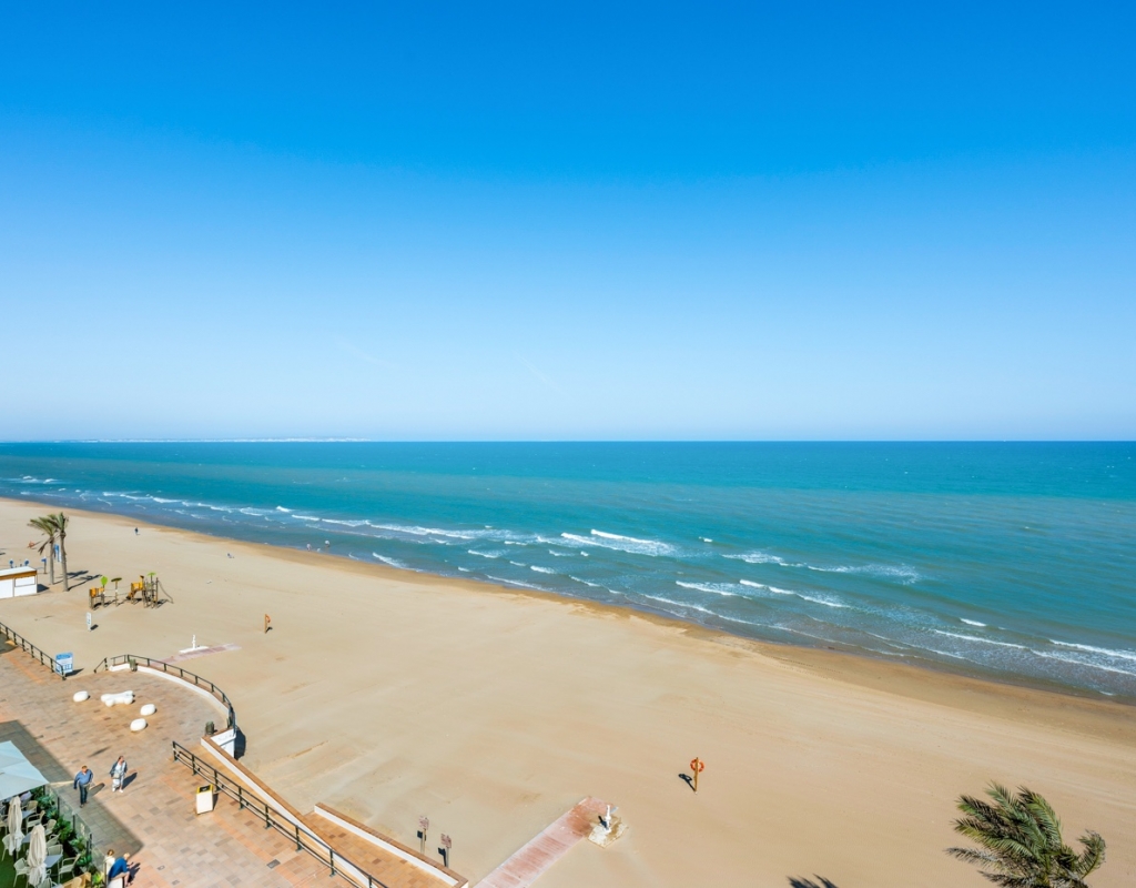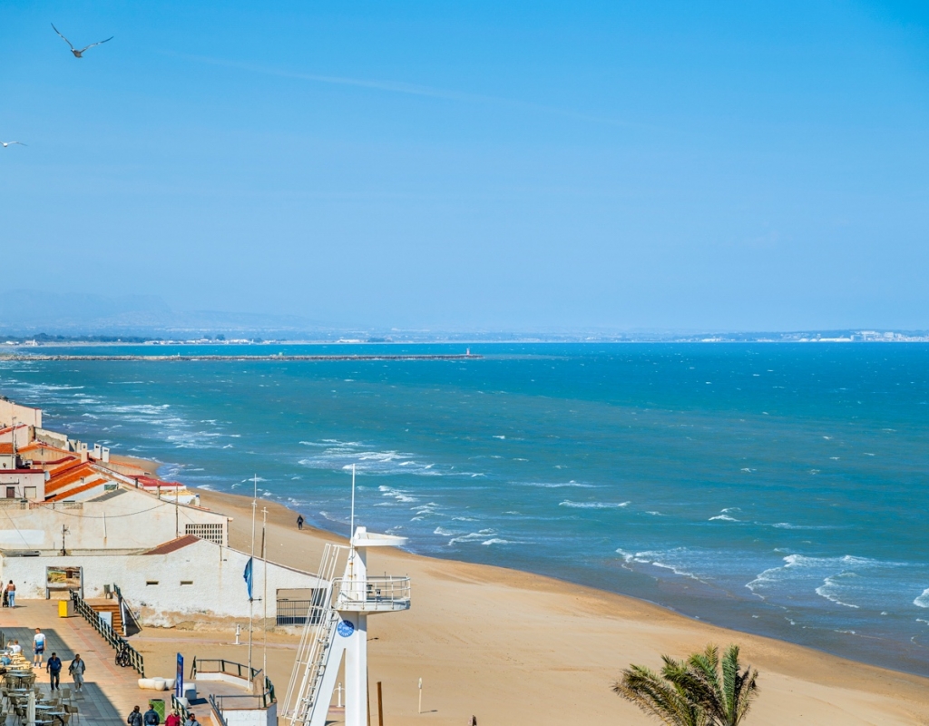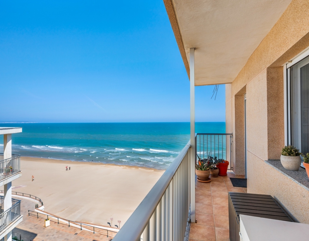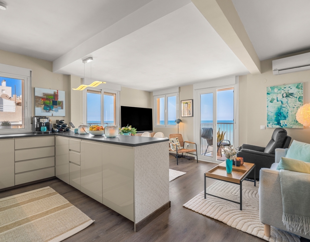 Dreaming of waking up to the sound of the waves and having the beach right on your doorstep? This stylish, fully renovated apartment is located frontline in Guardamar, with both the beach and the popular promenade just outside. Here you get a rare combination of location, quality, and views – perfect for those seeking a hassle-free home in the sun. Frontline to the sea with unobstructed viewsBalcony from the living room with panoramic horizon viewsFully renovated apartment – modern and very well maintainedSold furnished and ready to move inWell-equipped kitchen with several recent installationsSpacious bedrooms with ample wardrobe spaceWell-managed community with a large shared rooftop terrace The apartment has been thoroughly upgraded in recent years and presents as modern, bright, and welcoming – ready to move straight in. The living room features an open-plan layout connected to the kitchen and offers direct access to the balcony – perfect for enjoying your morning coffee overlooking the Mediterranean. The kitchen is practical and well-equipped, with several installations that appear as new, combining functionality with style. The property offers two good-sized bedrooms, both with generous storage, as well as a stylish bathroom. The community is well run and offers a spacious shared rooftop terrace – ideal for sunbathing, social gatherings, or simply enjoying the view. The frontline location provides immediate access to the beach and promenade, with restaurants, cafés, and amenities within walking distance. Located in attractive Guardamar, known for its long sandy beaches and pleasant atmosphere – offering the perfect balance of tranquility, nature, and convenience. A rare opportunity to secure a move-in-ready, fully renovated frontline apartment with a location and views few can match.