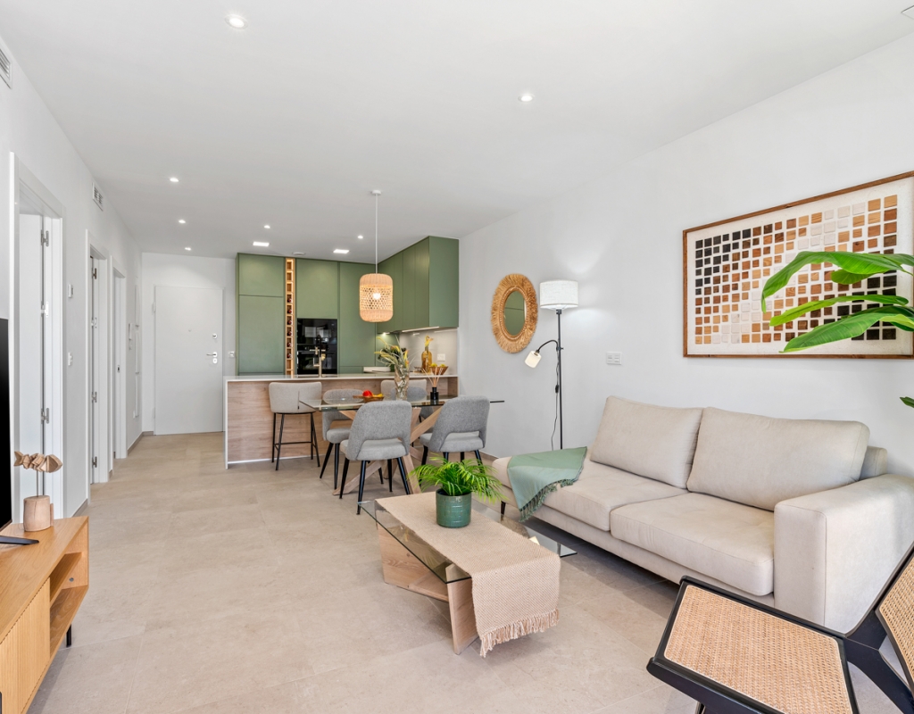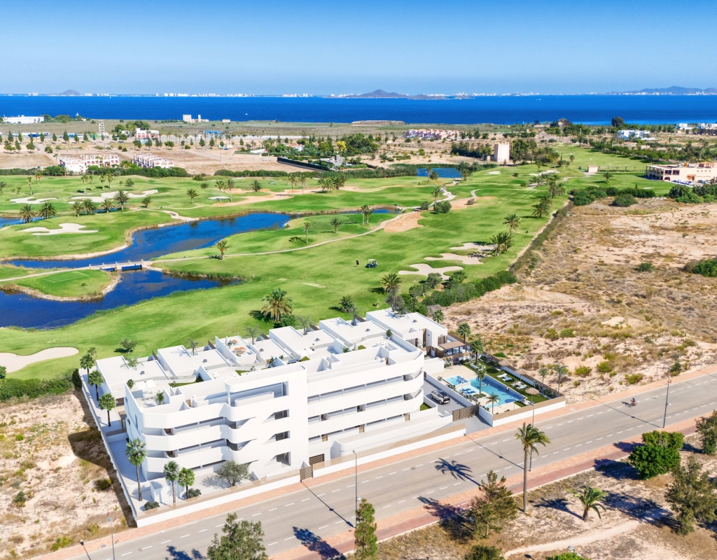 Located in the charming town of Los Alcázares, this exclusive residential complex offers a selection of 16 properties including apartments, ground floors, and penthouses. Each residence is designed to maximize sea views, providing a serene and relaxing living environment. The proximity to the sea, just 1 km away, allows for enjoying the sea breeze and beach walks at any time. Additionally, golf enthusiasts will find a course just 500 meters away, while the nearest airport is 45 km away, facilitating international travel. This location is ideal for those seeking a balance between tranquility and accessibility to services and leisure activities.