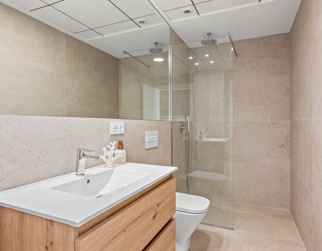 The interiors of the residences are designed with a focus on comfort and functionality. The apartments, ground floors, and penthouses offer options of 2 or 3 bedrooms and 2 bathrooms, catering to different family needs. The residences are fully furnished and equipped with appliances, facilitating a hassle-free move. The porcelain tile flooring adds a touch of elegance and durability, while the built-in wardrobes optimize storage space. The air conditioning system, along with pre-installation for future upgrades, ensures a pleasant environment throughout the year.