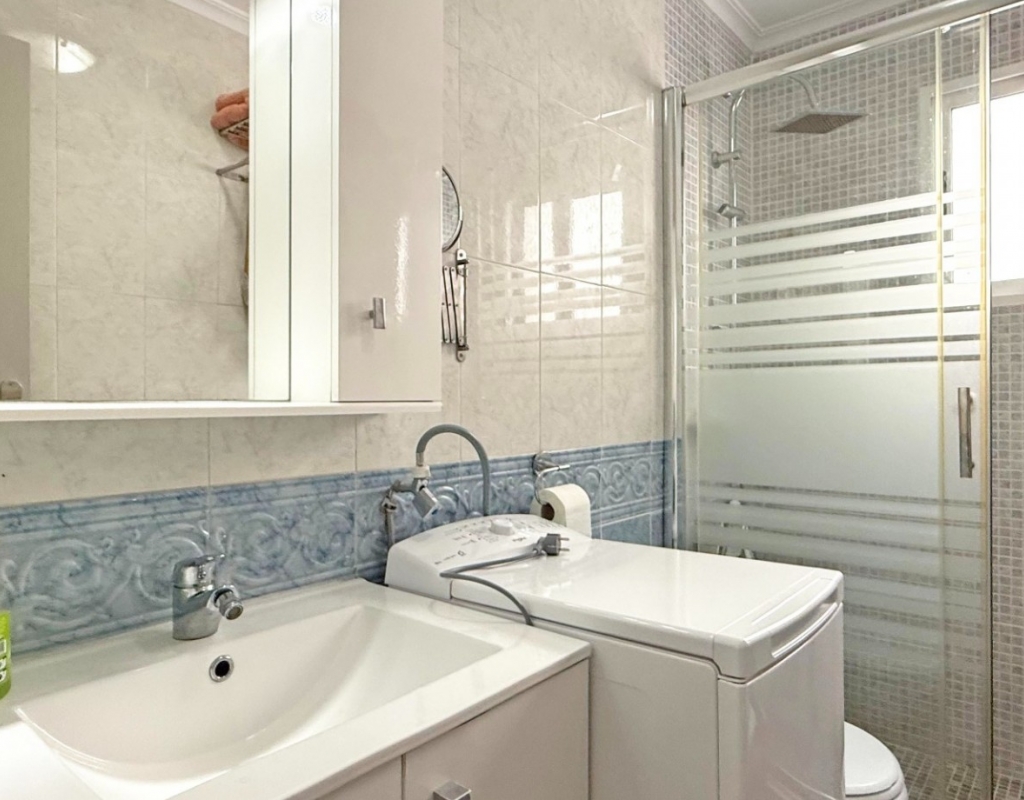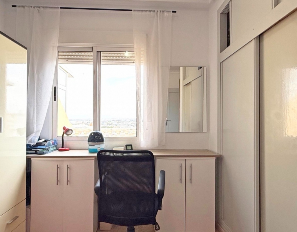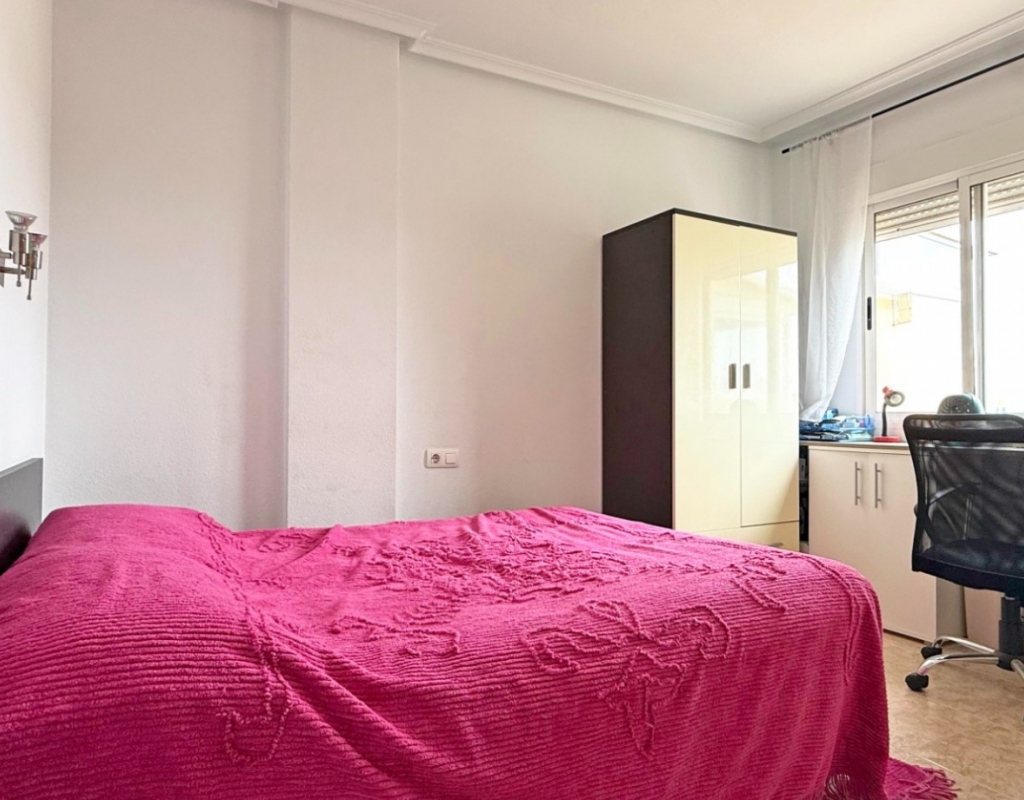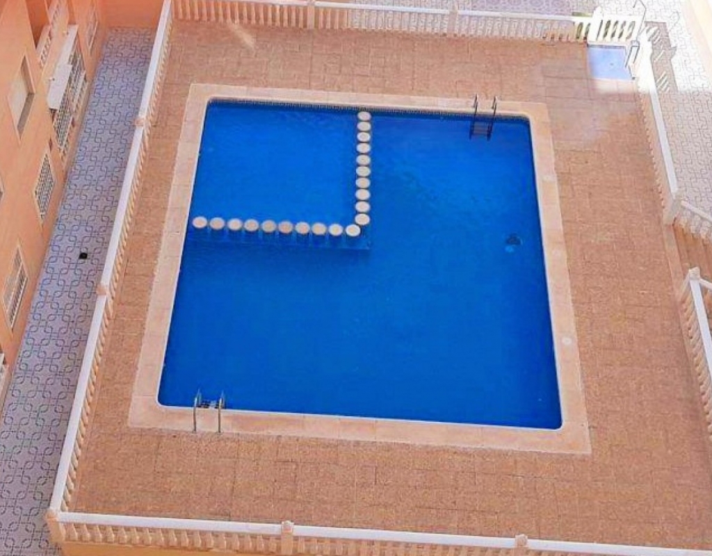 Discover this 5th-floor penthouse apartment in the heart of Torrevieja, ideally located just a short walk from shops, restaurants, and the vibrant promenade. This bright and airy property offers 2 bedrooms, 1 bathroom, and a spacious living area with air conditioning for year-round comfort. There is also a community rooftop. The standout feature is the large, partly glazed-in terrace—perfect for enjoying meals or relaxing while taking in the spectacular panoramic views of the city and the famous pink salt lake. Sold furnished and ready to move in, the apartment also benefits from access to a well-maintained communal pool—an ideal option for both permanent living and holidays. Don't miss this rare opportunity for a top-floor home with unbeatable views and central location!