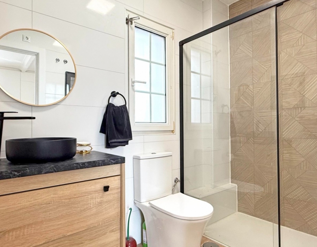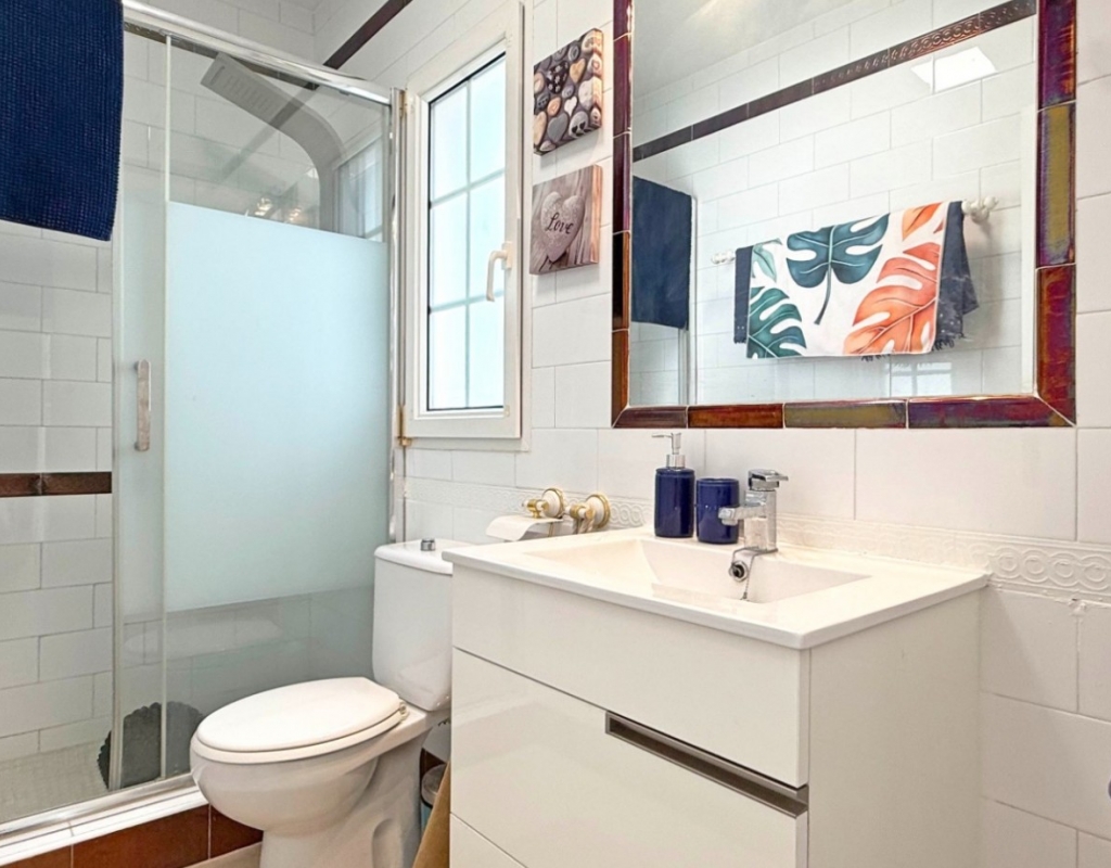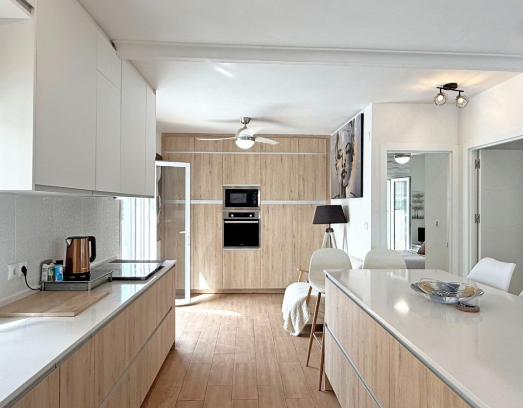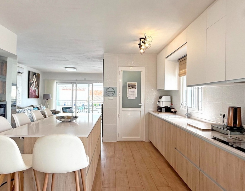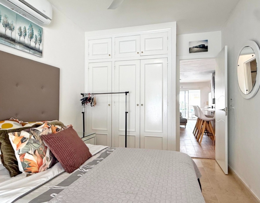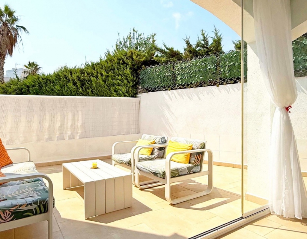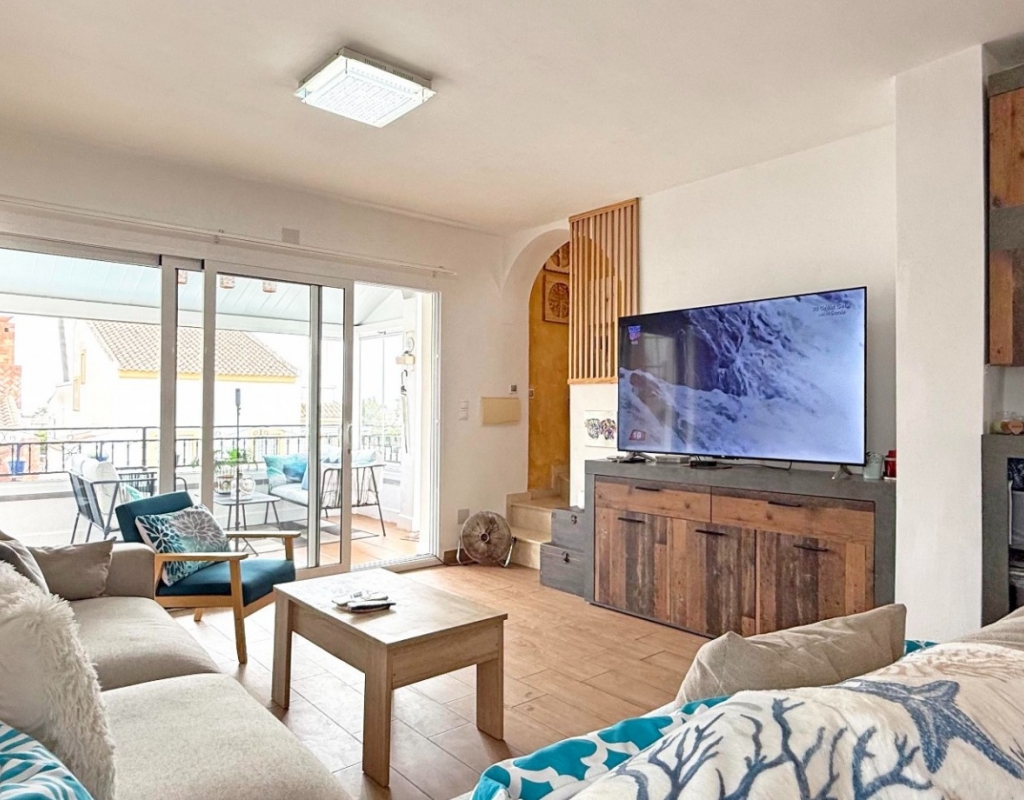 This beautifully maintained villa has been thoughtfully reformed into a 2/3-bedroom home, offering the perfect blend of comfort and style. The property features a private pool, three bathrooms (two of which are en-suite), a spacious kitchen-diner, and a large lounge with direct access to a balcony that overlooks the pool. The balcony can be enclosed with glass curtains, creating a versatile glazed space that the current owners use as a third bedroom when needed, making it ideal for year-round enjoyment. The guest bedroom opens onto a private patio, also fitted with glass curtains, while the master bedroom boasts a generous solarium with stunning sea views. Additional highlights include air conditioning throughout, optional central heating, two large storage rooms, and an excellent location in a quiet and private area of Villamartin. All this just a short walk from the famous Villamartin Plaza and the golf course.