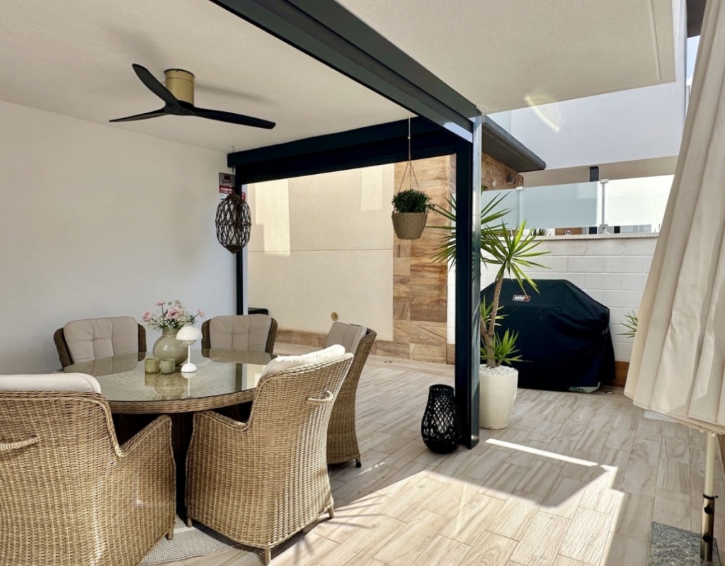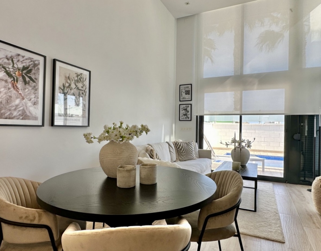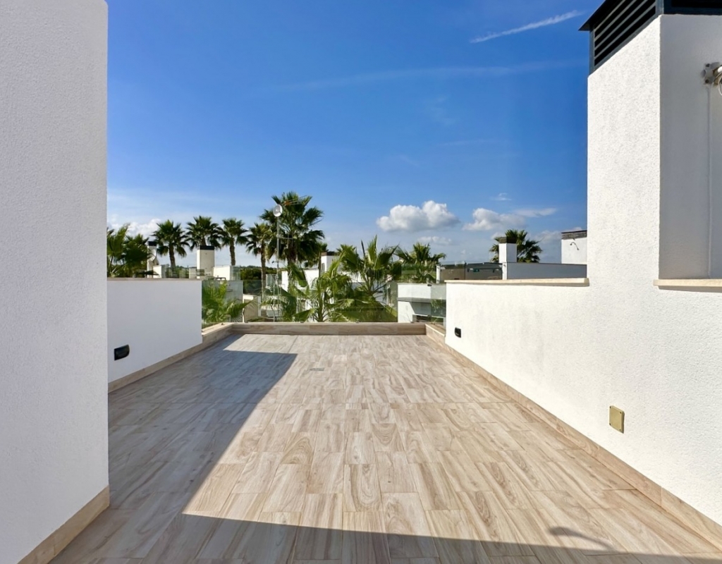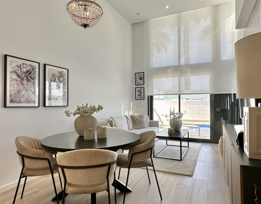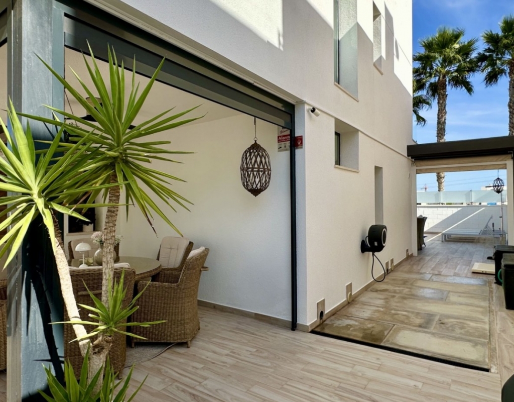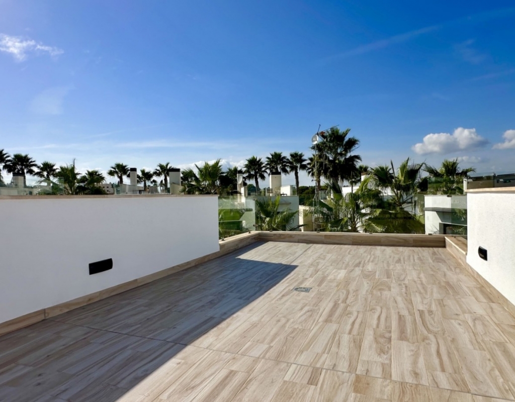 Welcome to your dream home in the heart of Lomas de Cabo Roig, one of Orihuela Costa’s most desirable residential areas. This stylish and well-maintained detached villa is ready to move into, offering a perfect blend of comfort, modern living, and Mediterranean charm. Whether you're looking for a permanent residence, a luxury holiday escape, or a high-return investment, this property delivers on all fronts. Why This Villa Stands Out: Spacious and Bright Interiors The villa spans two levels with 128 m² of living space. It features an open-plan living and dining area, a fully equipped contemporary kitchen, and three large bedrooms, including two with en-suite bathrooms. All bedrooms come with built-in wardrobes and ample natural light. Exceptional Outdoor Living Set on a 189 m² private plot, the home offers a private swimming pool, a large rooftop solarium with open views, and a fully tiled terrace with BBQ, lounge furniture, and dining area — perfect for sunbathing, entertaining guests, or relaxing with family. Optimised Orientation South-east facing front patio and south-west facing terrace and pool area provide all-day sunlight. The property also includes air conditioning and individual heating in every room, ensuring comfort throughout the year. Prime Location Located in a quiet and well-established urbanisation, you are just a short drive from the beaches of Orihuela Costa. Daily conveniences including supermarkets, restaurants, shopping centres, golf courses, and schools are all nearby. Property Summary: 3 bedrooms, 3 bathrooms 128 m² built, 189 m² plot Private pool, rooftop solarium, tiled terrace with BBQ Built in 2018, excellent condition Air conditioning and heating throughout Quiet setting, close to all amenities This villa offers the ideal combination of style, comfort, and location. Whether you want to live here year-round, enjoy it as a holiday home, or rent it as an investment, it’s a smart choice on the Costa Blanca. Book your private viewing today — this opportunity won’t last long.