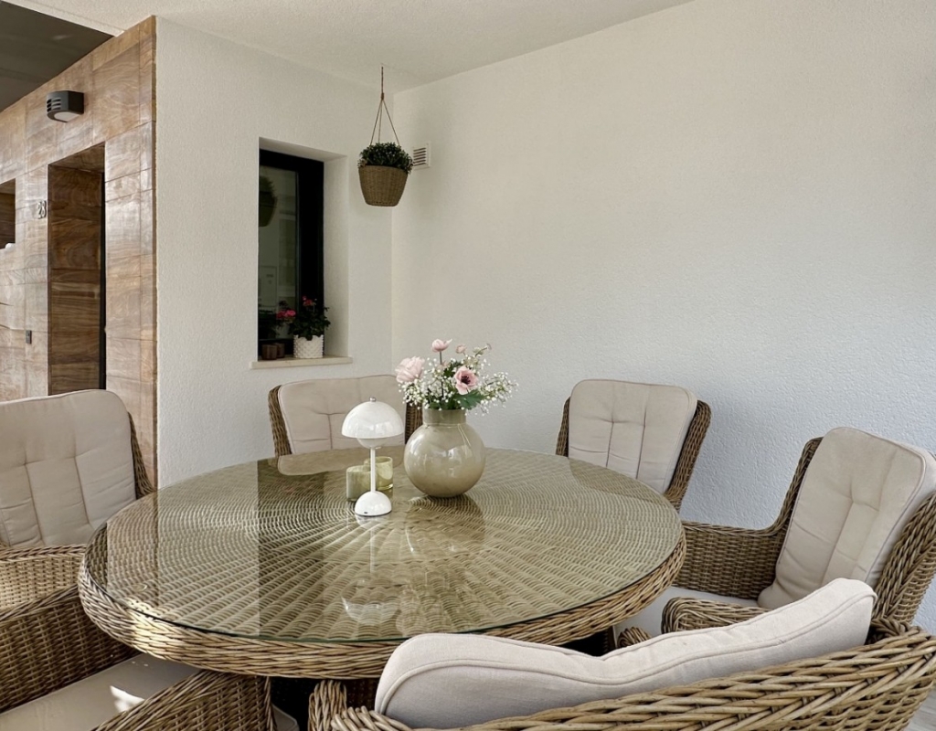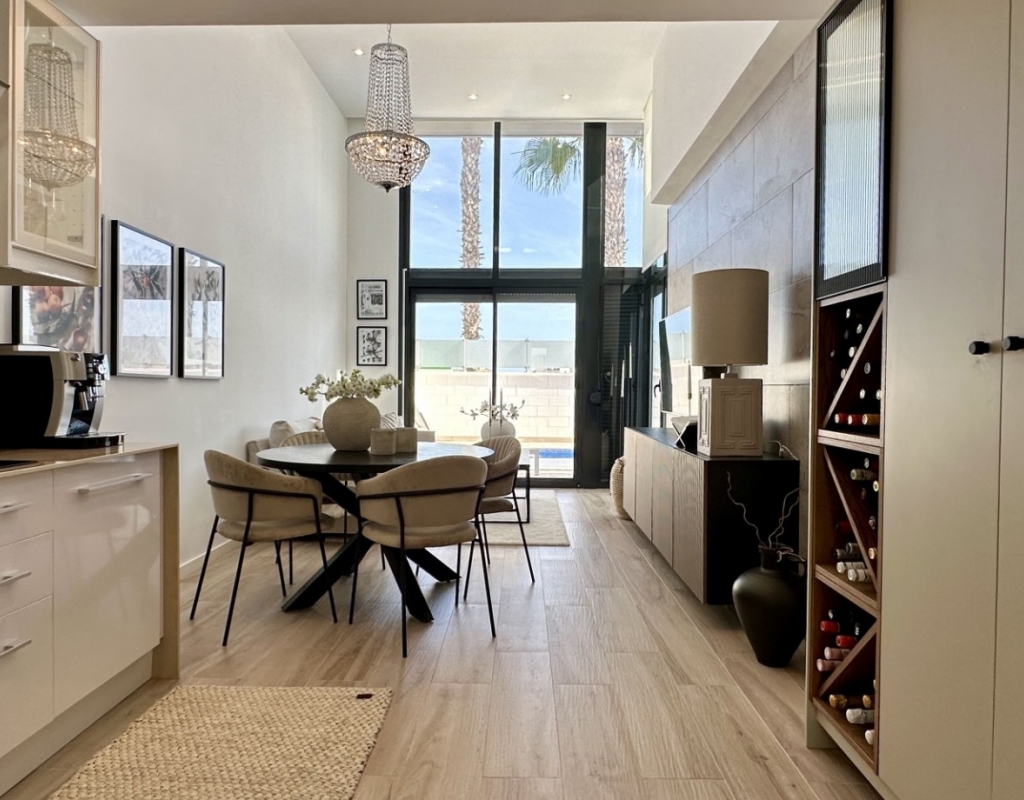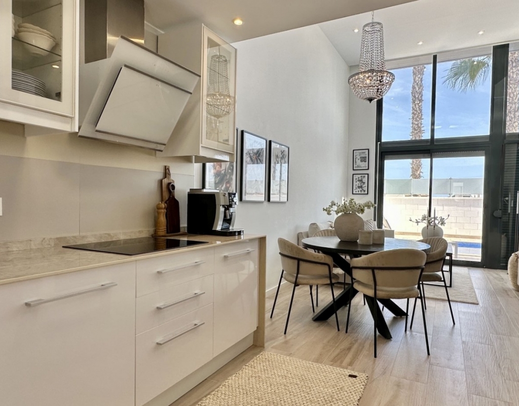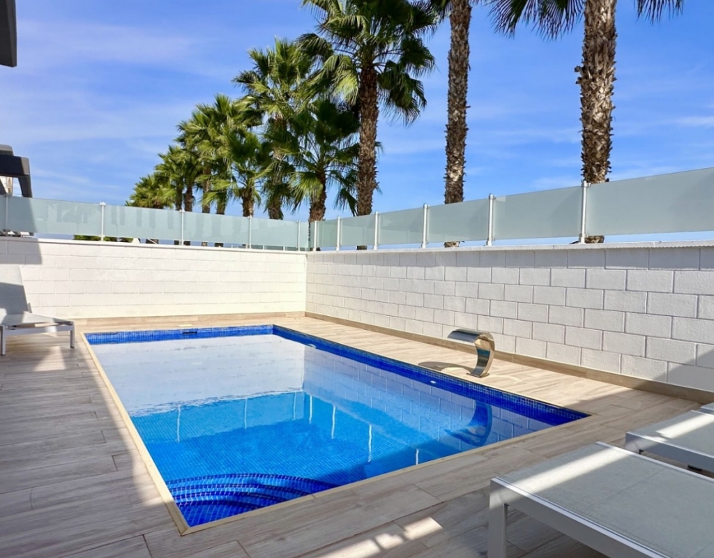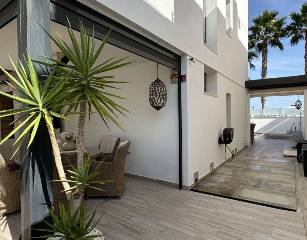 Welcome to your dream home in the heart of Lomas de Cabo Roig, one of Orihuela Costa’s most desirable residential areas. This stylish and well-maintained detached villa is ready to move into, offering a perfect blend of comfort, modern living, and Mediterranean charm. Whether you're looking for a permanent residence, a luxury holiday escape, or a high-return investment, this property delivers on all fronts. Why This Villa Stands Out: Spacious and Bright Interiors The villa spans two levels with 128 m² of living space. It features an open-plan living and dining area, a fully equipped contemporary kitchen, and three large bedrooms, including two with en-suite bathrooms. All bedrooms come with built-in wardrobes and ample natural light. Exceptional Outdoor Living Set on a 189 m² private plot, the home offers a private swimming pool, a large rooftop solarium with open views, and a fully tiled terrace with BBQ, lounge furniture, and dining area — perfect for sunbathing, entertaining guests, or relaxing with family. Optimised Orientation South-east facing front patio and south-west facing terrace and pool area provide all-day sunlight. The property also includes air conditioning and individual heating in every room, ensuring comfort throughout the year. Prime Location Located in a quiet and well-established urbanisation, you are just a short drive from the beaches of Orihuela Costa. Daily conveniences including supermarkets, restaurants, shopping centres, golf courses, and schools are all nearby. Property Summary: 3 bedrooms, 3 bathrooms 128 m² built, 189 m² plot Private pool, rooftop solarium, tiled terrace with BBQ Built in 2018, excellent condition Air conditioning and heating throughout Quiet setting, close to all amenities This villa offers the ideal combination of style, comfort, and location. Whether you want to live here year-round, enjoy it as a holiday home, or rent it as an investment, it’s a smart choice on the Costa Blanca. Book your private viewing today — this opportunity won’t last long.