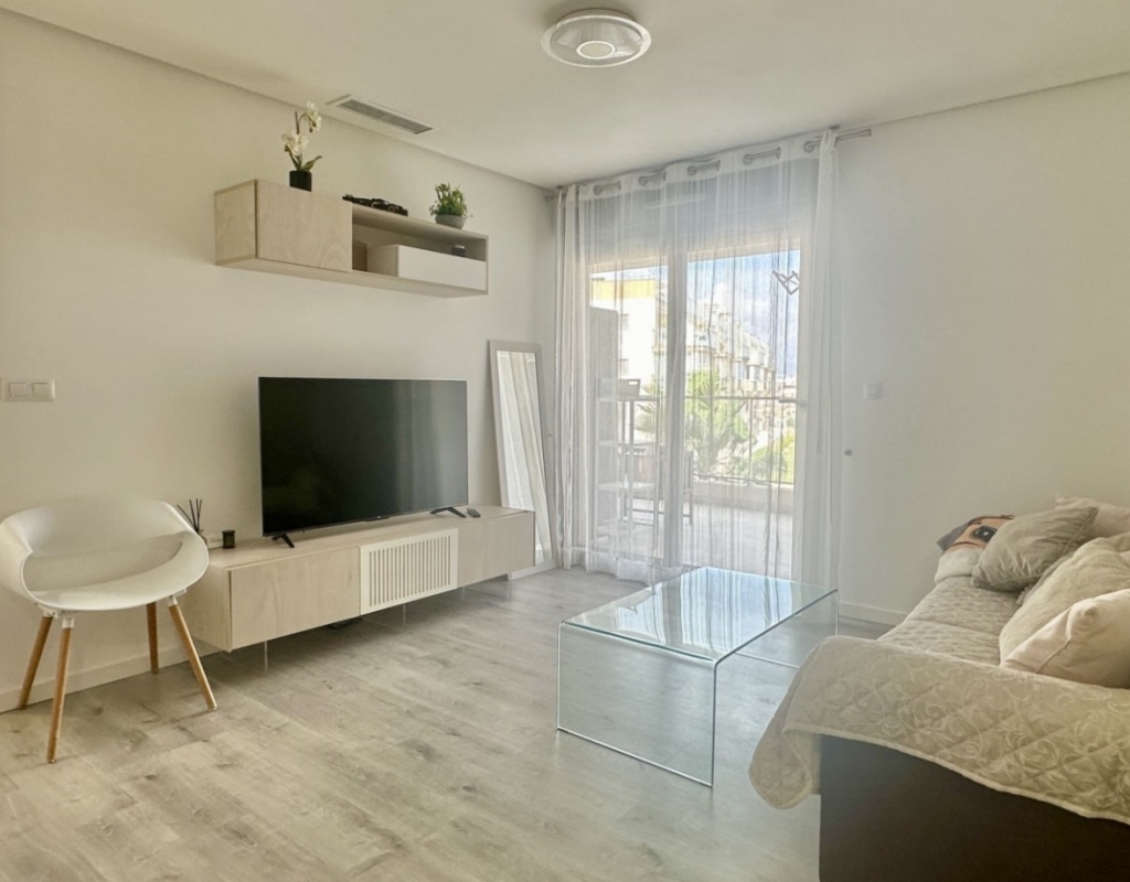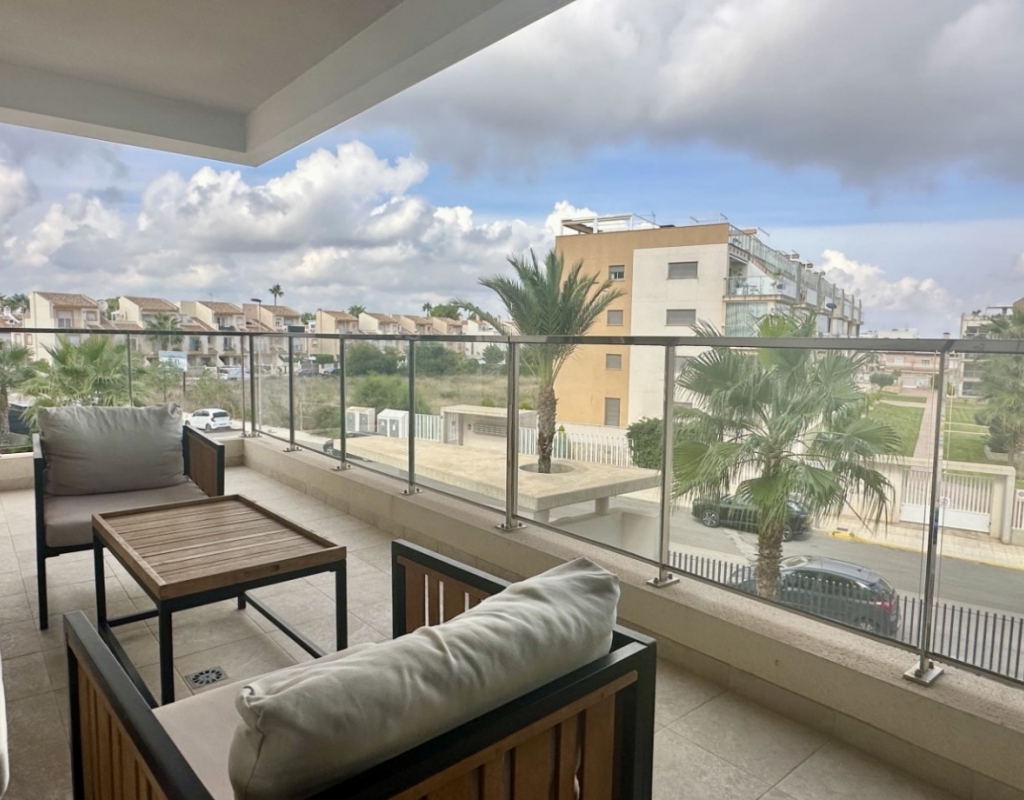 Discover this elegant and fully furnished apartment located in the sought-after Green Hills residential complex in Villamartín, Orihuela Costa.Situated on the second floor of block 5, this home offers a perfect blend of comfort, style, and modern Mediterranean living. The apartment features three spacious bedrooms and two contemporary bathrooms, including one en-suite. The interior is beautifully designed with a high-quality finish and modern furniture, all included in the price — ready to move in and enjoy. A large sunny terrace offers lovely open views, ideal for relaxing or dining outdoors. The Green Hills complex is one of the most complete in the area, offering three swimming pools (two outdoor and one heated indoor), a sauna, and a gym. Solar panels have been installed for the entire community, helping reduce energy costs. Located close to Villamartín Plaza, La Zenia Boulevard, and several golf courses, this property is perfect for year-round living or as a luxury holiday home on the Costa Blanca.