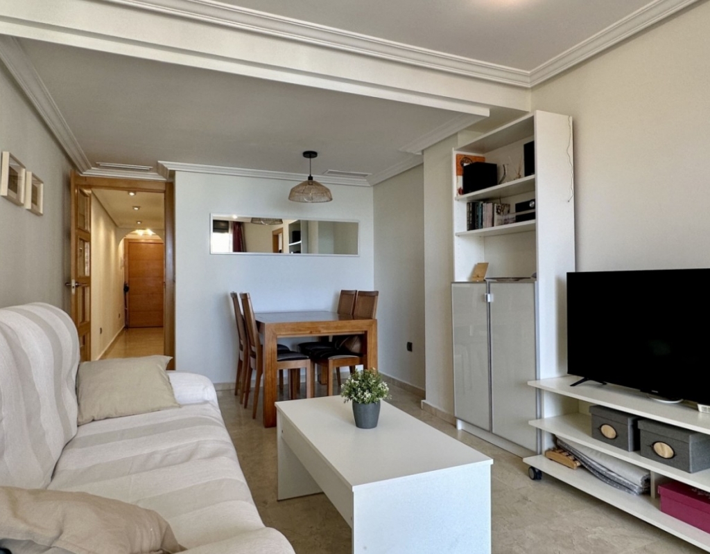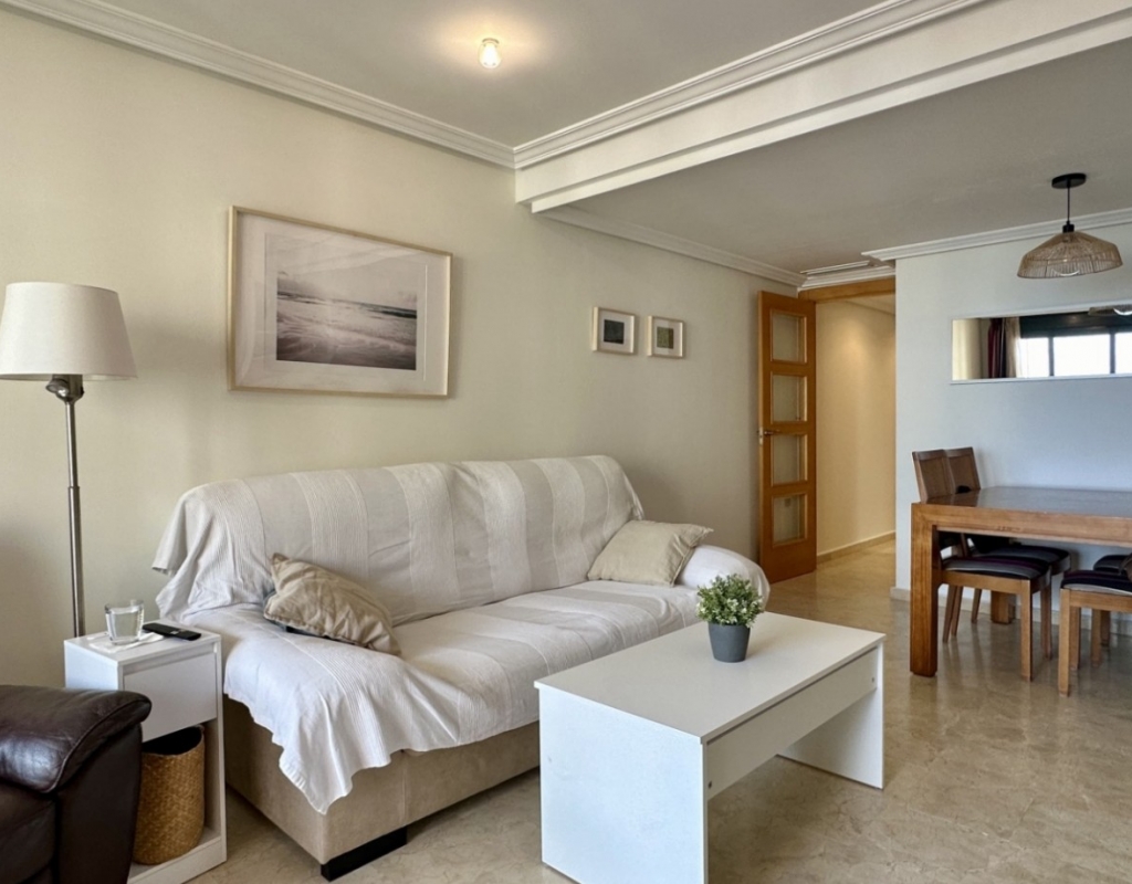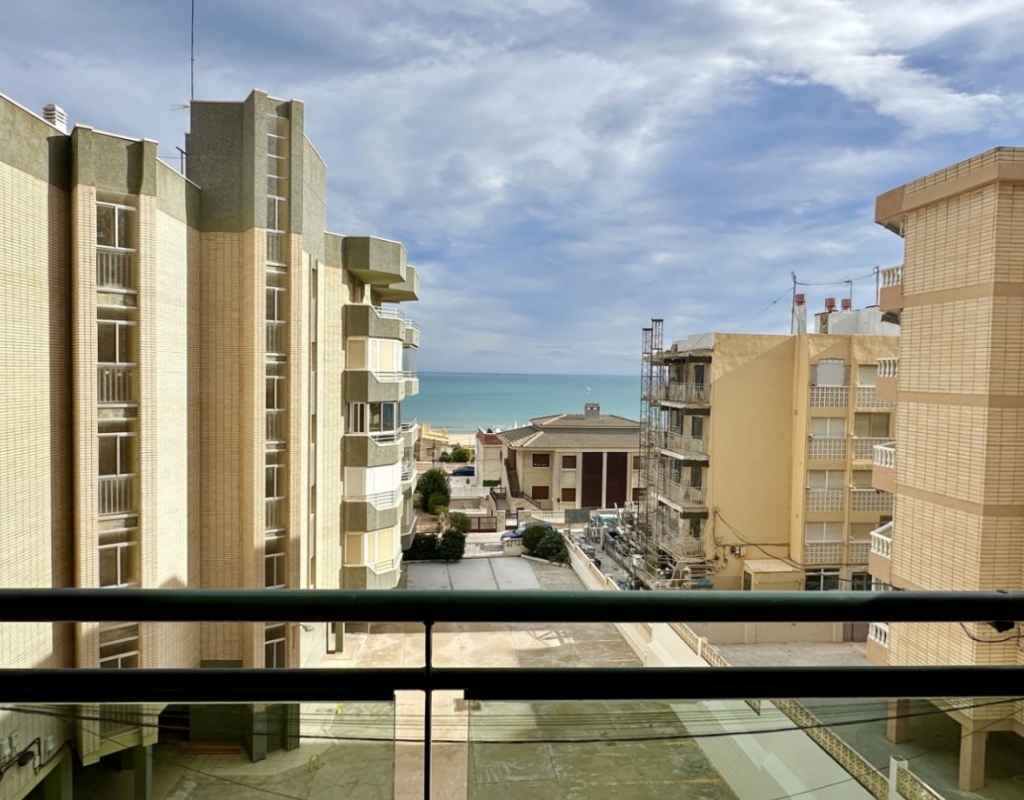 Discover a bright and comfortable apartment located just 100 metres from the sea in one of Guardamar’s most sought-after coastal areas. Positioned on the second floor with lift access, this east-facing home offers beautiful sea views from both the living room and the master bedroom.